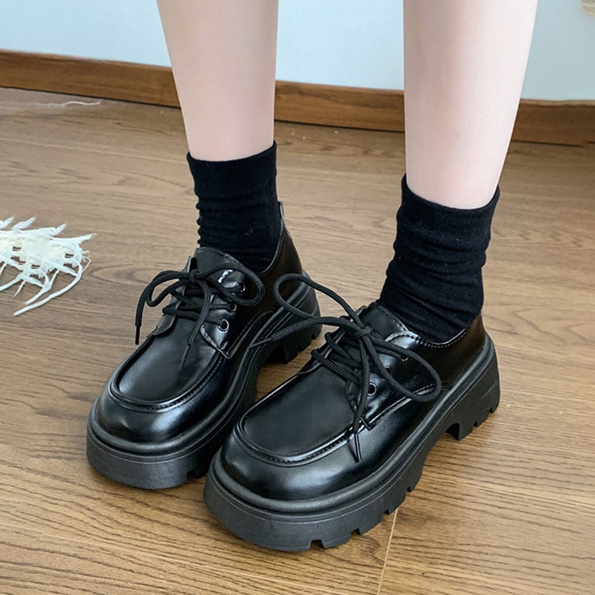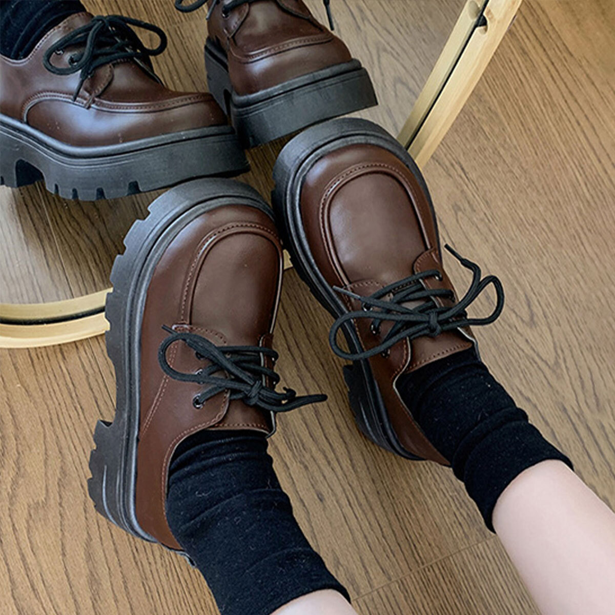 厚底 ローファー ドレスシューズ レディース 韓国 通勤 通学 学生 大人 シンプル きれいめ カジュアル PUレザー ローヒール 歩きやすい 疲れにくい メイド コスプレ 大人可愛い 大人女子