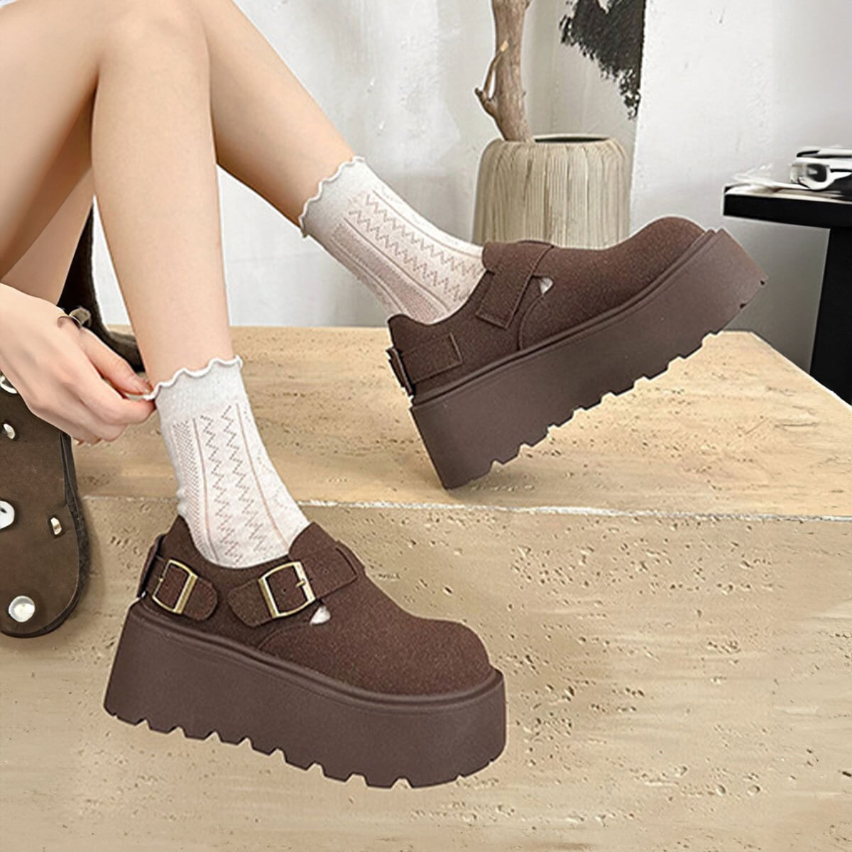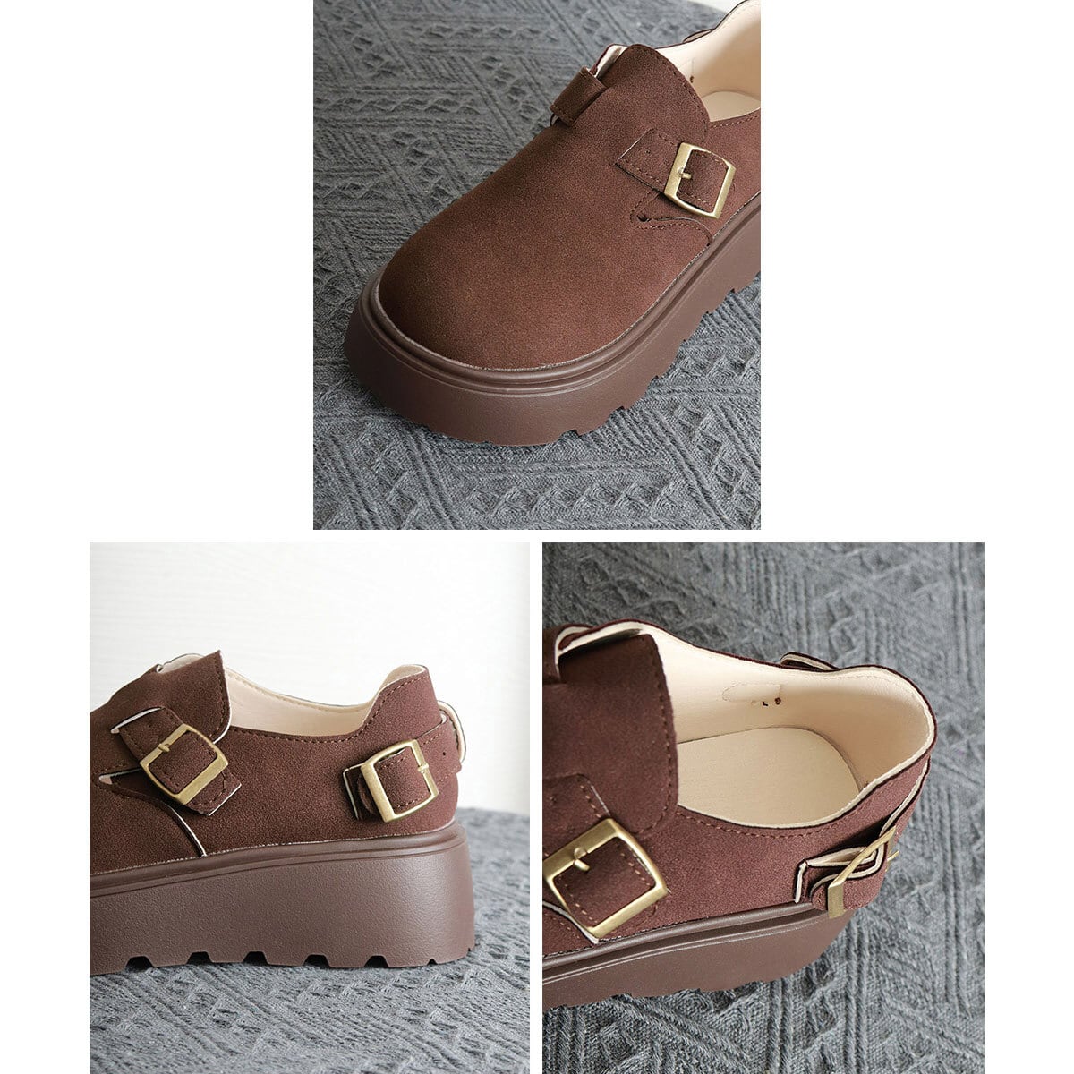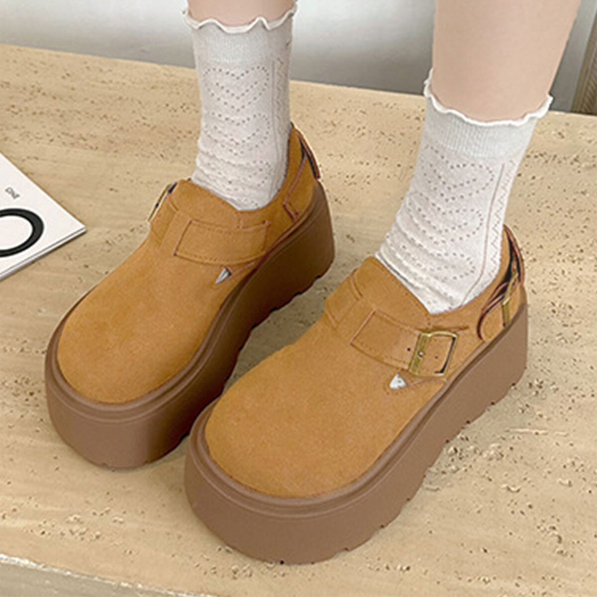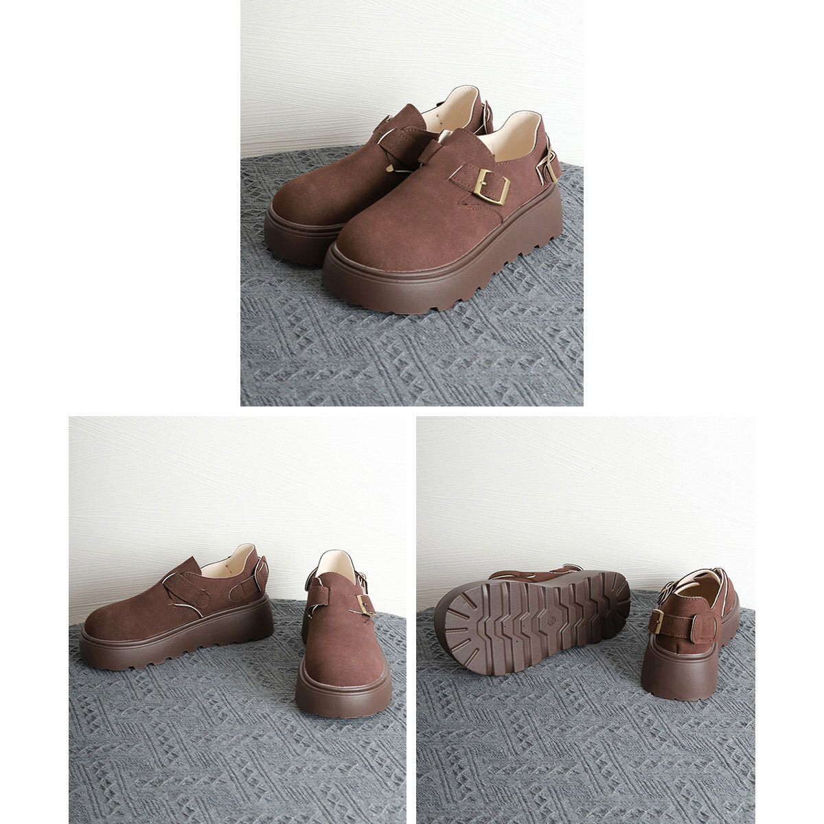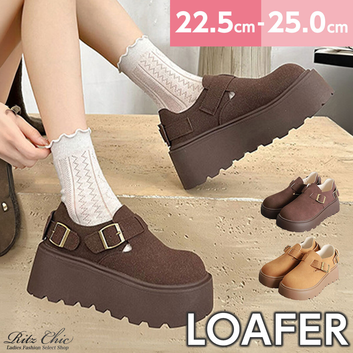 スエード調 厚底 ローファー レディース 韓国 通勤 通学 大人 学生 カジュアル シンプル きれいめ ベルト付き コンフォート シューズ レトロ 歩きやすい 疲れにくい 大人可愛い 大人女子