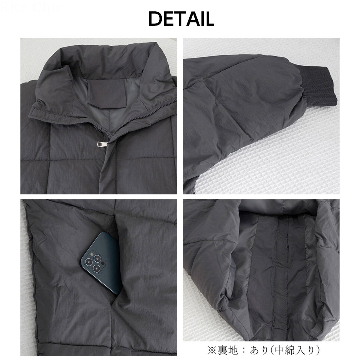 スタンドカラーで首元までしっかりと暖かく、首周りもスッキリと見せてくれる大人女子にオススメの中綿アウターです。