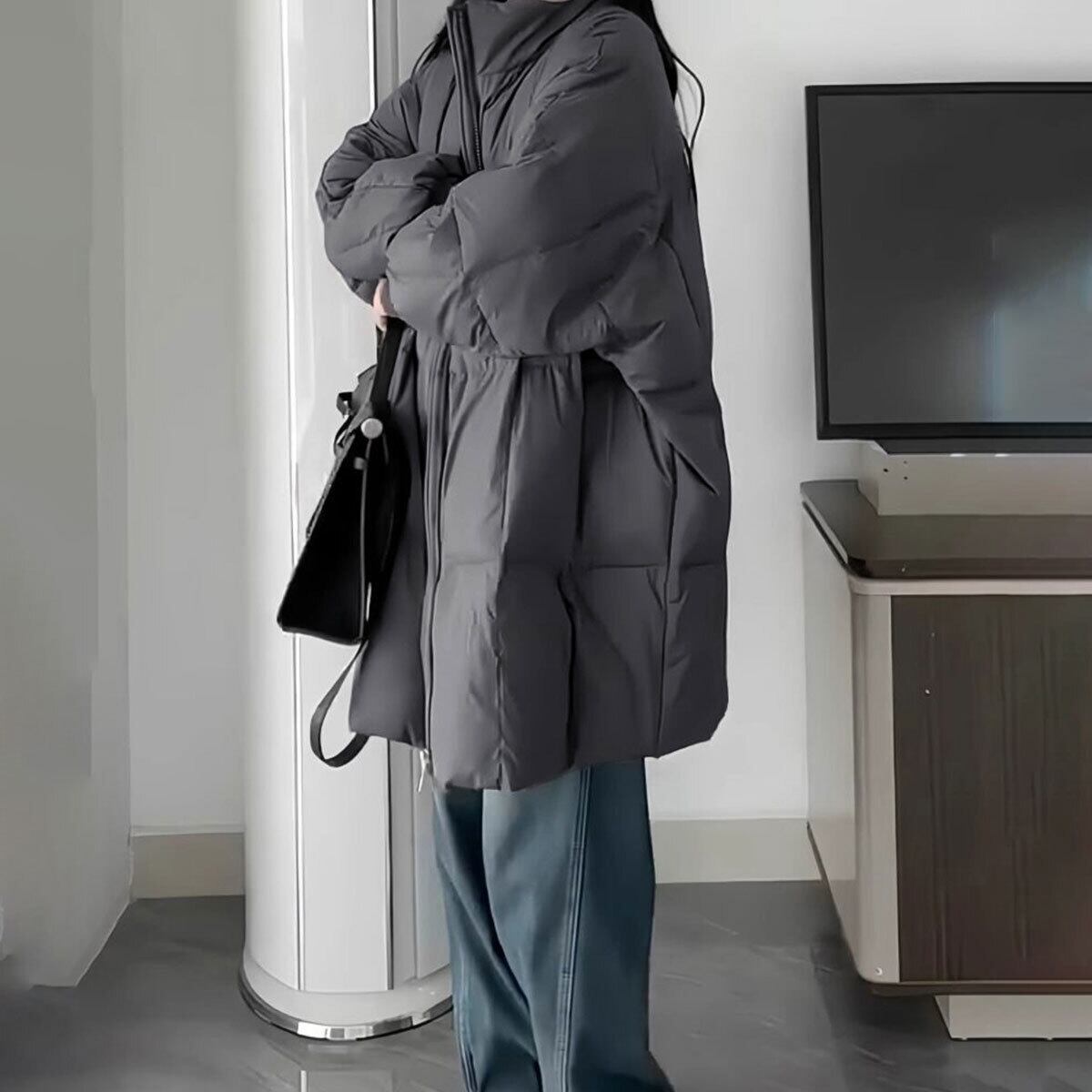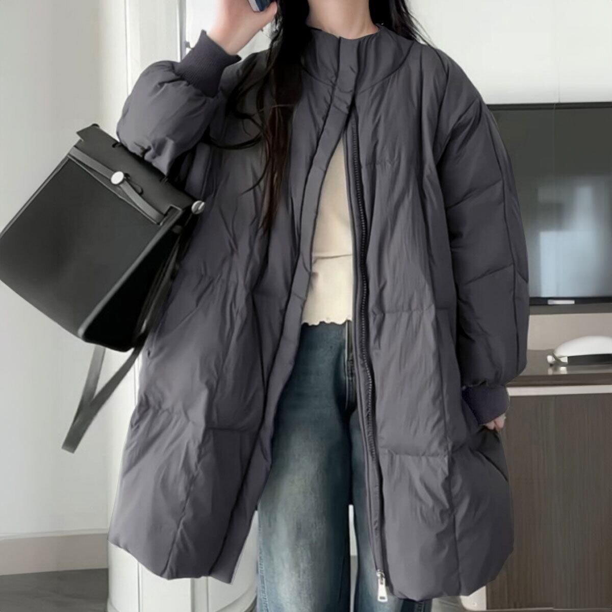 程よく詰まった暖かい中綿仕様で防寒性と保温性に優れ、寒い日も動きやすく、暖かく快適に着用いただけるミドル丈のダウンジャケットです。