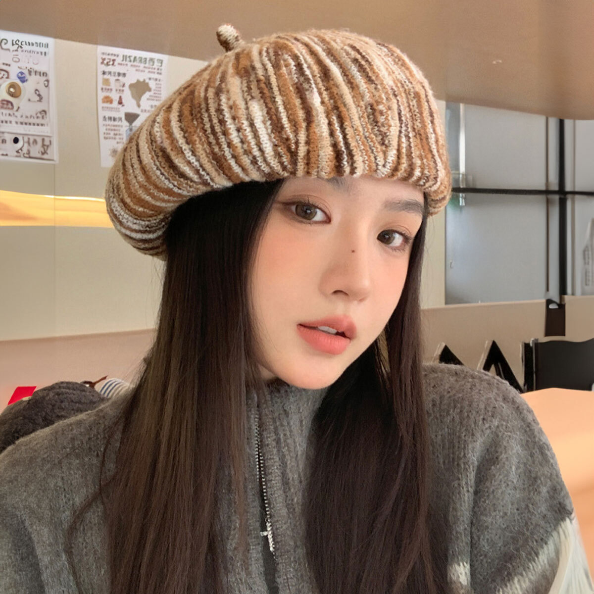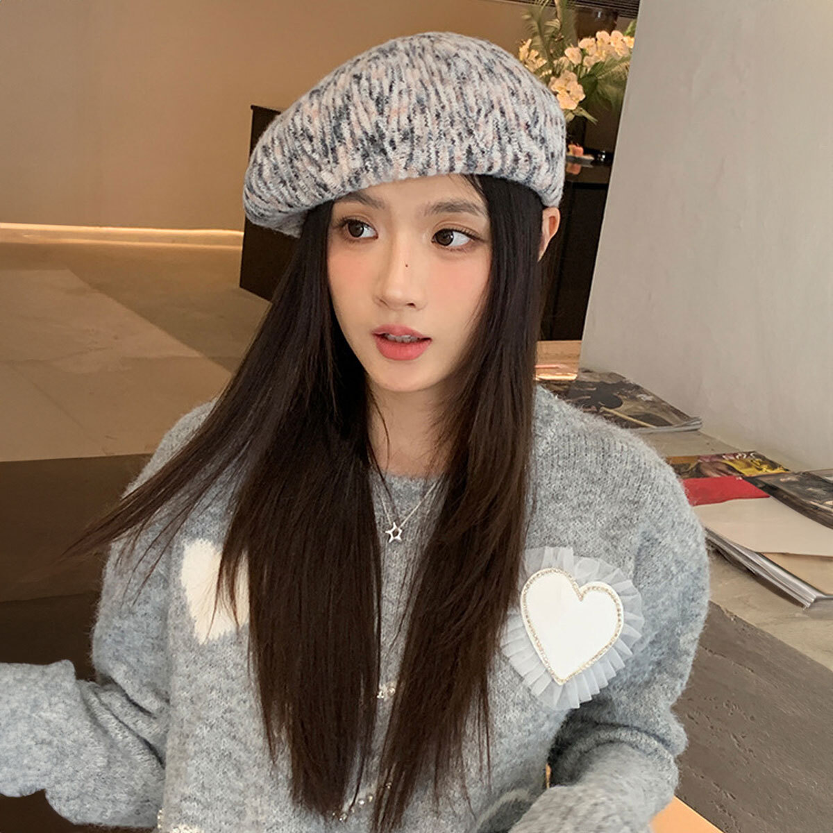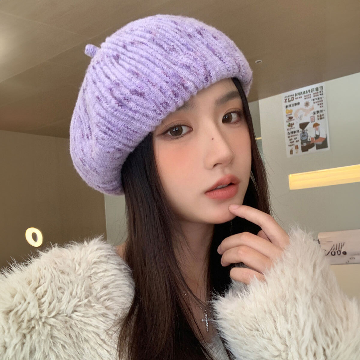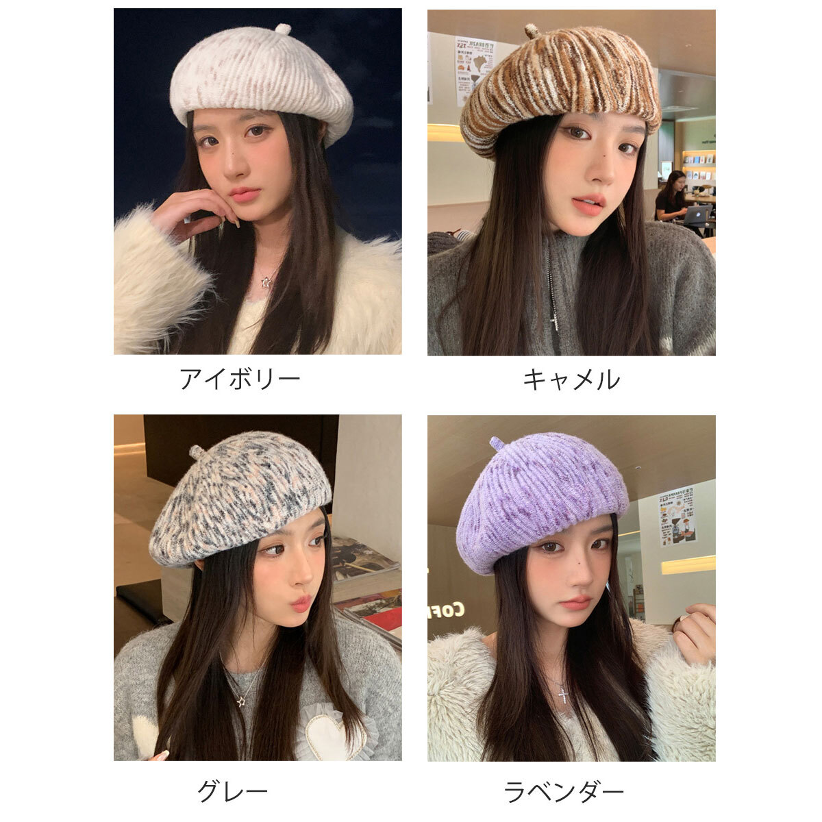 ◇立体感のあるリブ編みデザインのニットベレー帽。