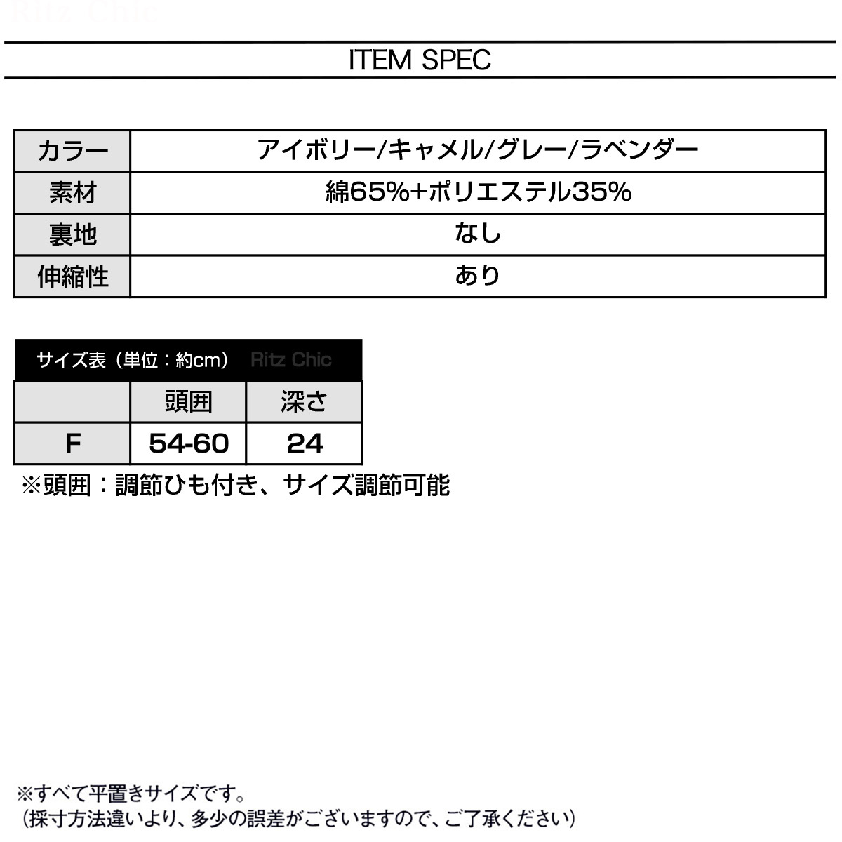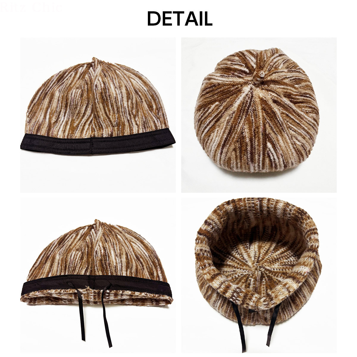 頭囲は調節紐が付いているのでサイズの調整が可能になっていて、ご自分のサイズ感やコーディネートに合わせた被り方で、お洒落を楽しんでいただけます。