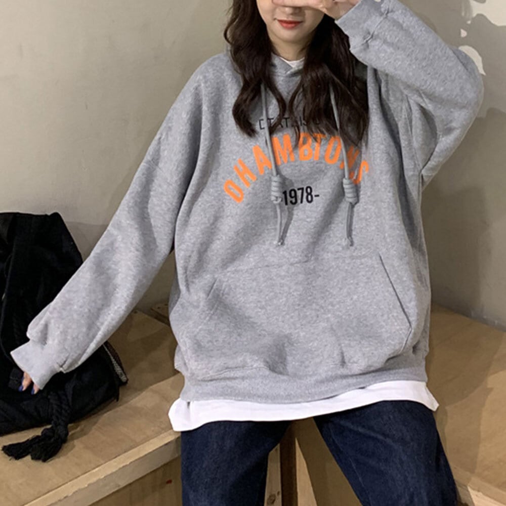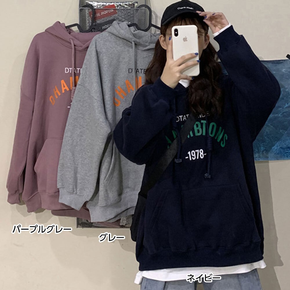 【送料無料】 スウェット ロゴ トレーナー 春秋冬 レディース 韓国 大人 カジュアル ストリート 原宿系 ゆったり フード付き トップス 長袖 ロゴトレーナー ポケット 大人可愛い 大人女子