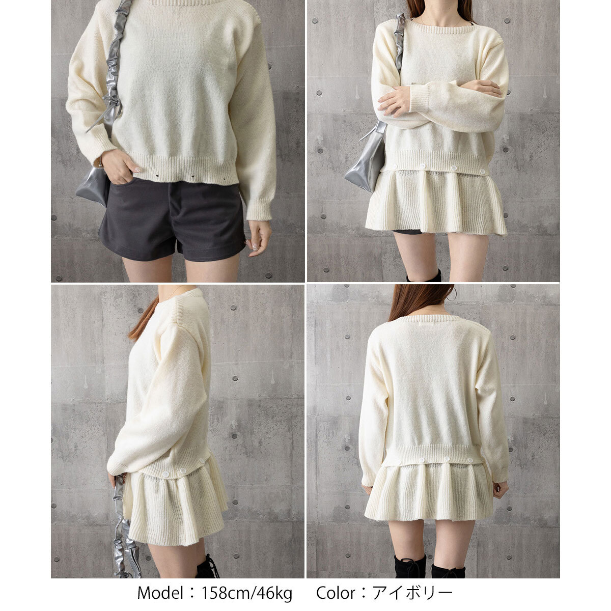 ペプラム ニット 長袖 レディース 春秋冬 韓国 重ね着風 レイヤード きれいめ 大人 かわいい おしゃれ 取り外し可能 ニットセーター トップス 大人可愛い 大人女子