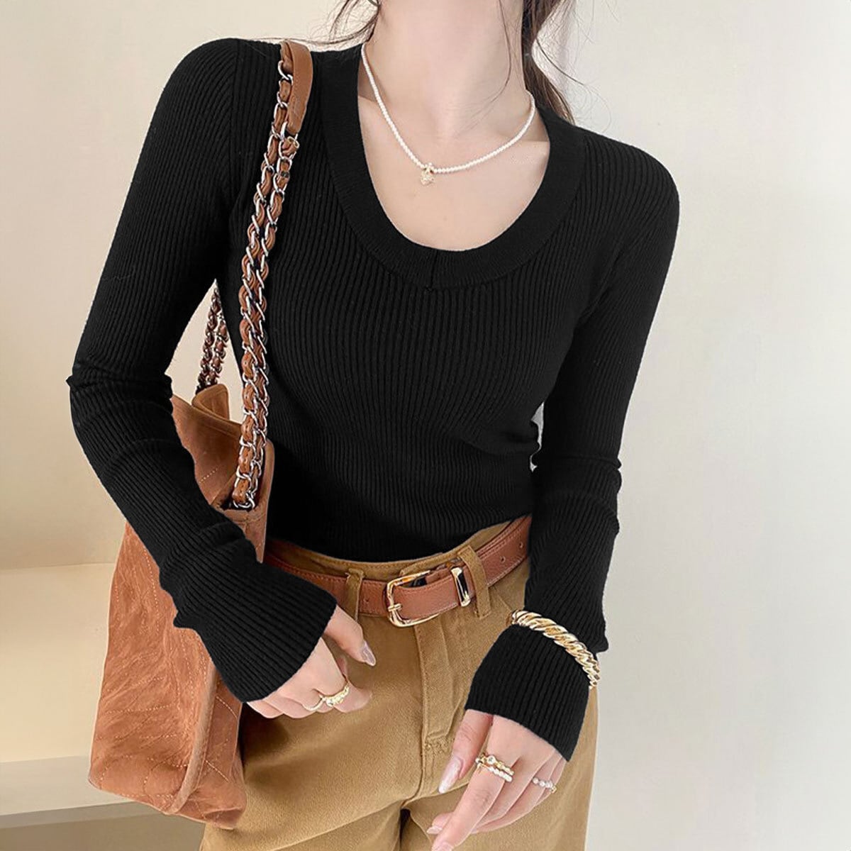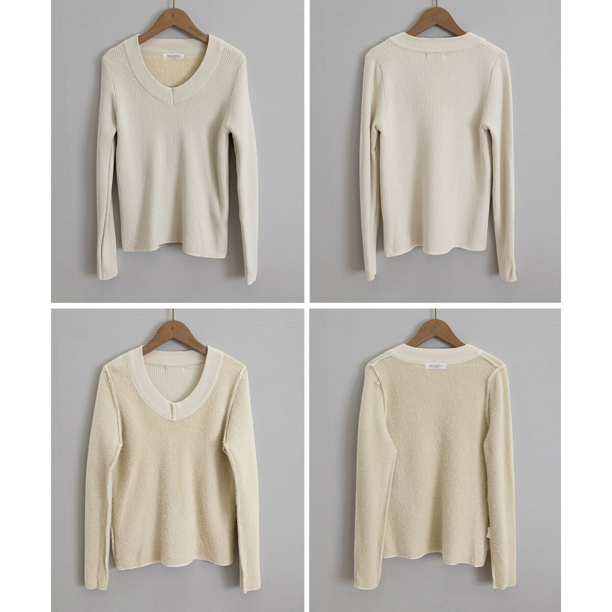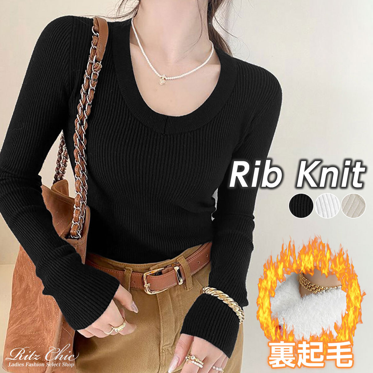 柔らかなリブ編みのニットに裏起毛を施して暖かく、秋冬のシーズンにぴったりな防寒性と保温性を兼ね備えた長袖ニットトップスです。