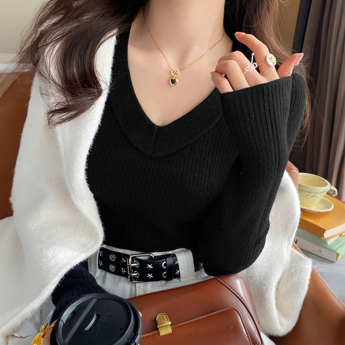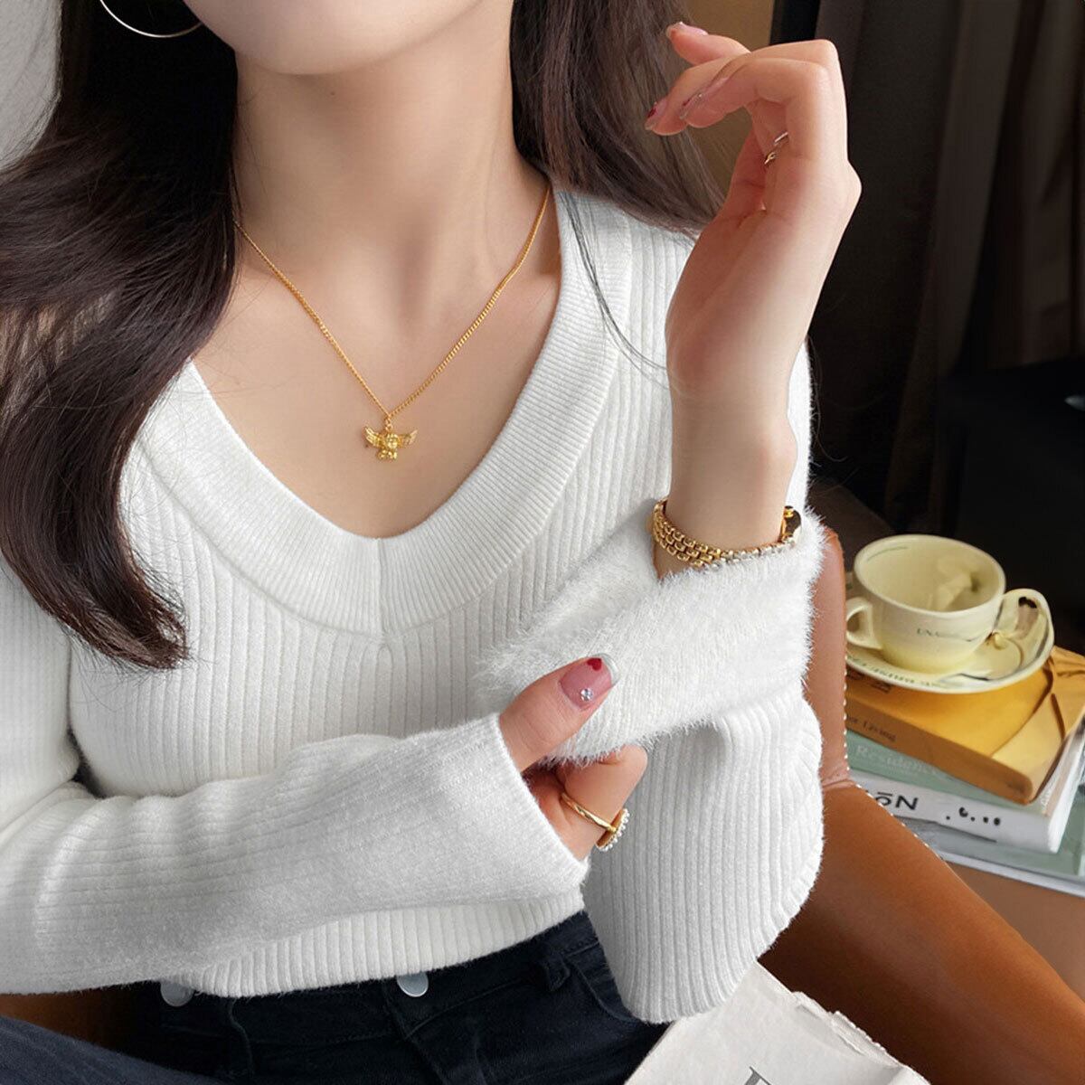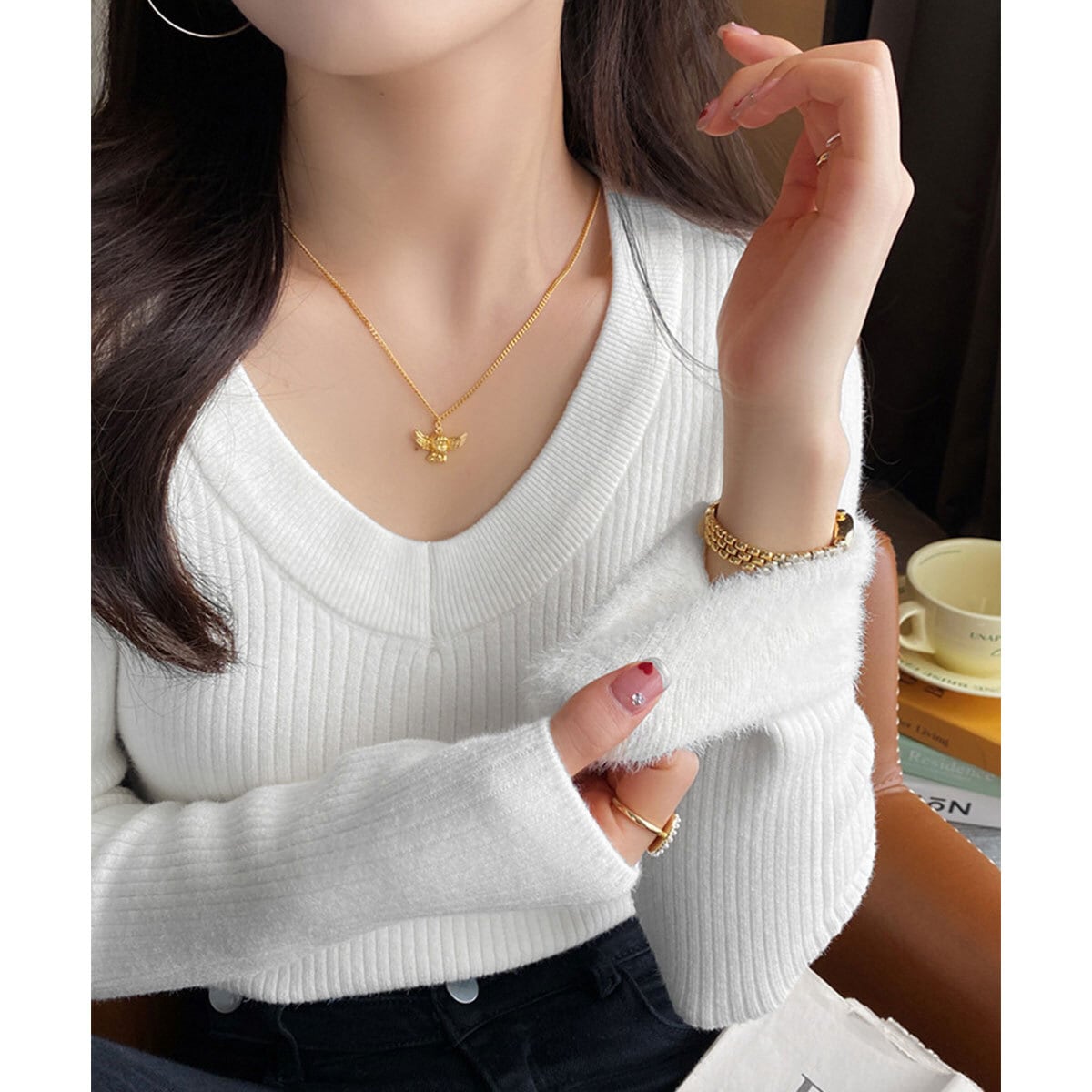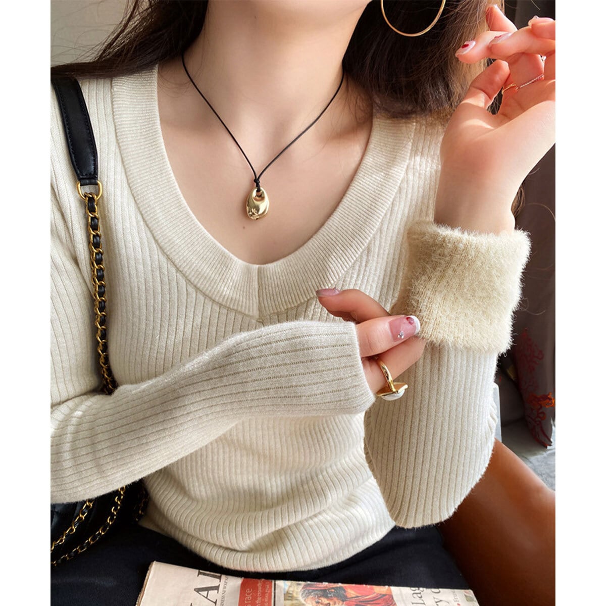 リブニット 裏起毛 Vネック レディース 秋冬 韓国 ニット セーター きれいめ 大人 カジュアル シンプル 長袖 トップス 防寒 保温 暖かい 厚手 大人可愛い 大人女子