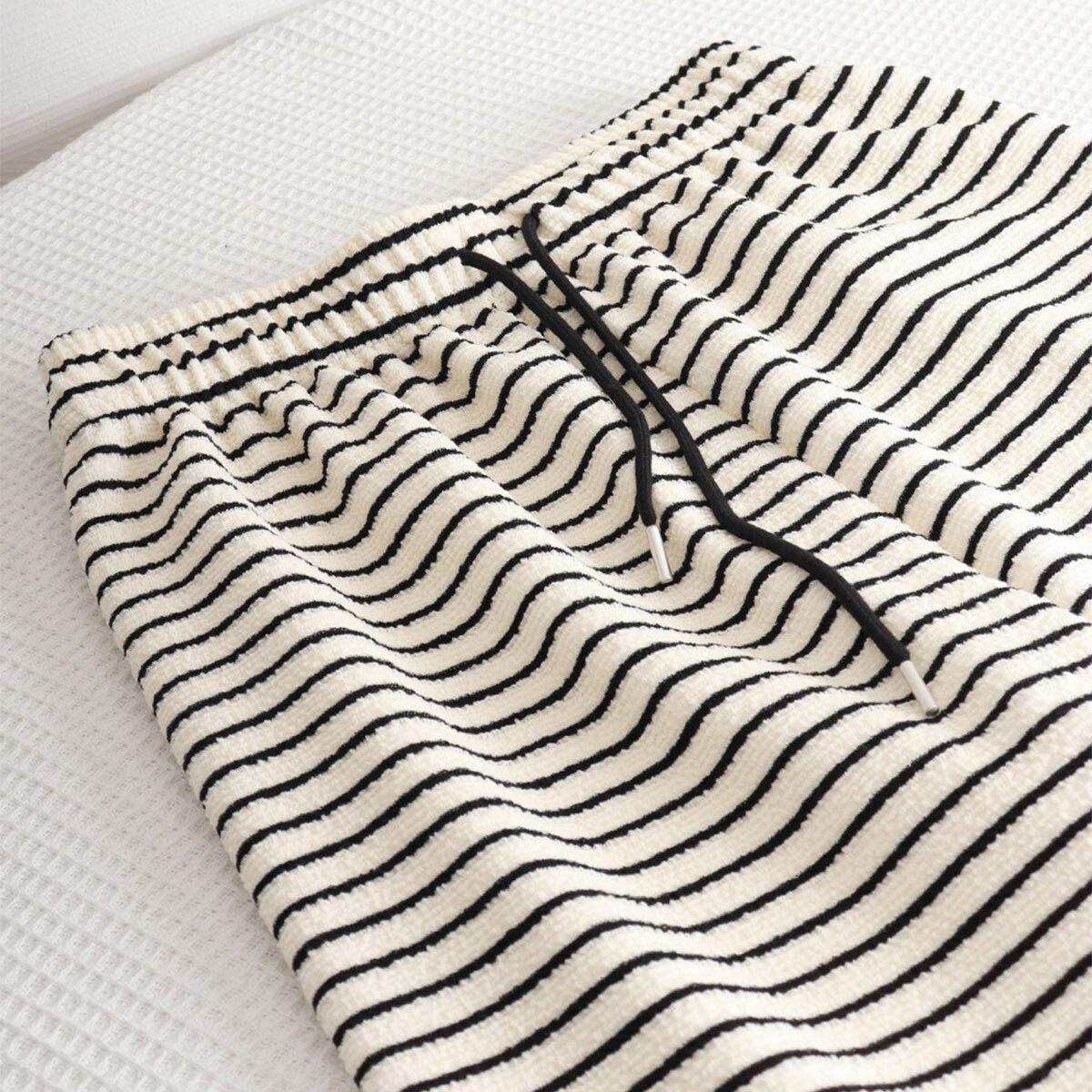 軽やかな素材感は穿き心地抜群で、ウエストはゴム仕様になっているので着脱も簡単です。