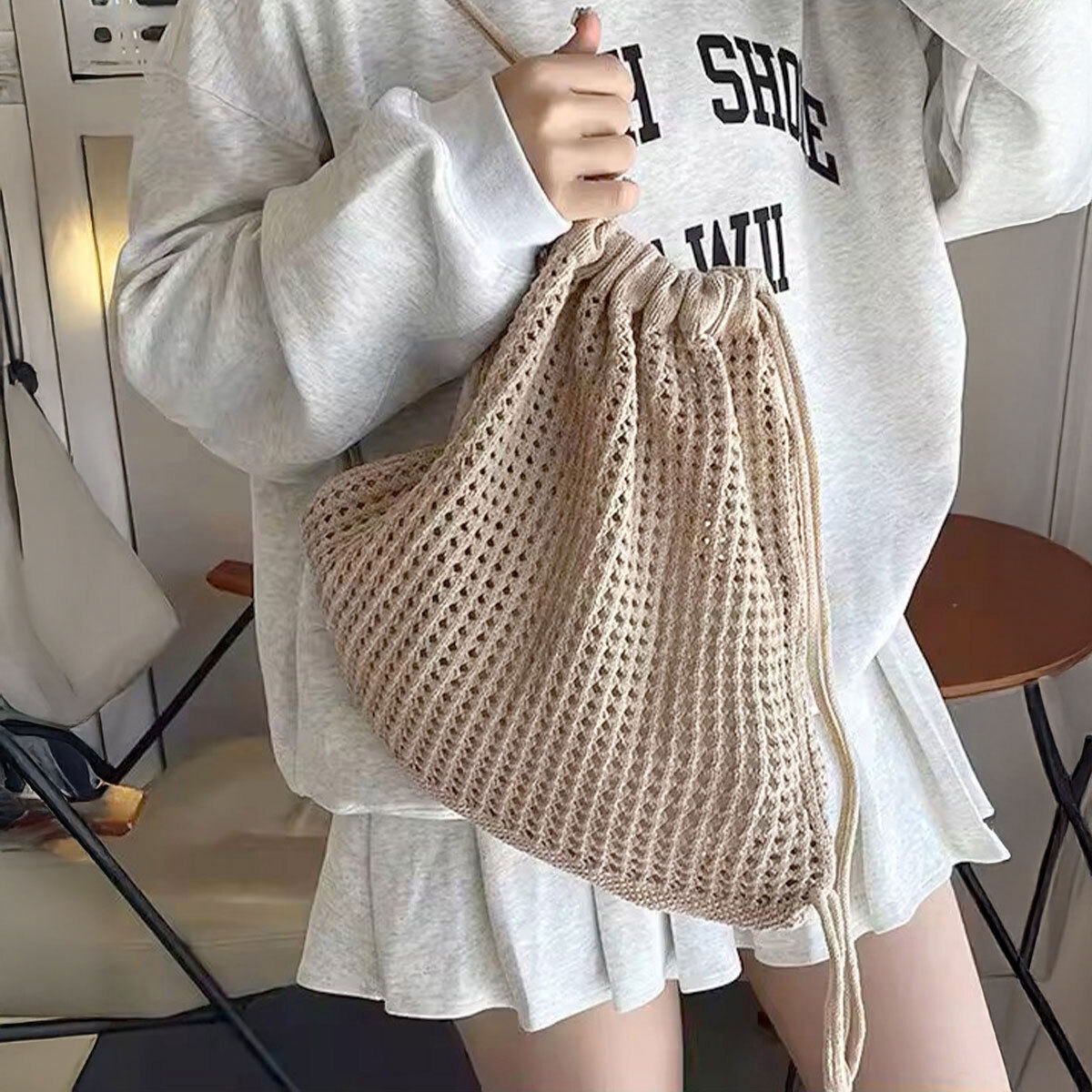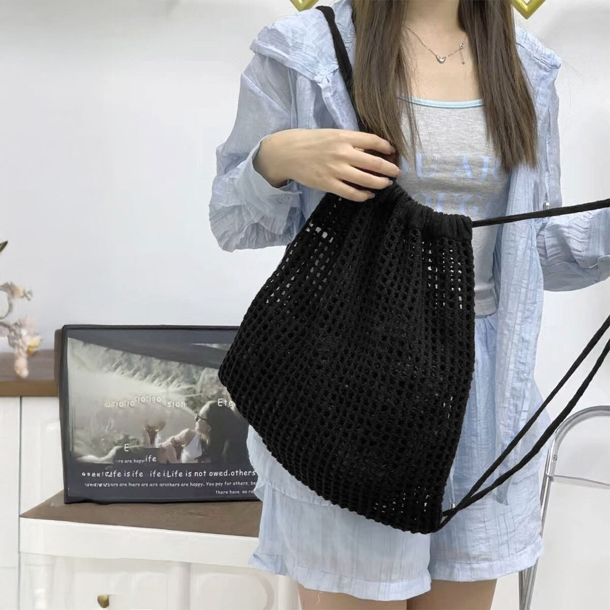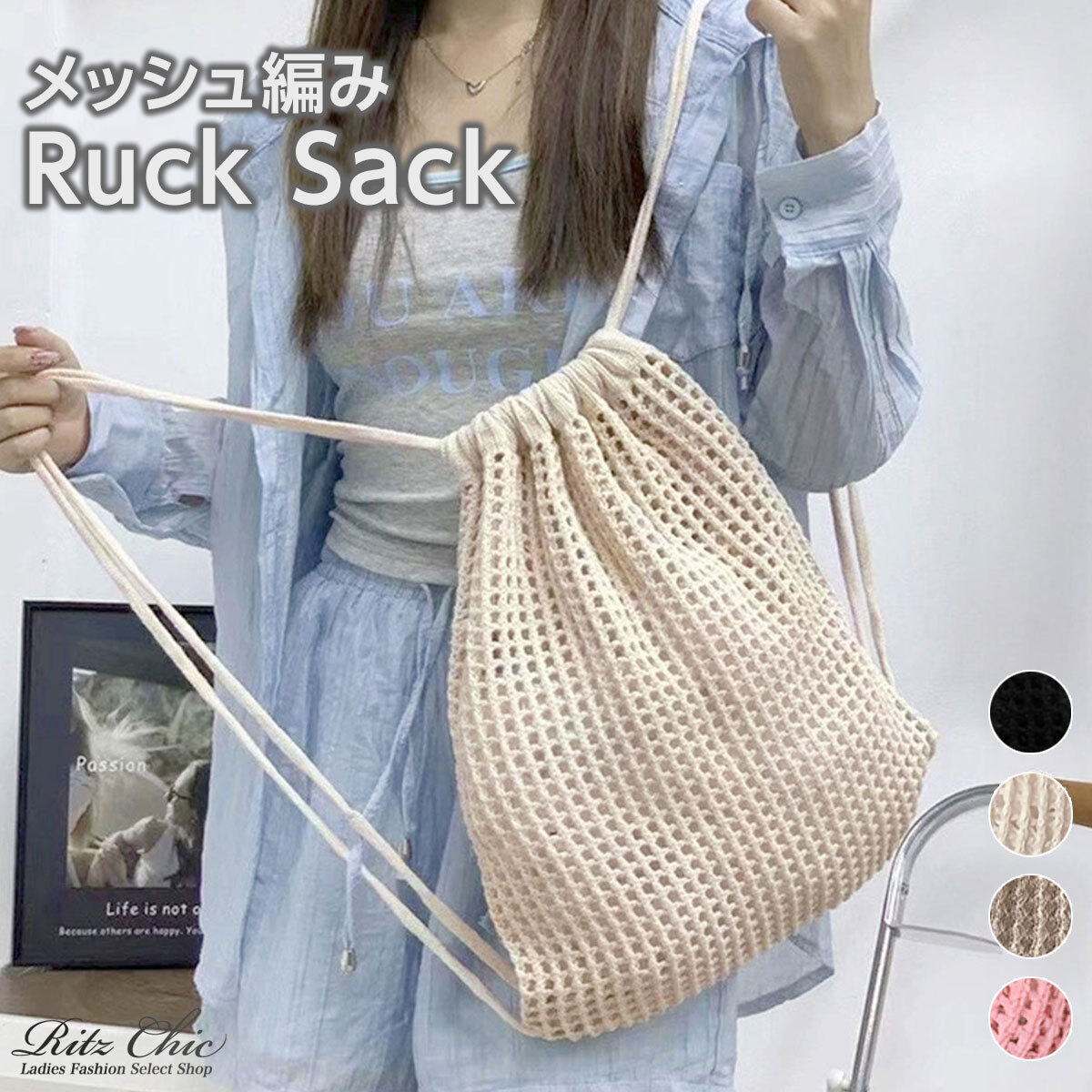 メッシュ ニット リュックサック レディース 韓国 春夏秋 ナップサック おしゃれ 大人 かわいい きれいめ ナチュラル 学生 通気性 軽量 大容量 編みメッシュ 透け感 大人可愛い 大人女子
