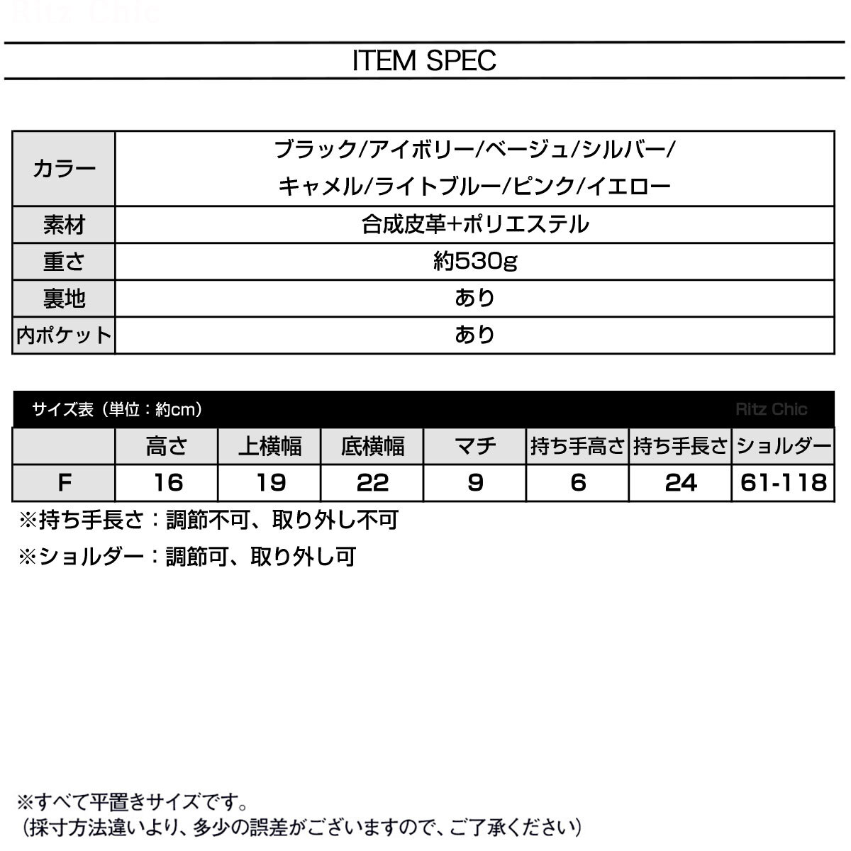 ※ショルダー:調節可、取り外し可