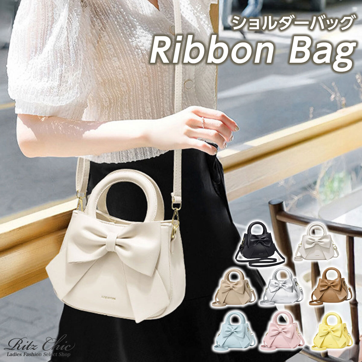 大きなリボンが目を引く、フェミニンな印象のショルダーバッグです。