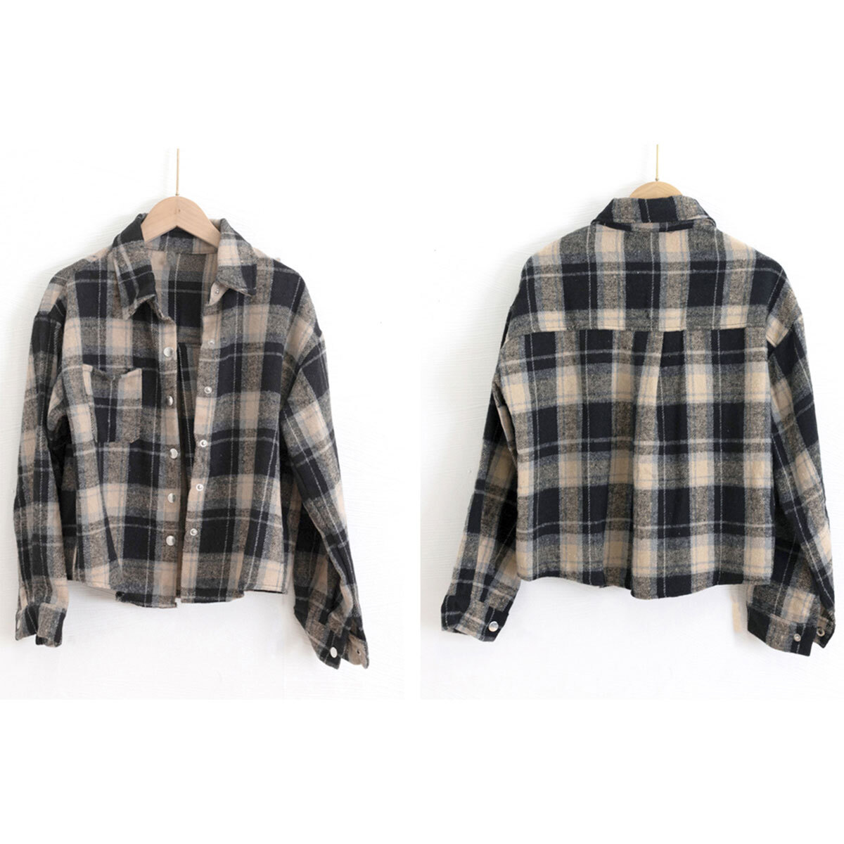 ショート丈のデザインが春秋らしい軽やかな着こなしを叶えてくれる、チェック柄の長袖シャツです。