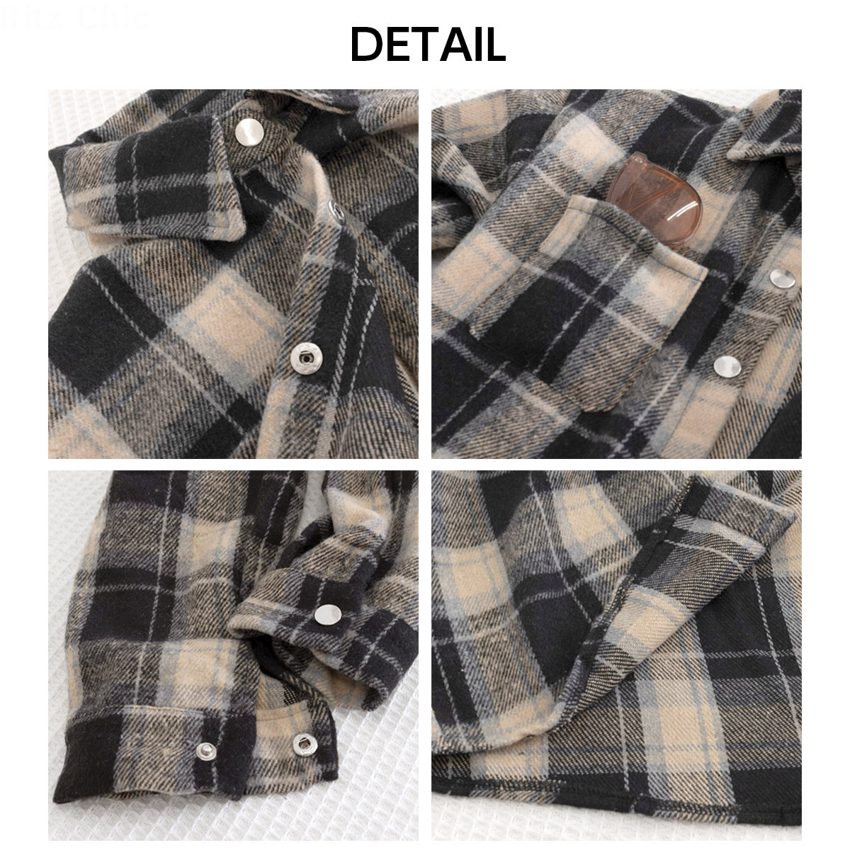 襟付きのデザインがきちんと感のある大人っぽさを演出し、チェック柄のデザインがカジュアルな印象を引き立ててくれます。