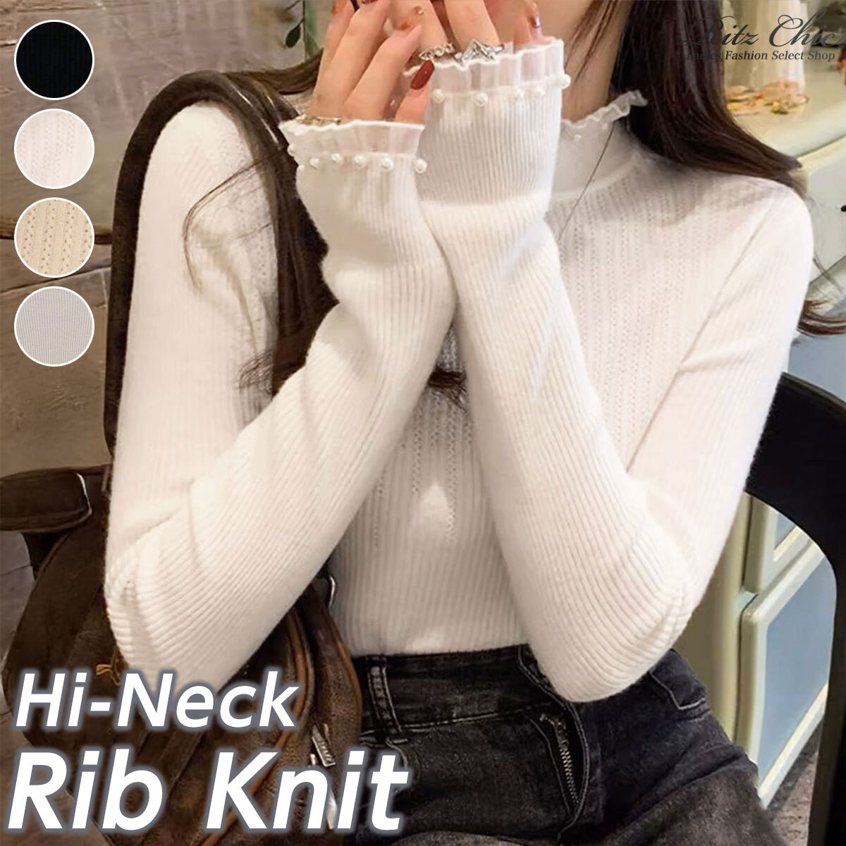 ハイネック ニット 長袖 レディース 春秋冬 リブニット トップス きれいめ 大人 シンプル カジュアル 無地 上品 フェミニン ストレッチ 大人可愛い 大人女子
