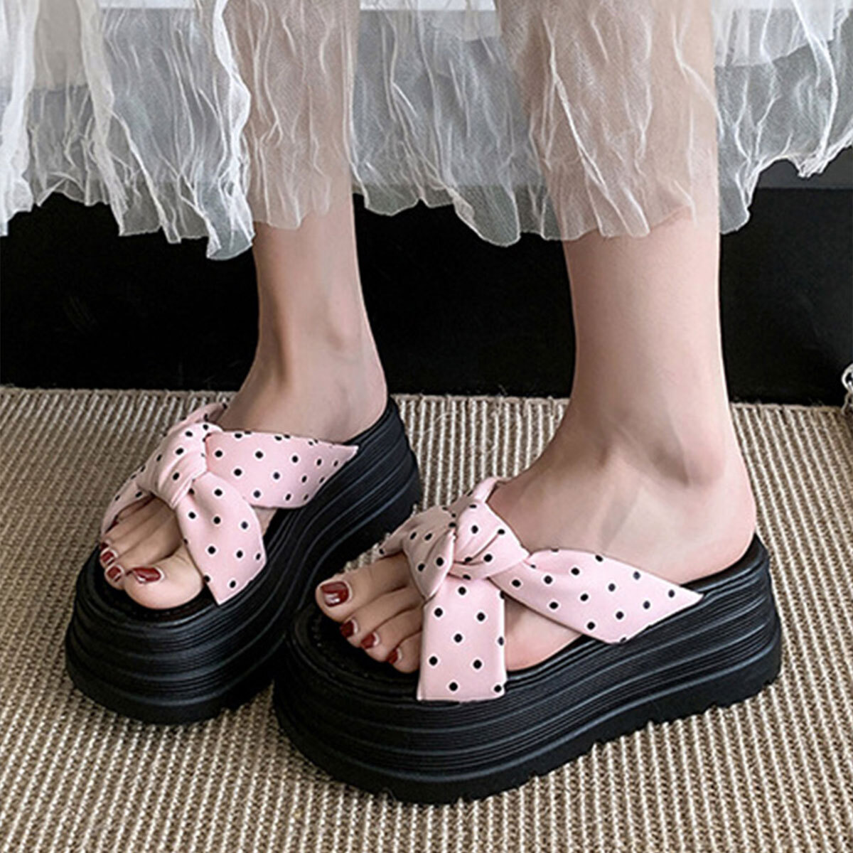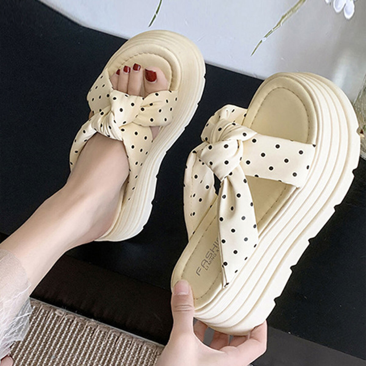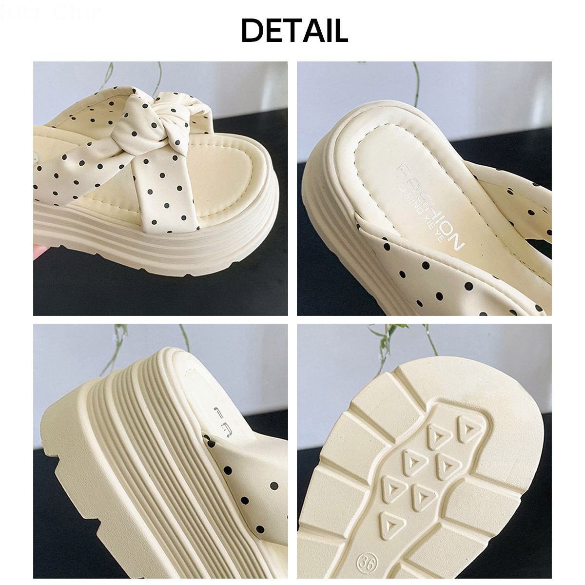 厚底 リボン サンダル ドット柄 レディース 春夏 韓国 きれいめ 大人 かわいい フェミニン おしゃれ フラットサンダル 疲れにくい 歩きやすい 履きやすい 大人可愛い 大人女子
