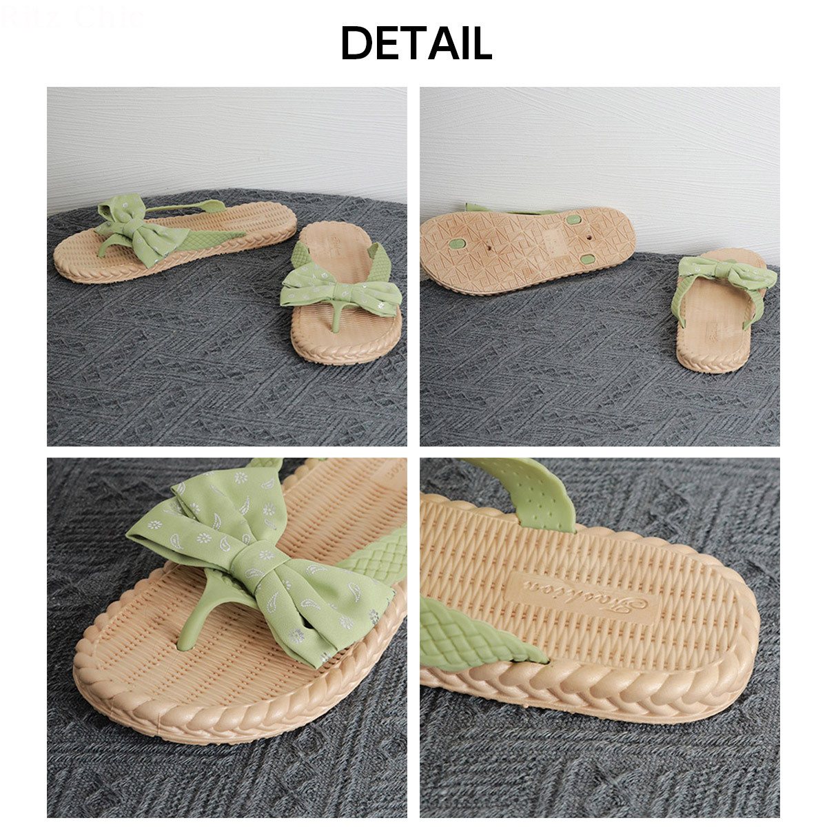 ナチュラルな風合いのソールに、リボンのデザインが目を引くぺたんこソールのサマーサンダルです。
