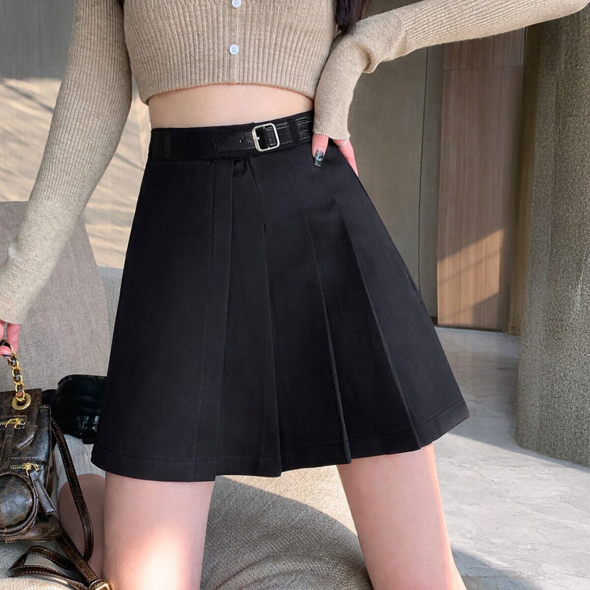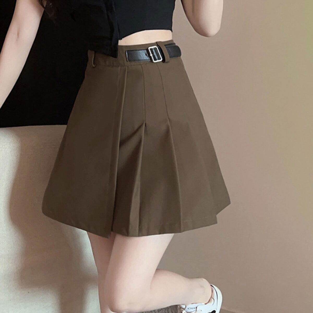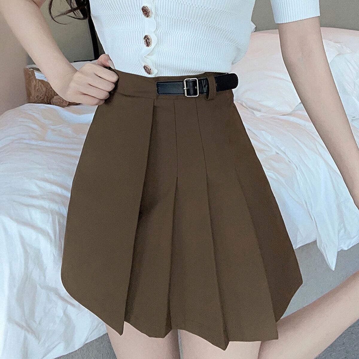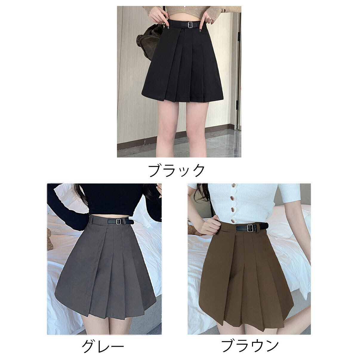 プリーツスカート ミニ スカート レディース 春夏秋 韓国 大人 かわいい きれいめ インナーパンツ付き ハイウエスト おしゃれ 膝上丈 カジュアル ベルト付き 大人可愛い 大人女子