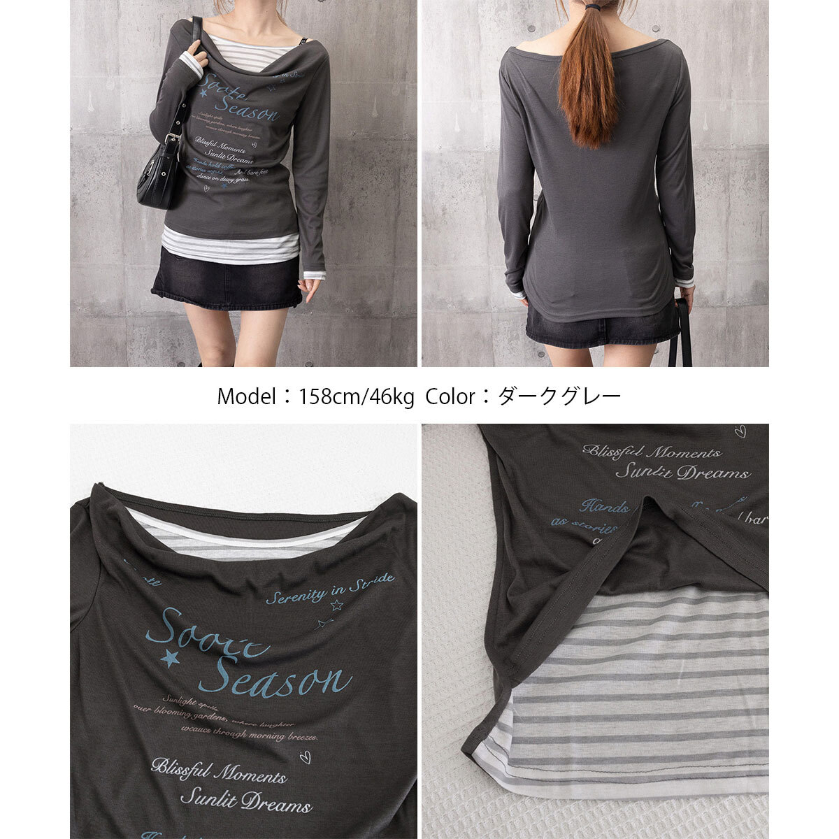 ボーダー柄のインナーにシアーTシャツを、重ね着したようなデザインの長袖Tシャツです。