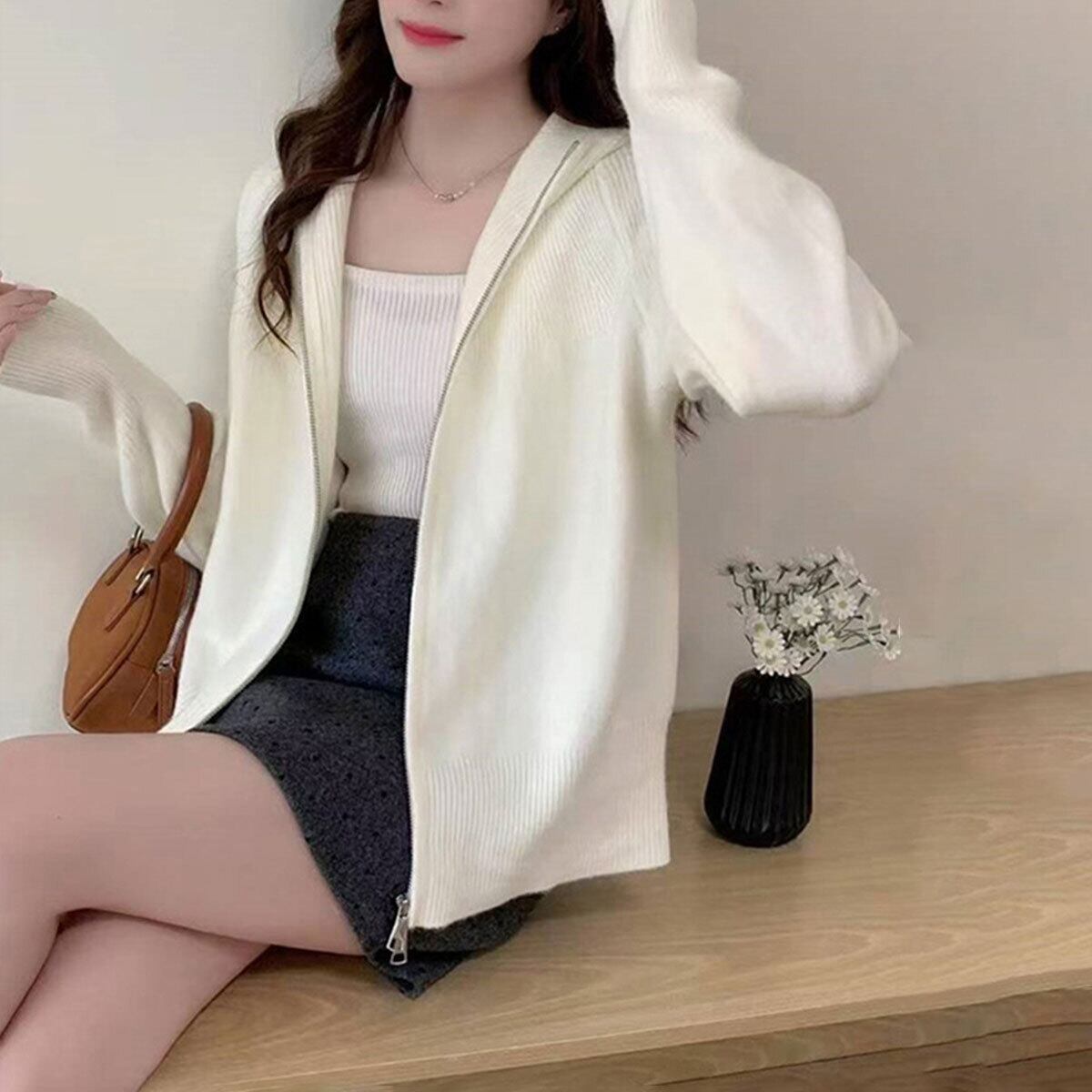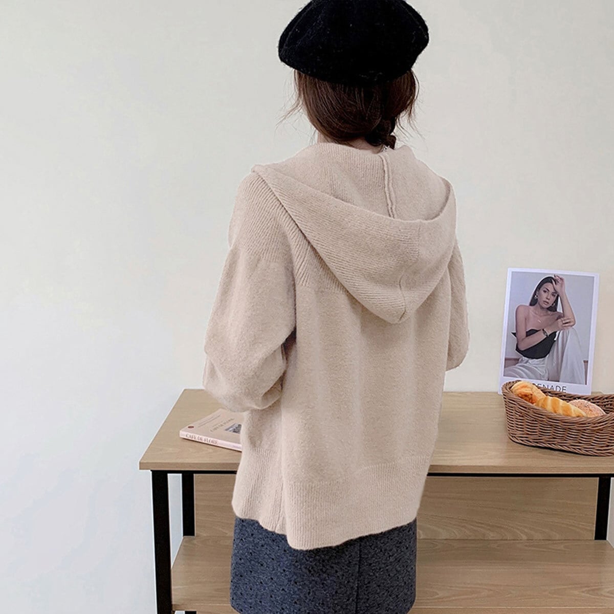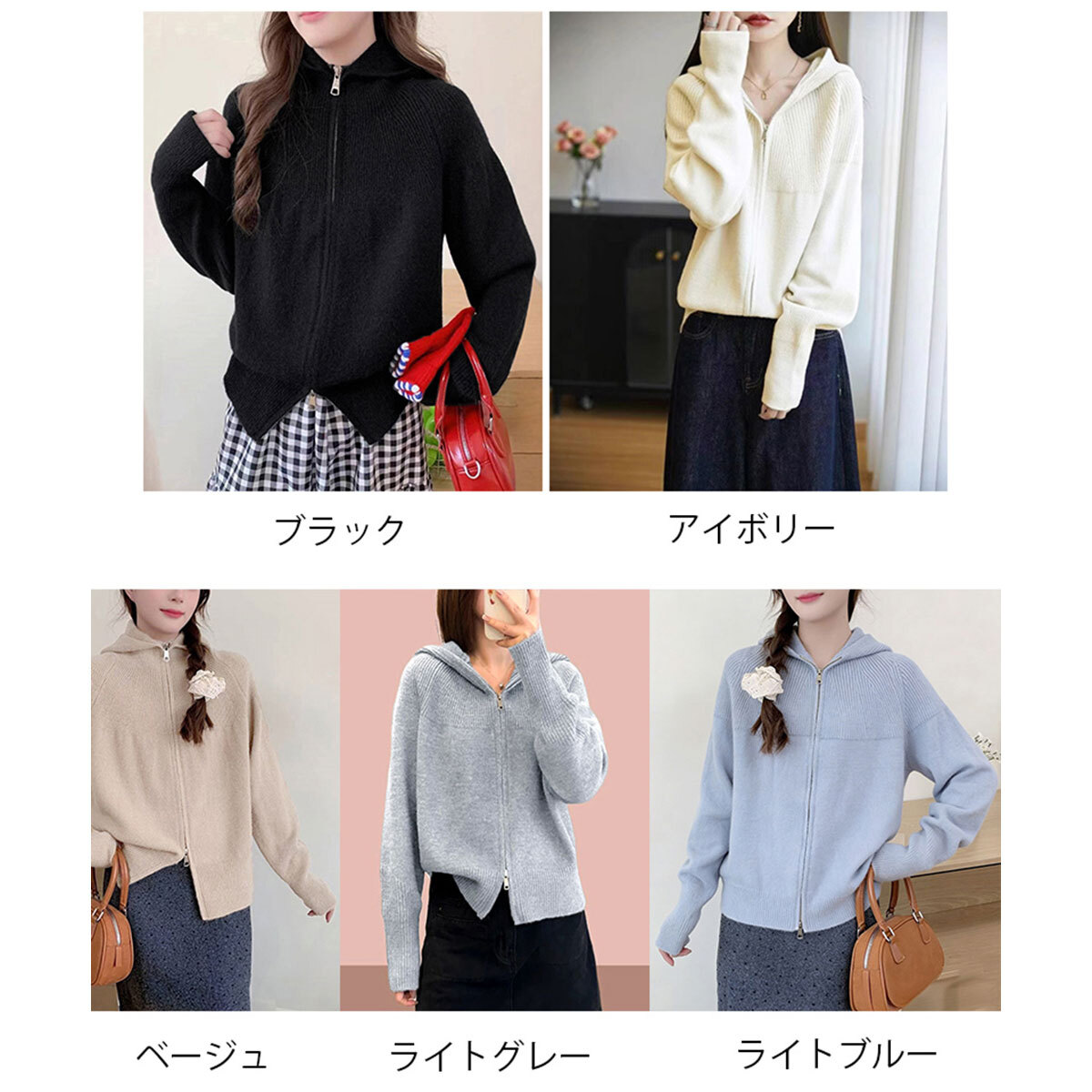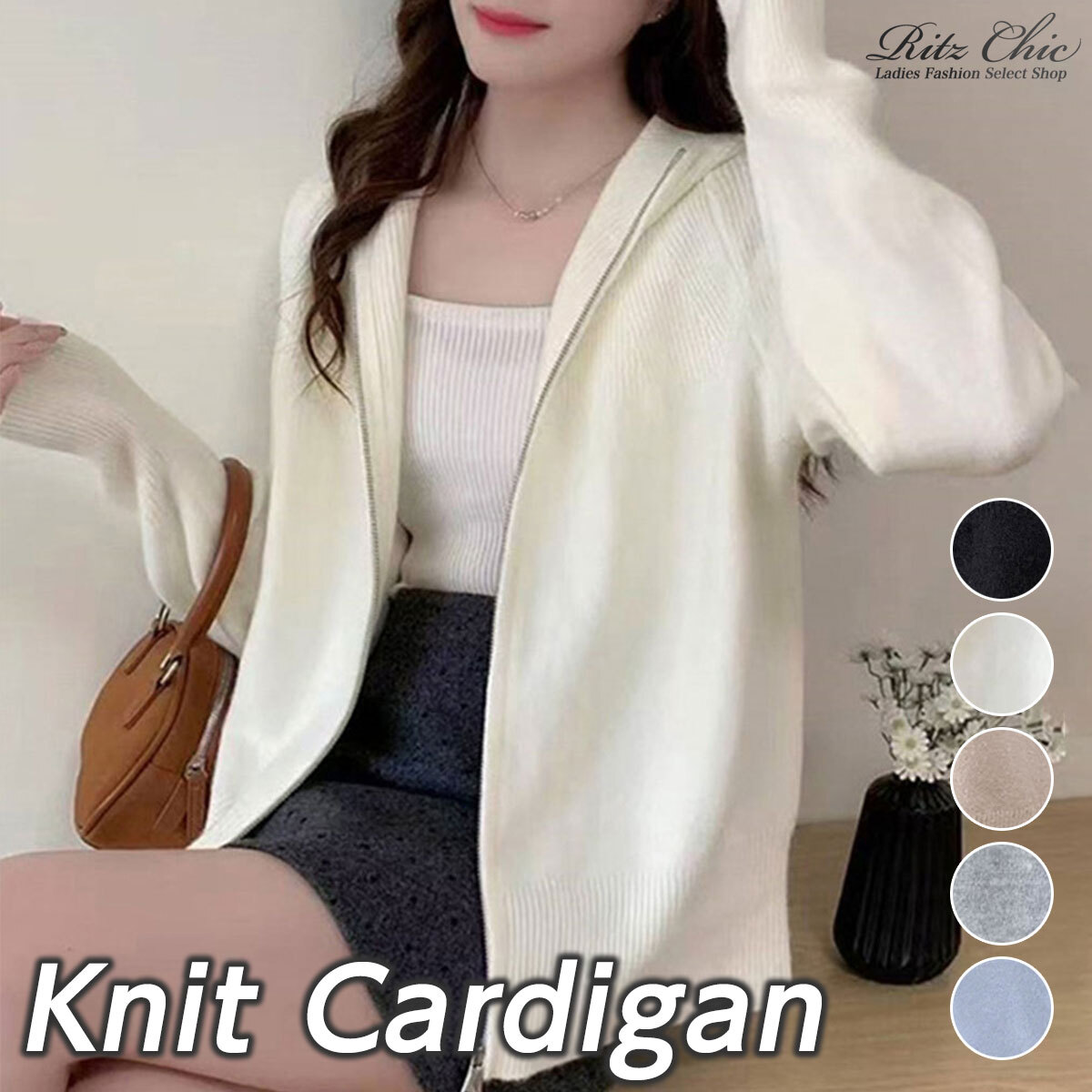 ニット カーディガン フード付き レディース 春秋 韓国 羽織り アウター トップス きれいめ シンプル 大人 カジュアル 暖かい リブニット ニットパーカー 大人可愛い 大人女子