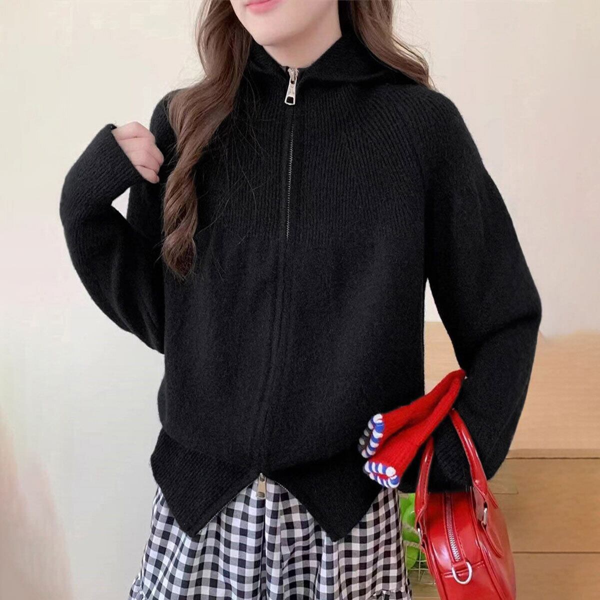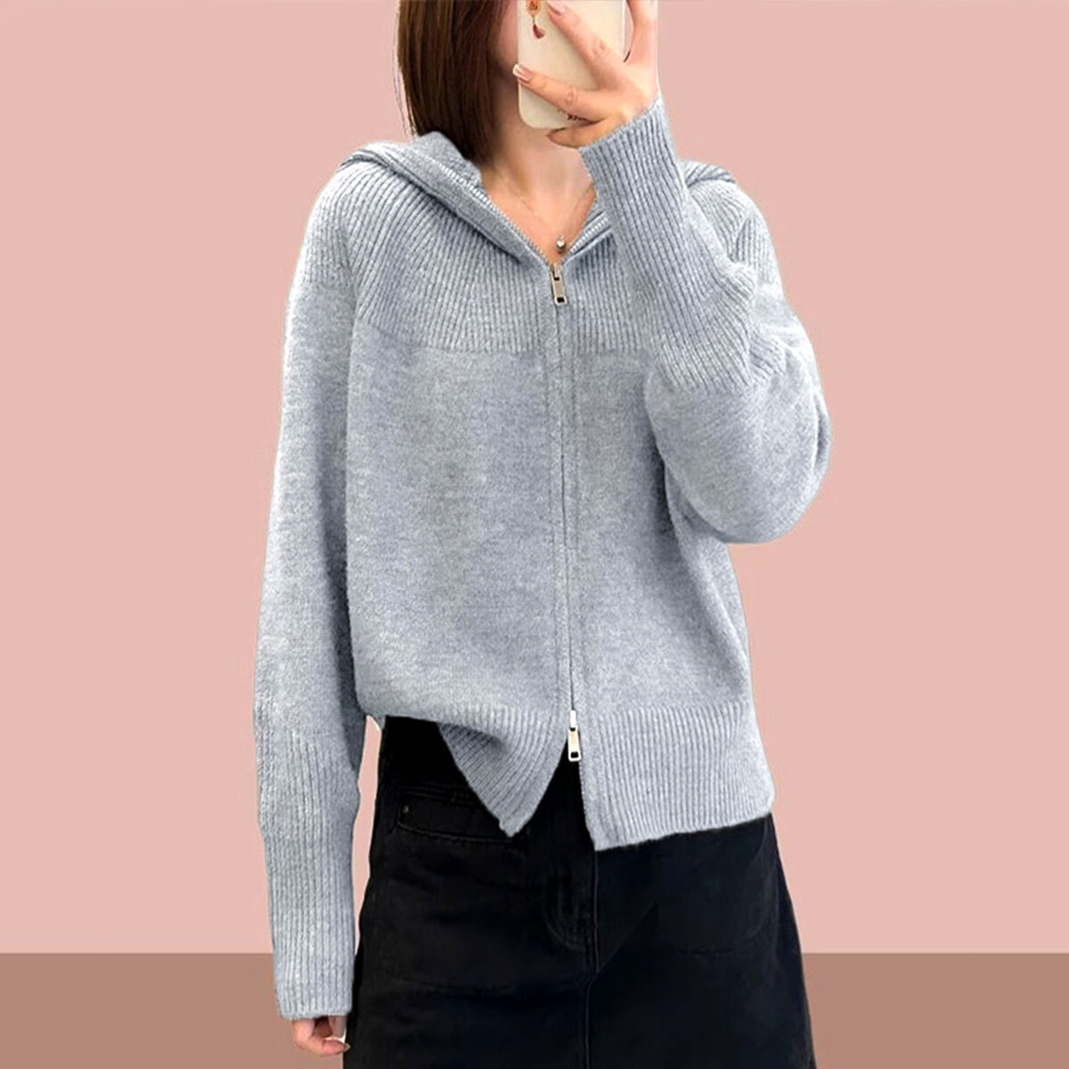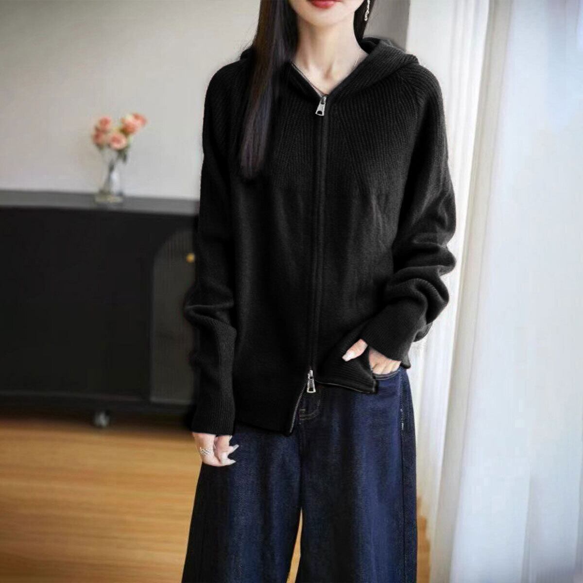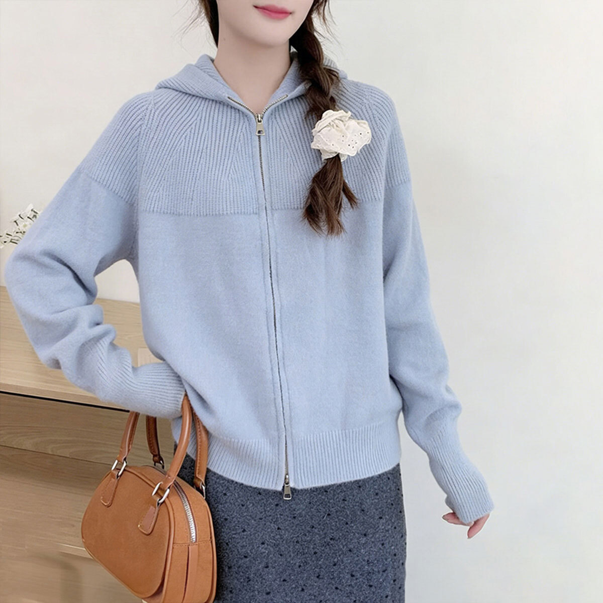 ニット カーディガン フード付き レディース 春秋 韓国 羽織り アウター トップス きれいめ シンプル 大人 カジュアル 暖かい リブニット ニットパーカー 大人可愛い 大人女子