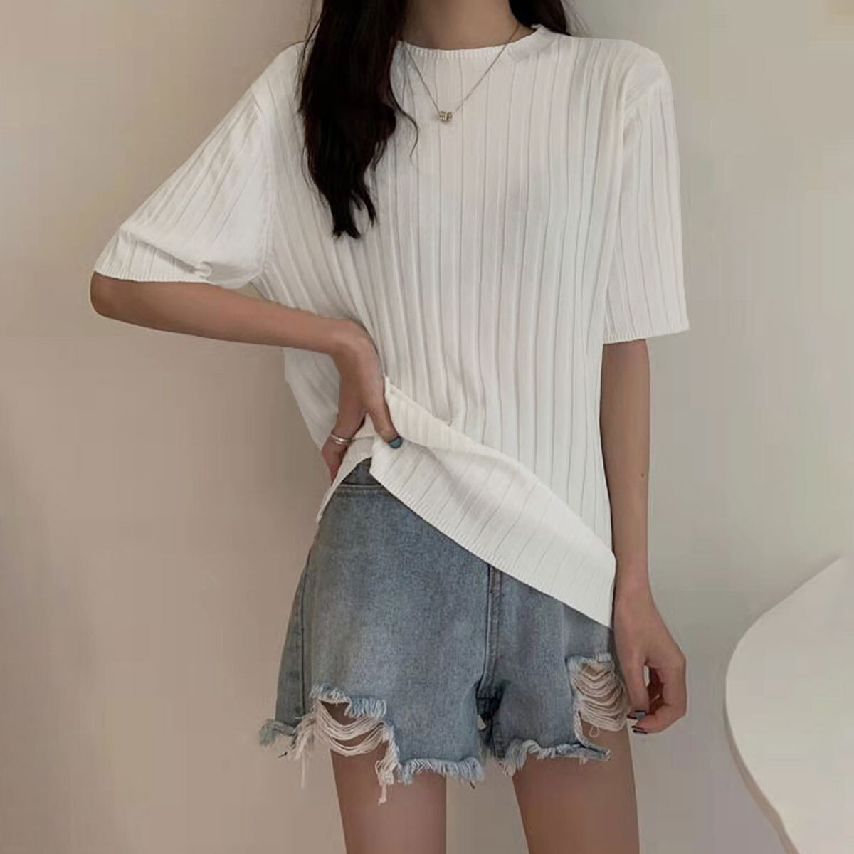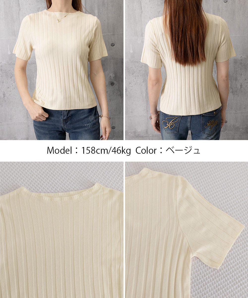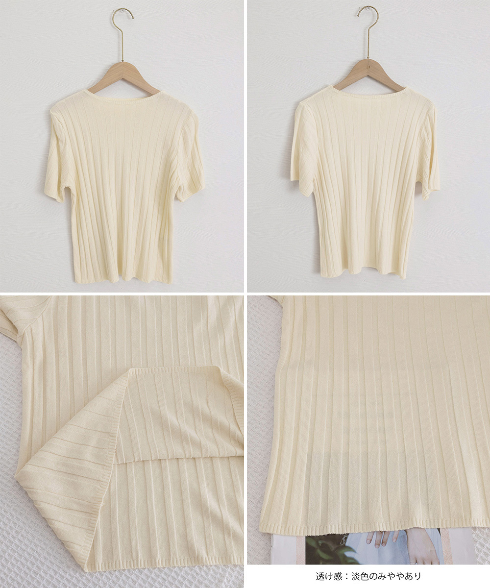 ◇太めのリブデザインが上品な半袖サマーニットトップス。