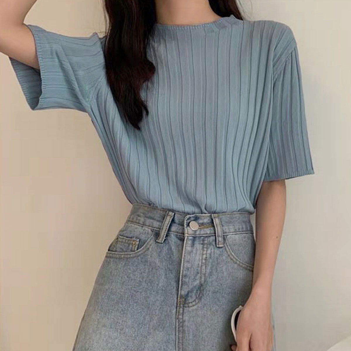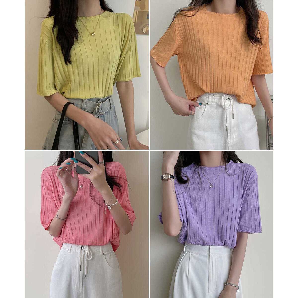 ニット 半袖 トップス レディース 春夏 韓国 きれいめ シンプル 大人 カジュアル リブニット 着回し サマーニット 薄手 オフィスカジュアル 通勤 ビジネス 大人可愛い 大人女子