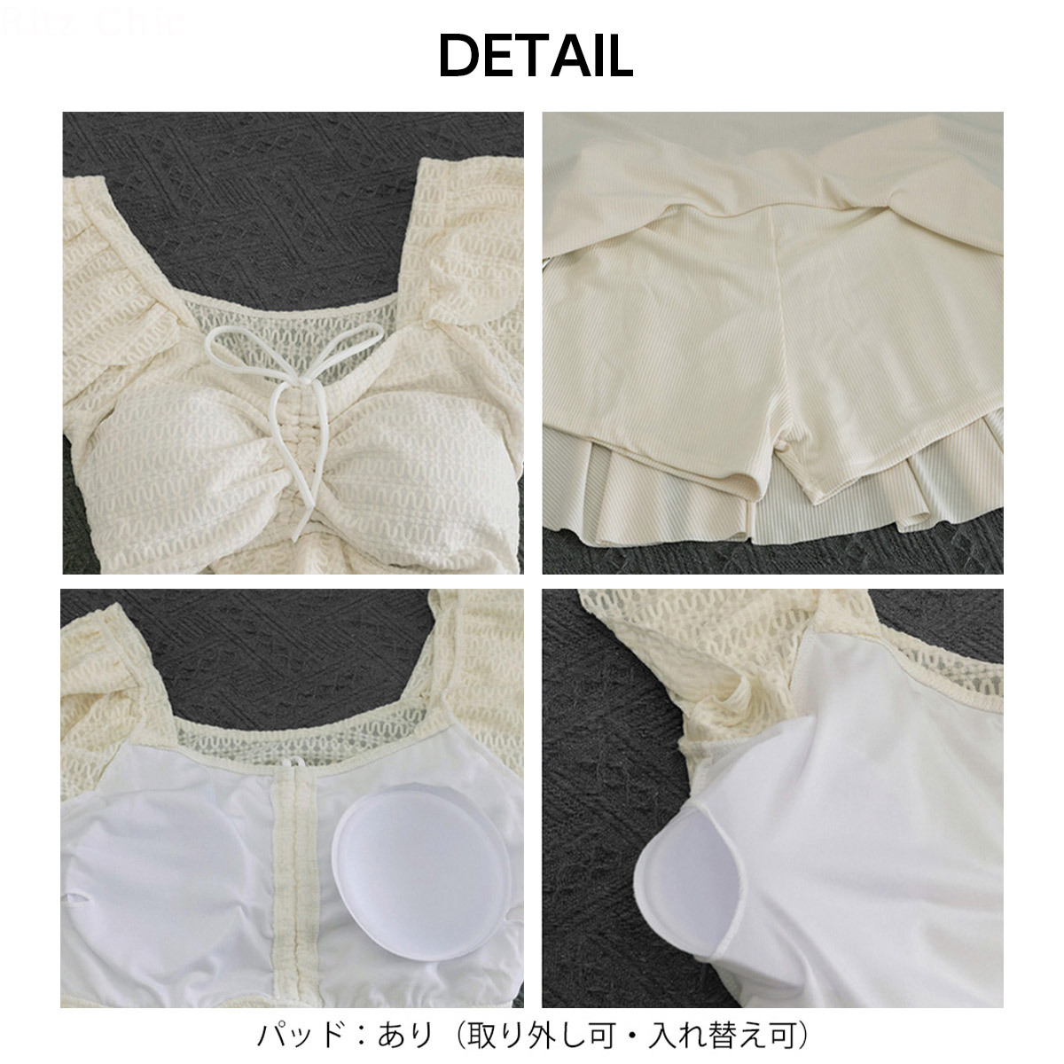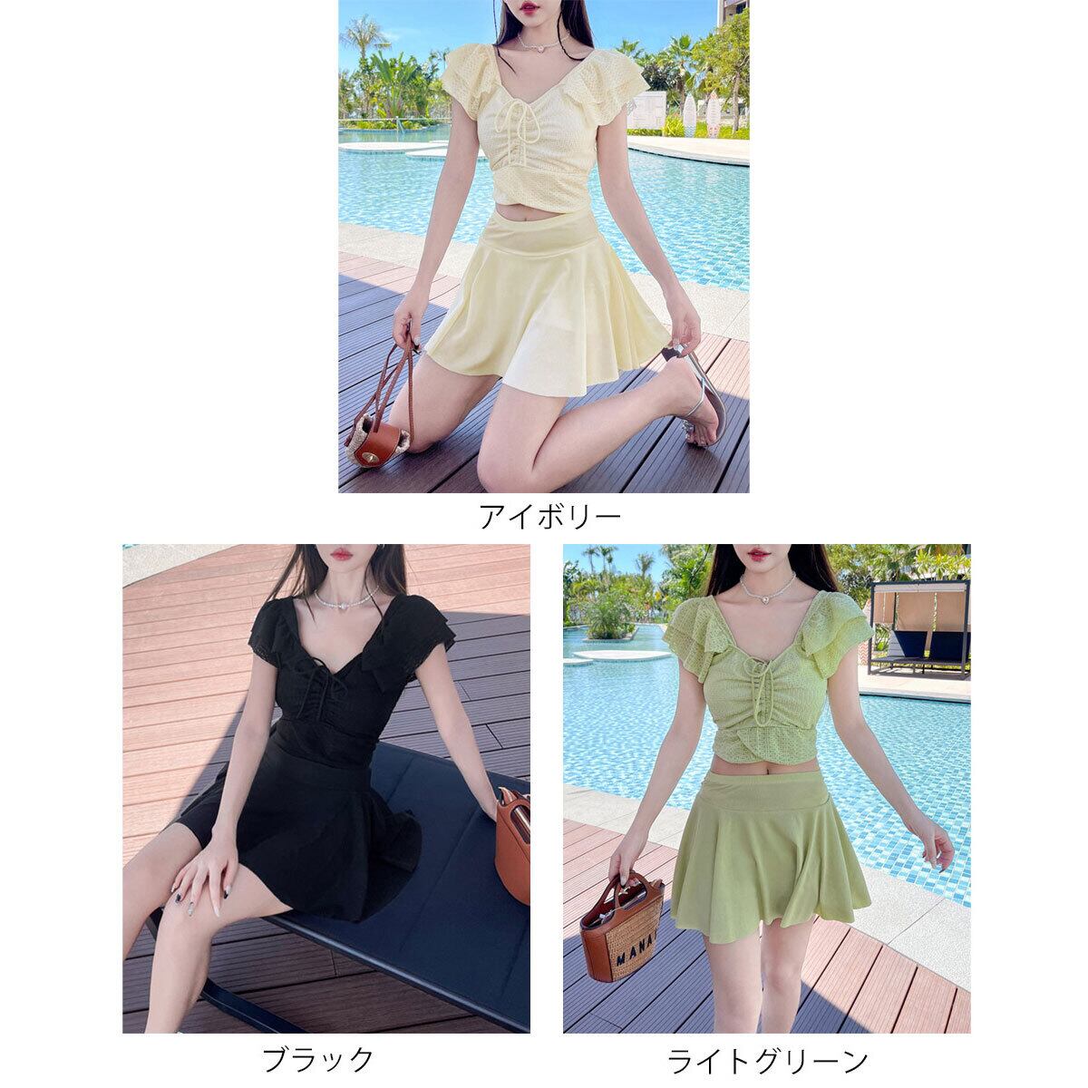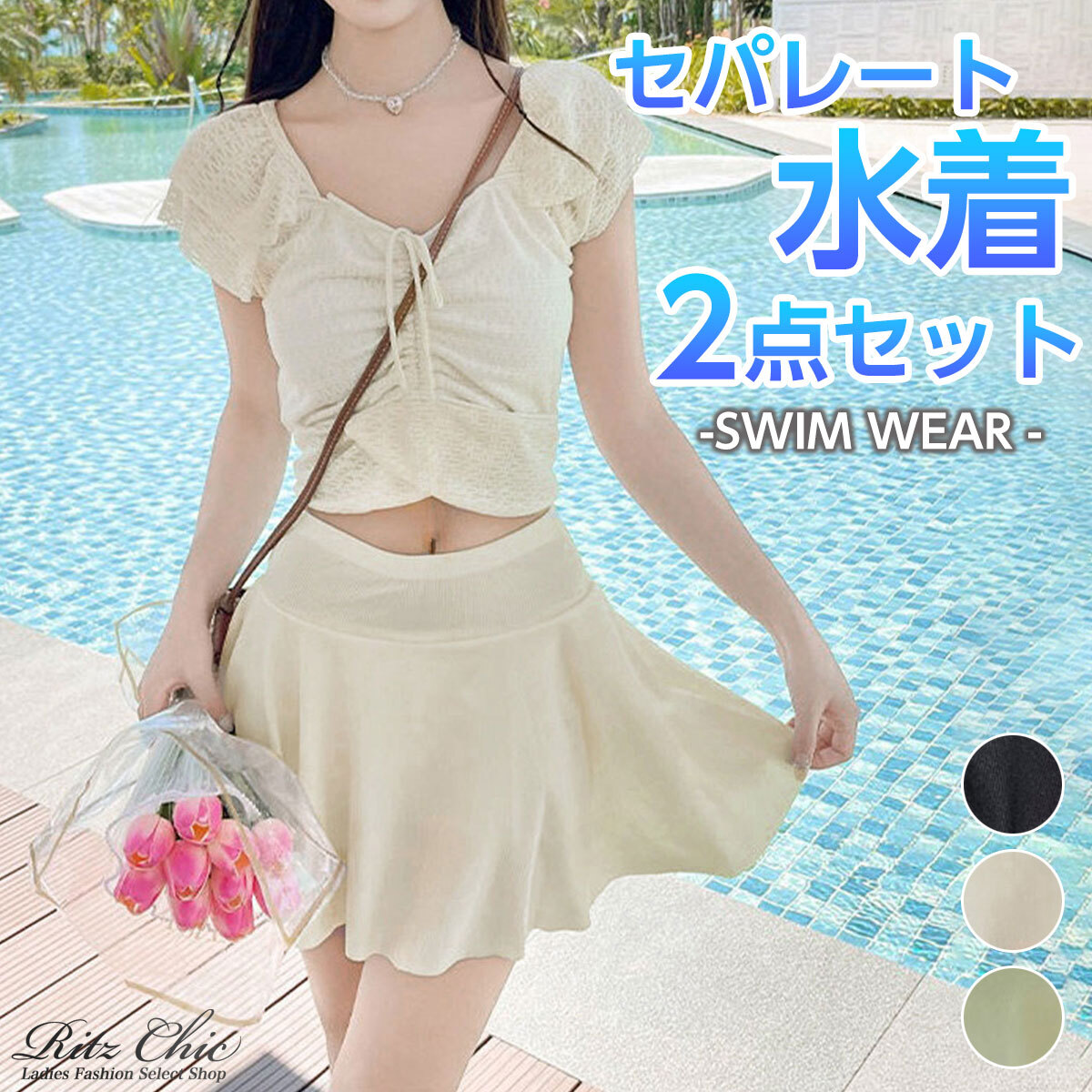 水着 2点セット セパレート レディース スウィムウェア 韓国 夏 おしゃれ きれいめ 大人 かわいい 露出控えめ 胸元ギャザー インナーパンツ付き ビーチ プール レジャー アウトドア 大人可愛い 大人女子