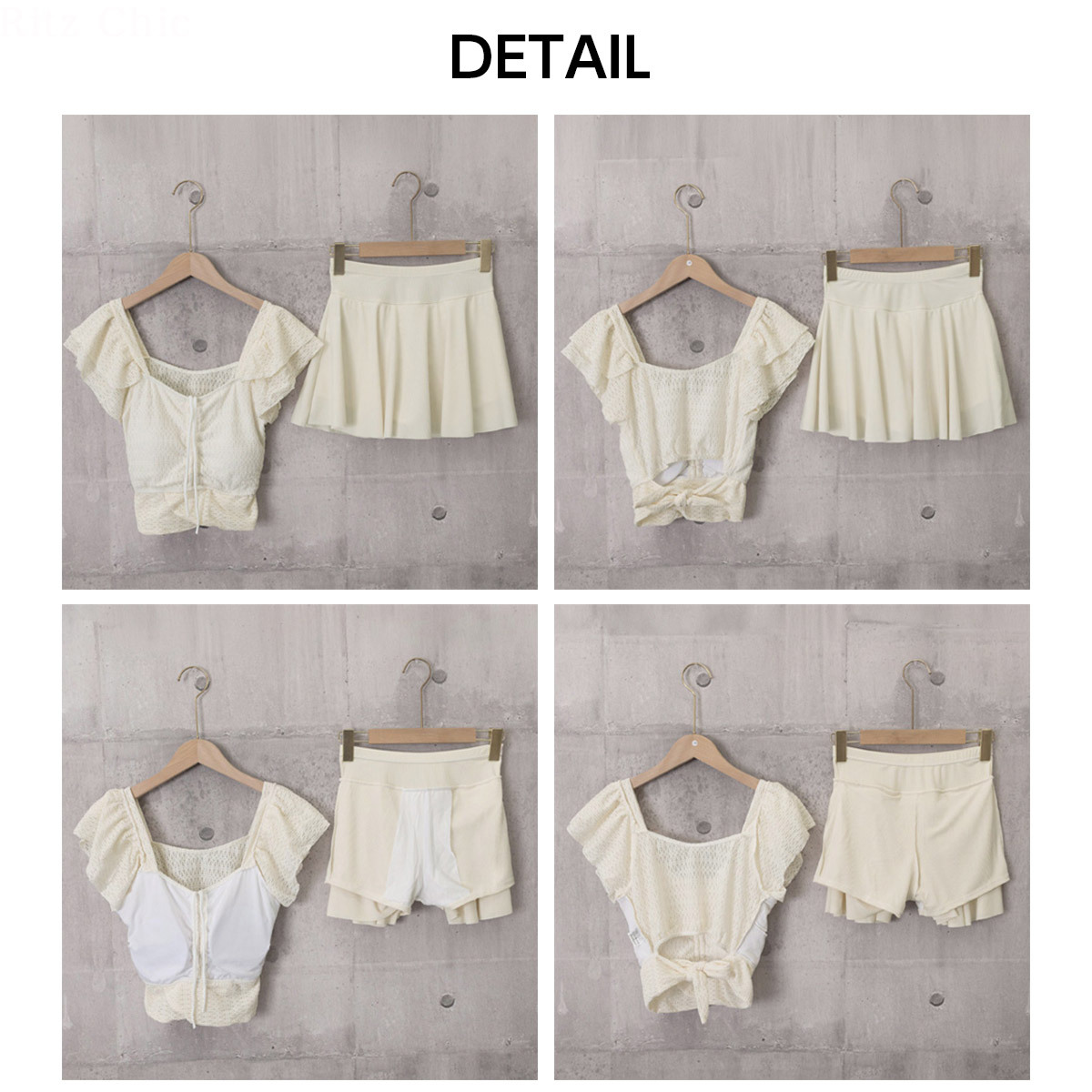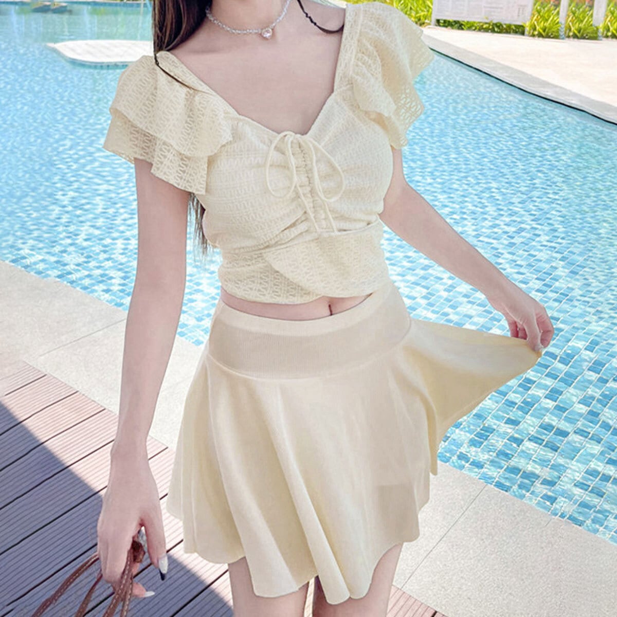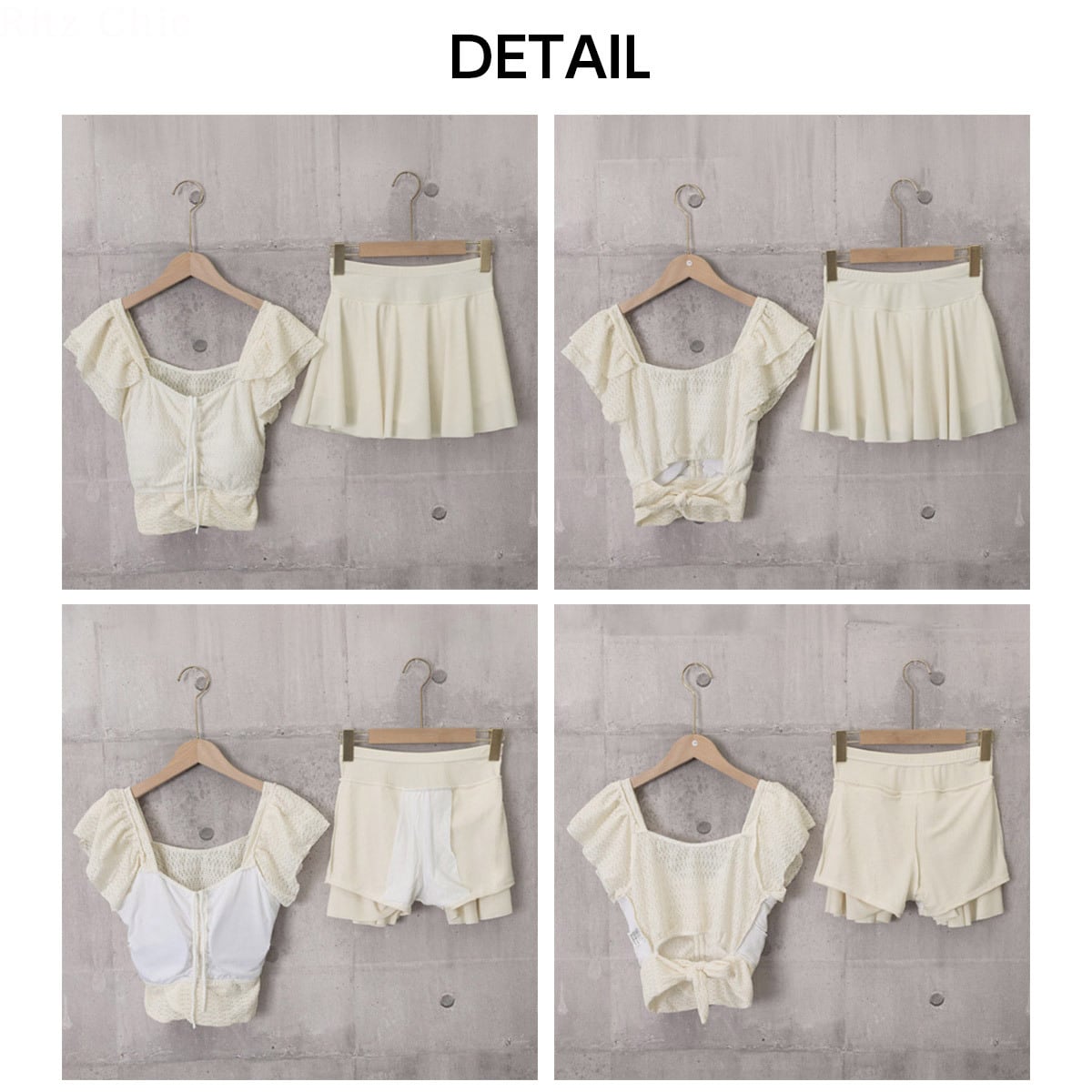 水着 2点セット セパレート レディース スウィムウェア 韓国 夏 おしゃれ きれいめ 大人 かわいい 露出控えめ 胸元ギャザー インナーパンツ付き ビーチ プール レジャー アウトドア 大人可愛い 大人女子