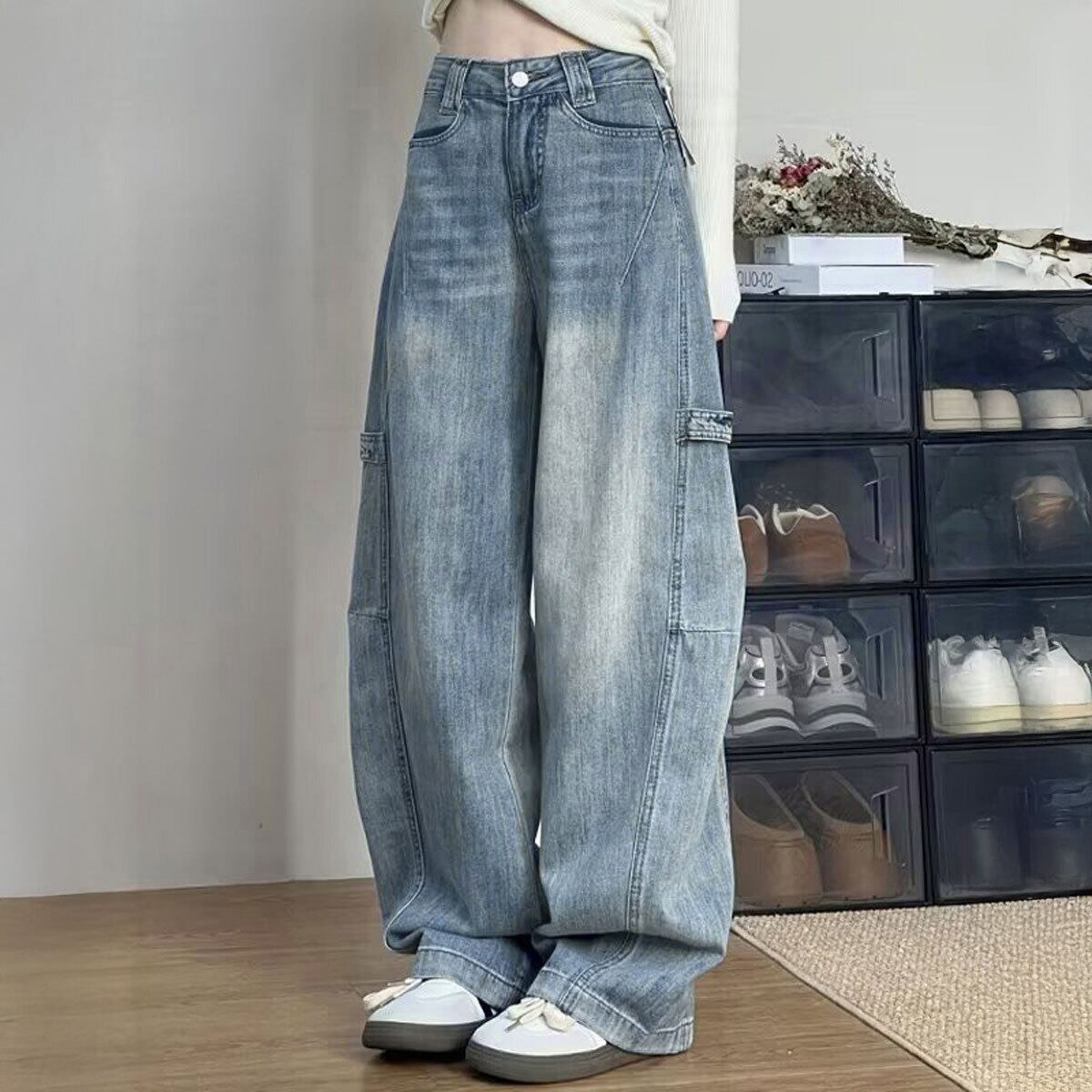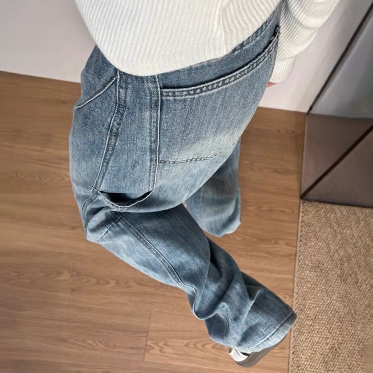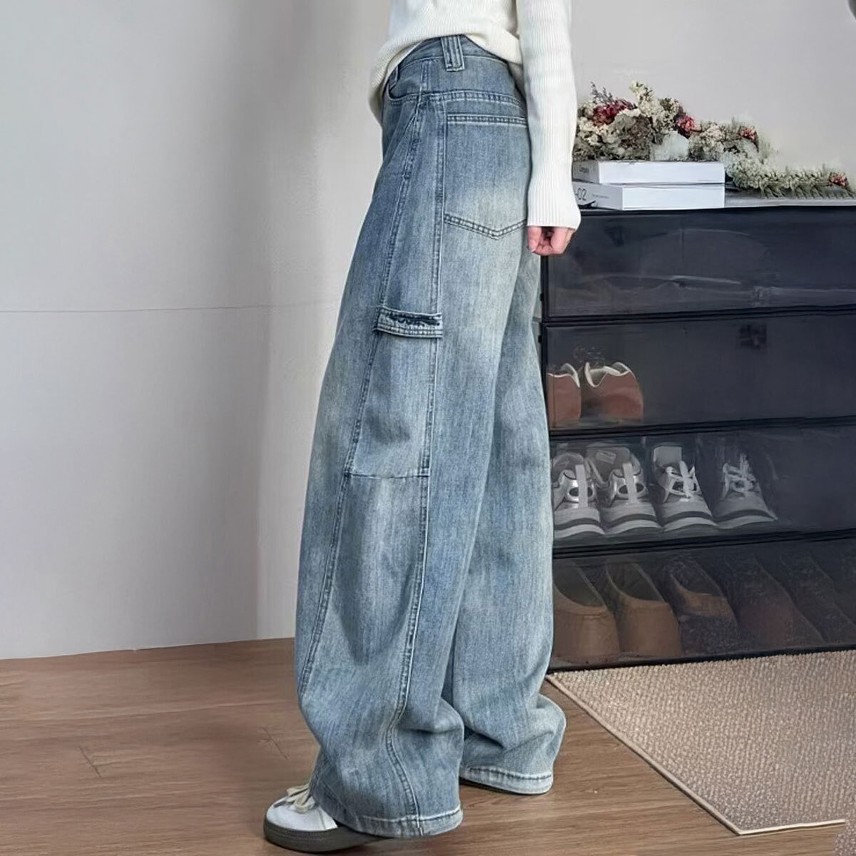 デニム パンツ ヴィンテージ風 レディース 韓国 ステッチ ジーンズ おしゃれ 大人 カジュアル ストリート アメカジ レトロ グラデーション ワイドパンツ 大人可愛い 大人女子