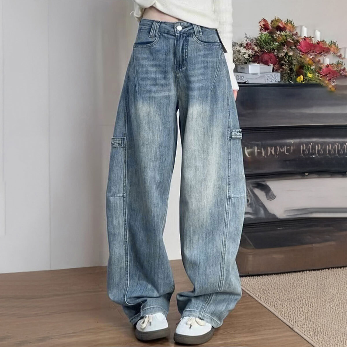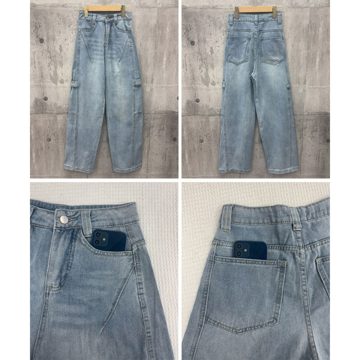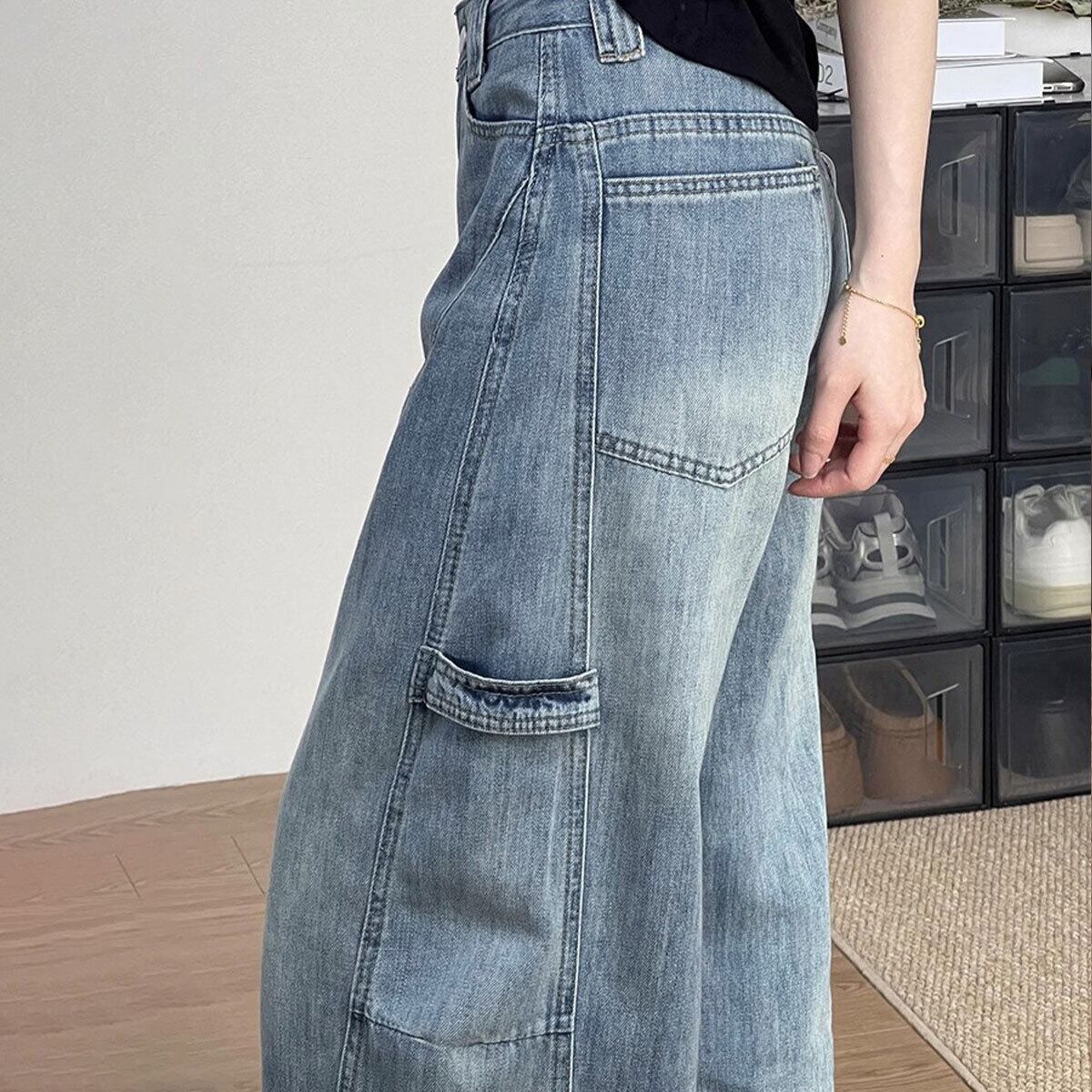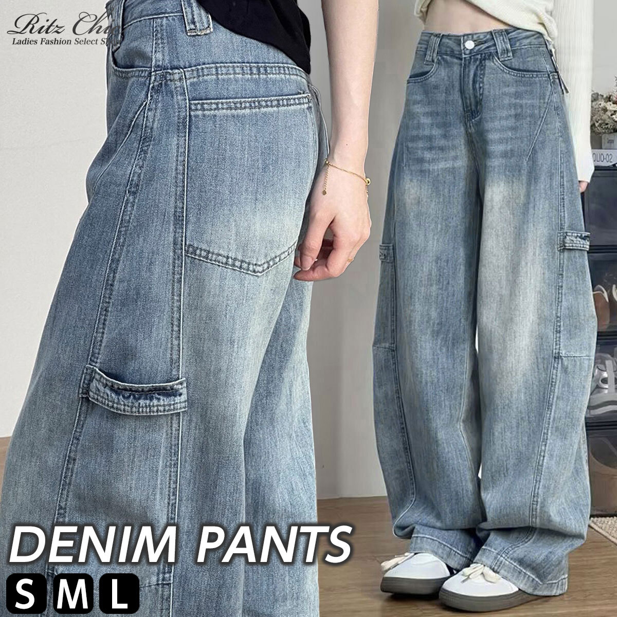 デニム パンツ ヴィンテージ風 レディース 韓国 ステッチ ジーンズ おしゃれ 大人 カジュアル ストリート アメカジ レトロ グラデーション ワイドパンツ 大人可愛い 大人女子