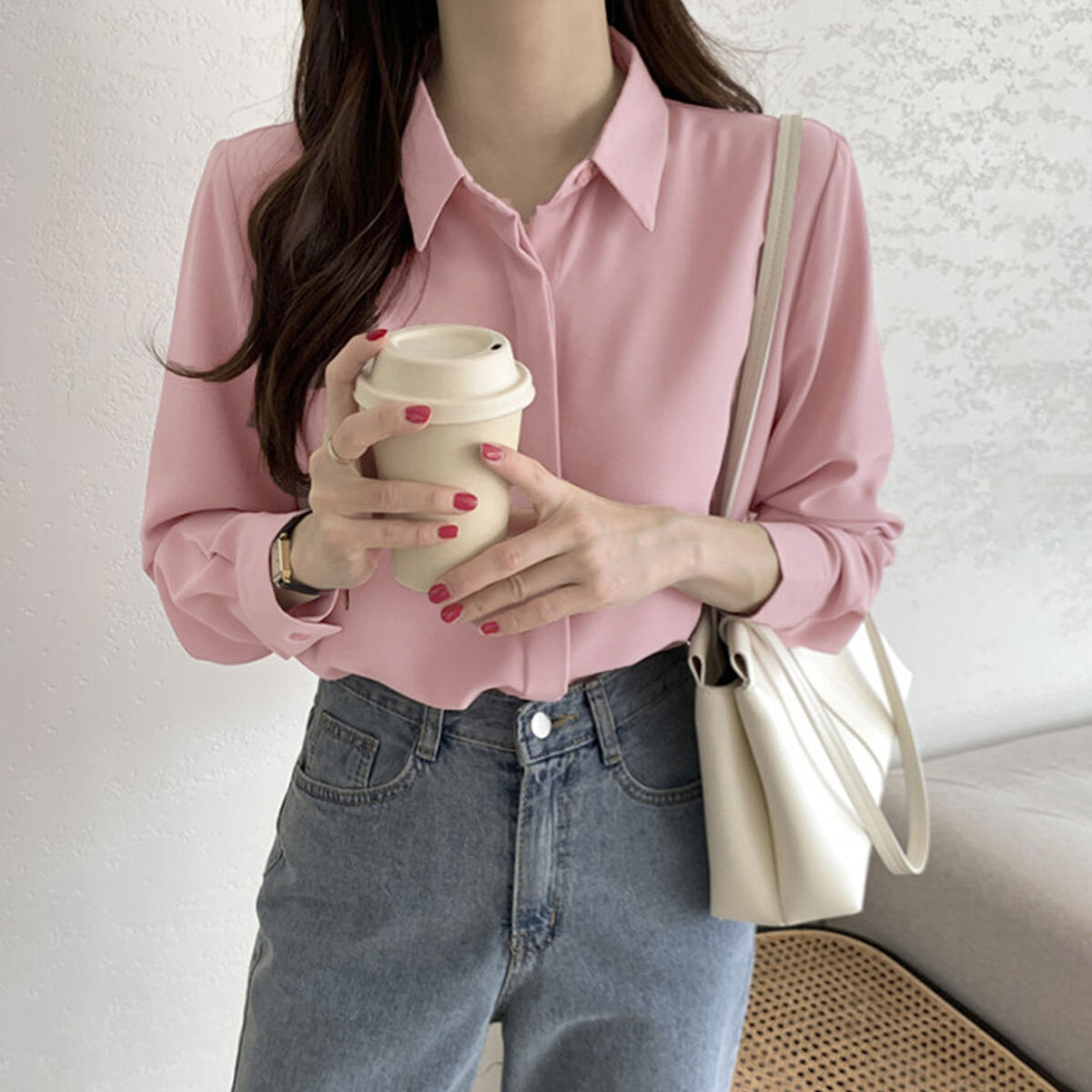 シャツブラウス 長袖 シャツ レディース 春秋 韓国 大人 きれいめ 通勤 ビジネス オフィス フォーマル 入学式 卒業式 参観日 学校行事 シンプル 襟付き トップス 大人可愛い 大人女子