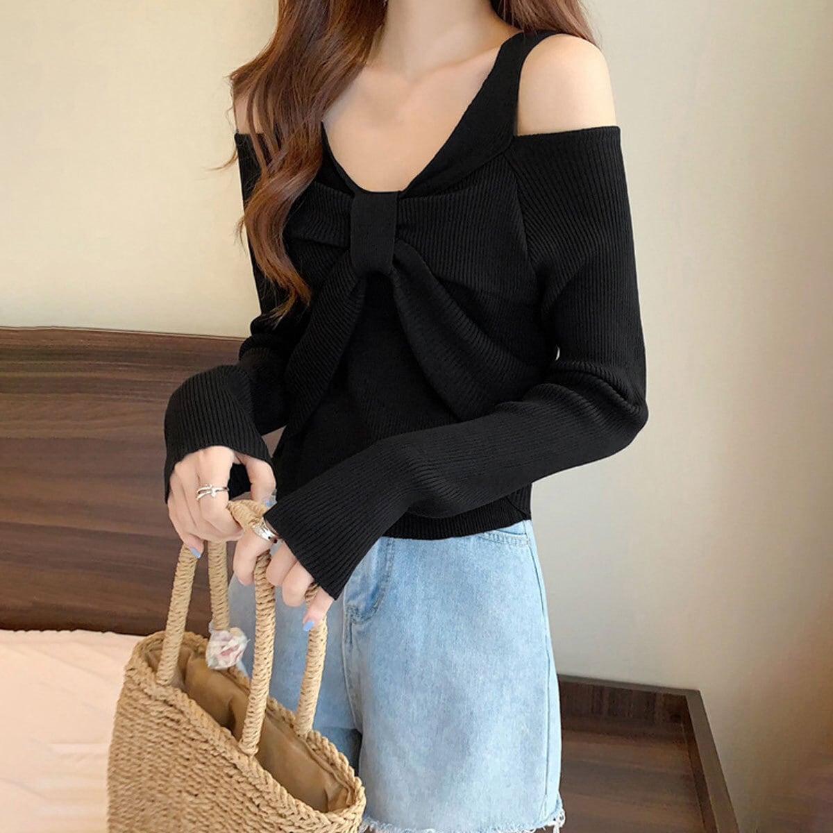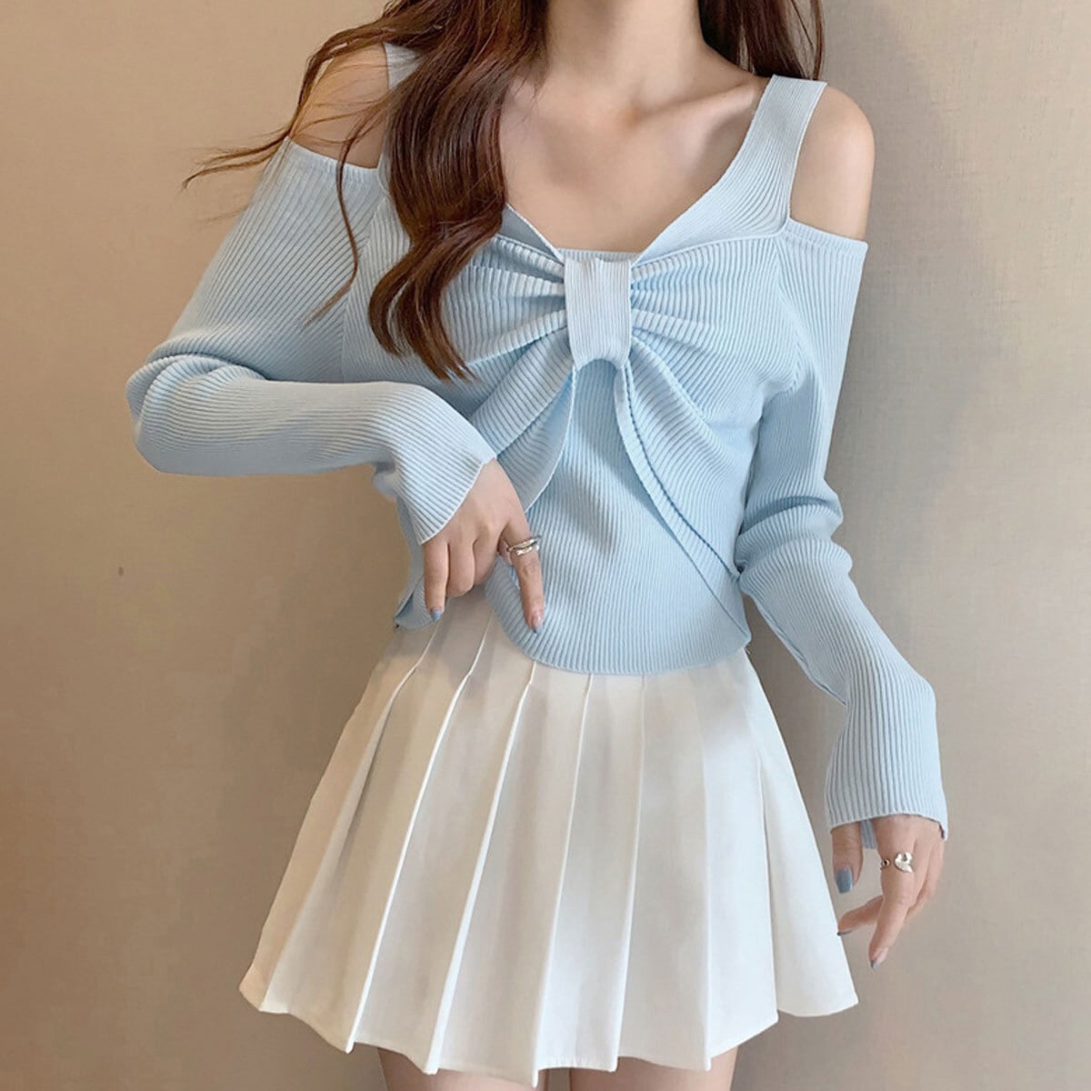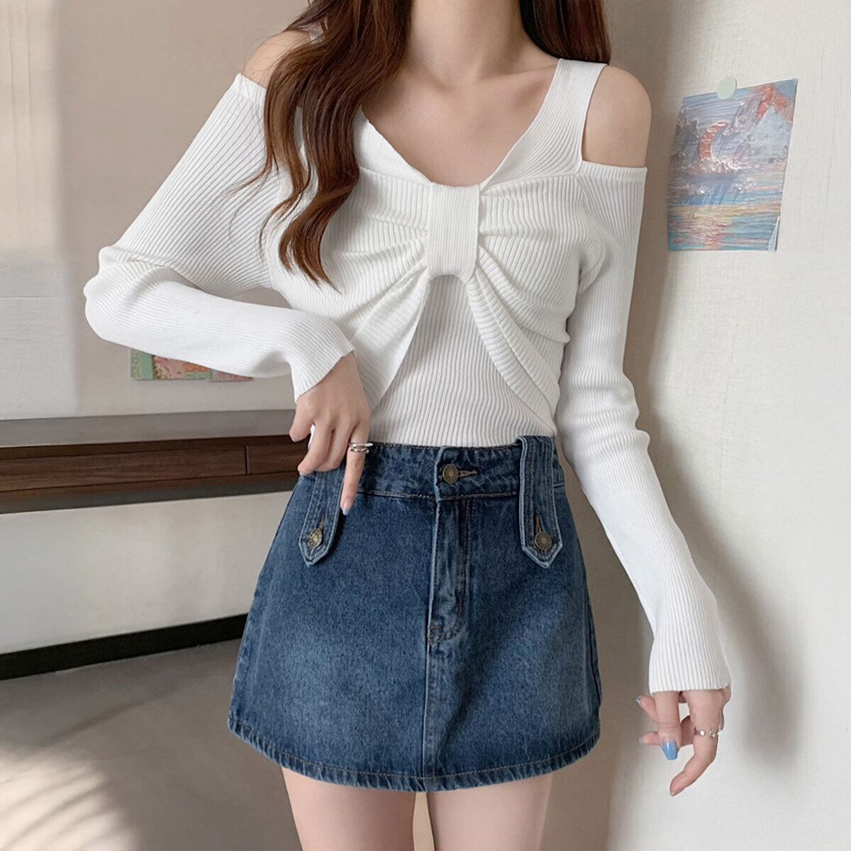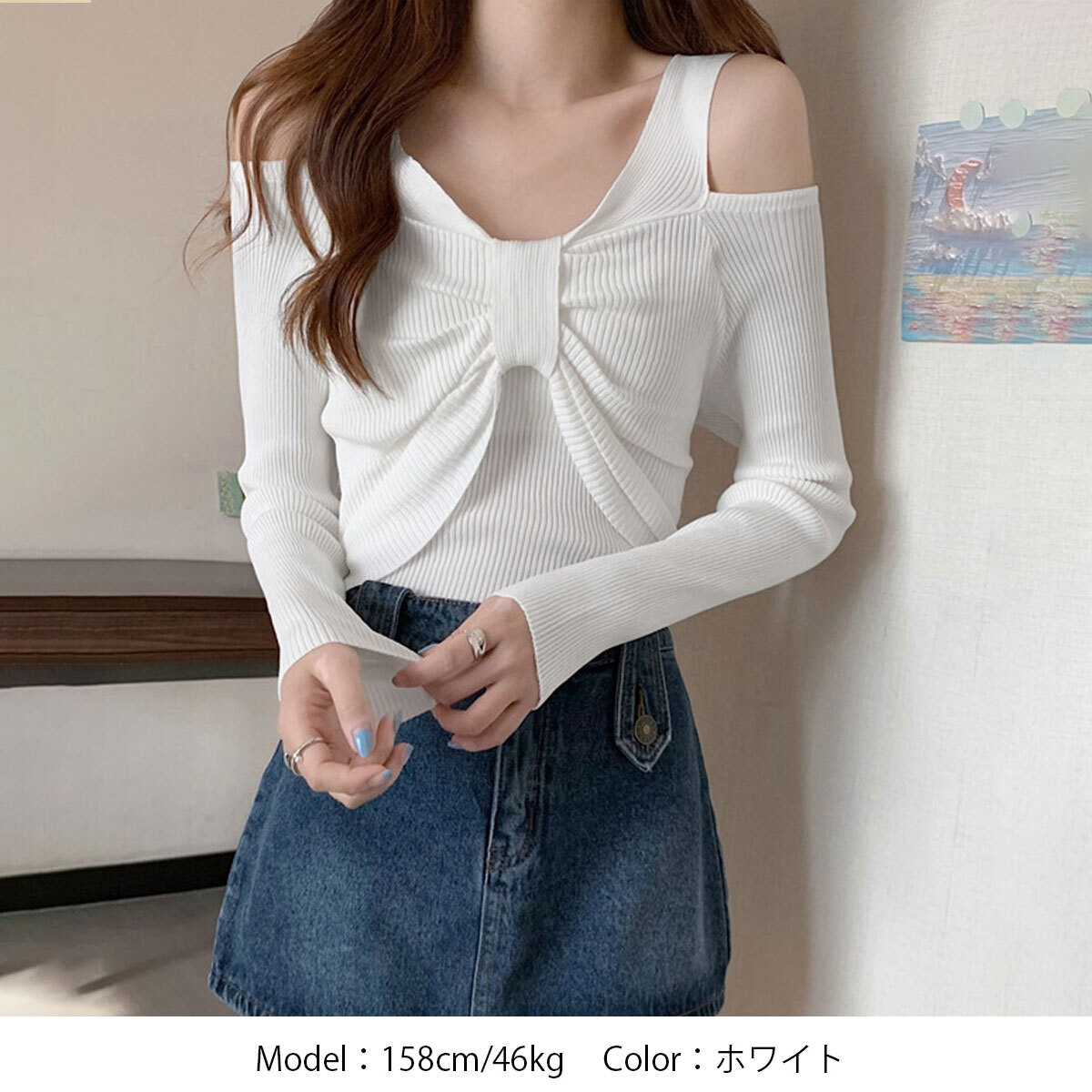 肩出しデザインが魅力的で、韓国風の流行を取り入れた大人女子にぴったりのアイテムとなっています。