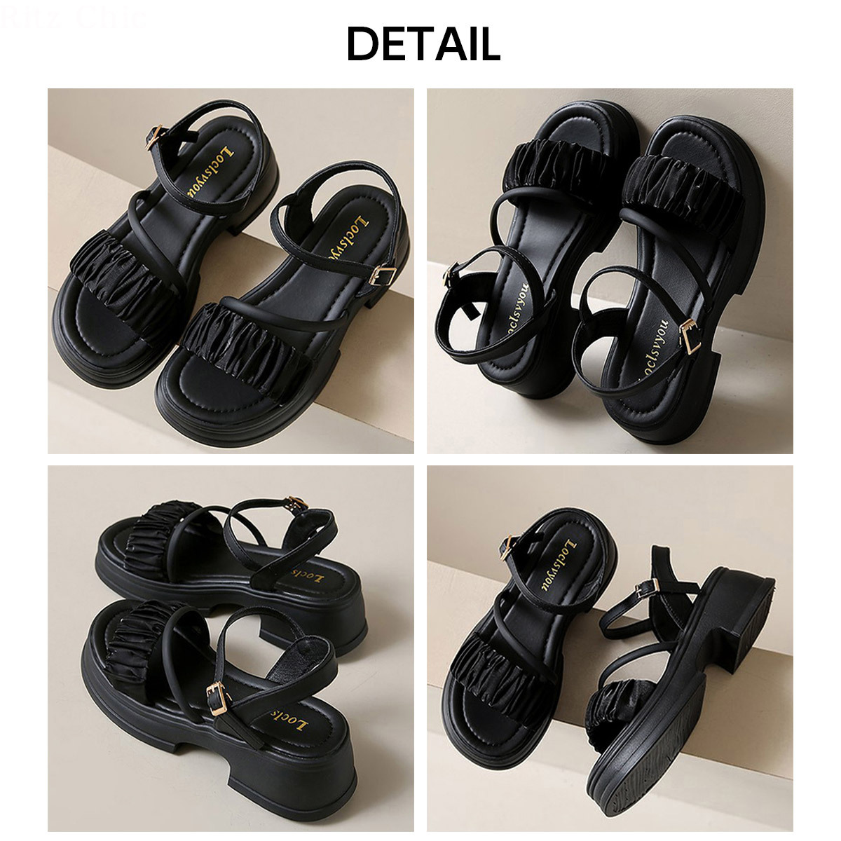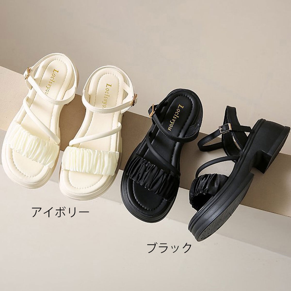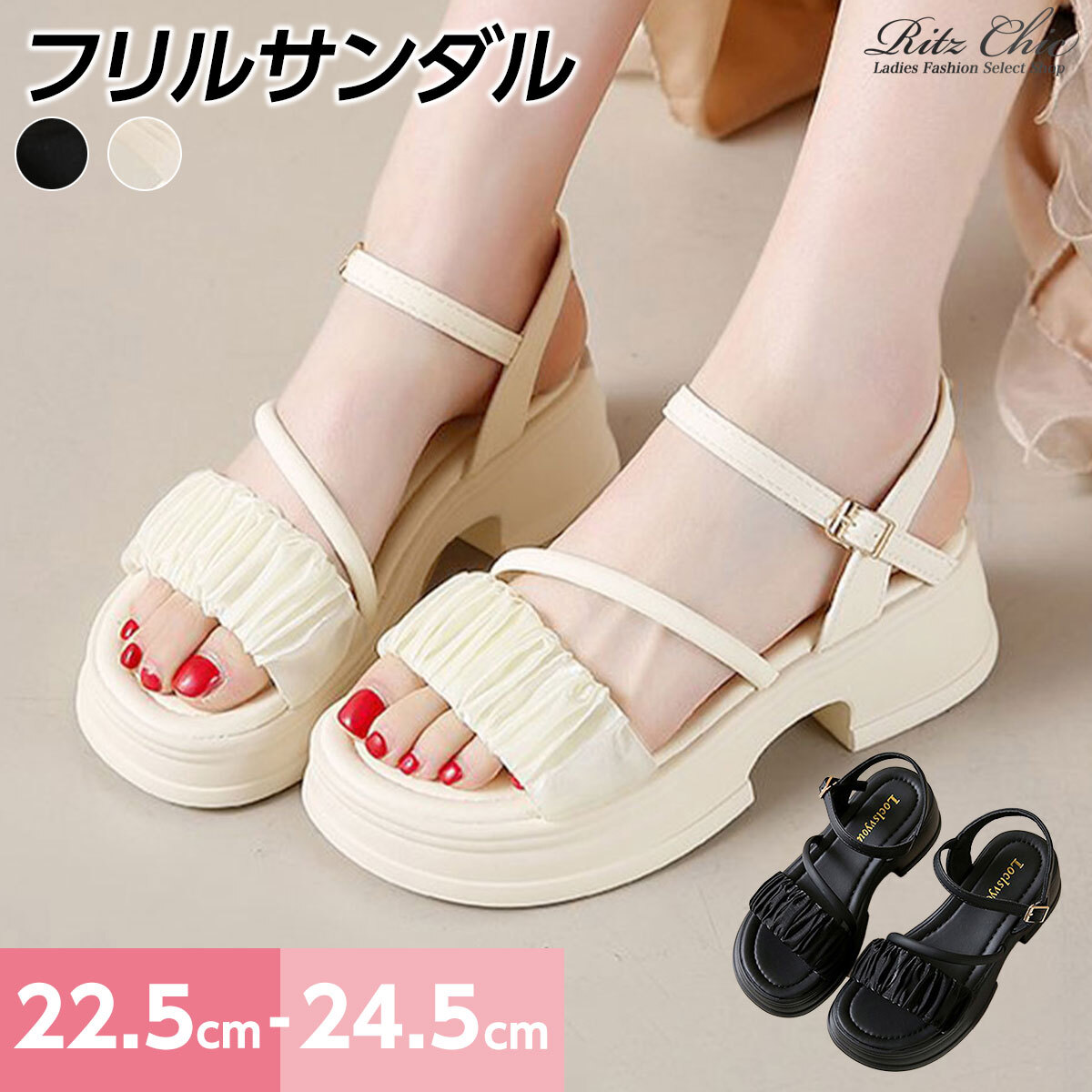 厚底 フリル サンダル チャンキーヒール レディース 春夏 韓国 おしゃれ 大人 かわいい きれいめ 歩きやすい 疲れにくい カジュアル ボリュームソール ビーチ フリルべルト 大人可愛い 大人女子