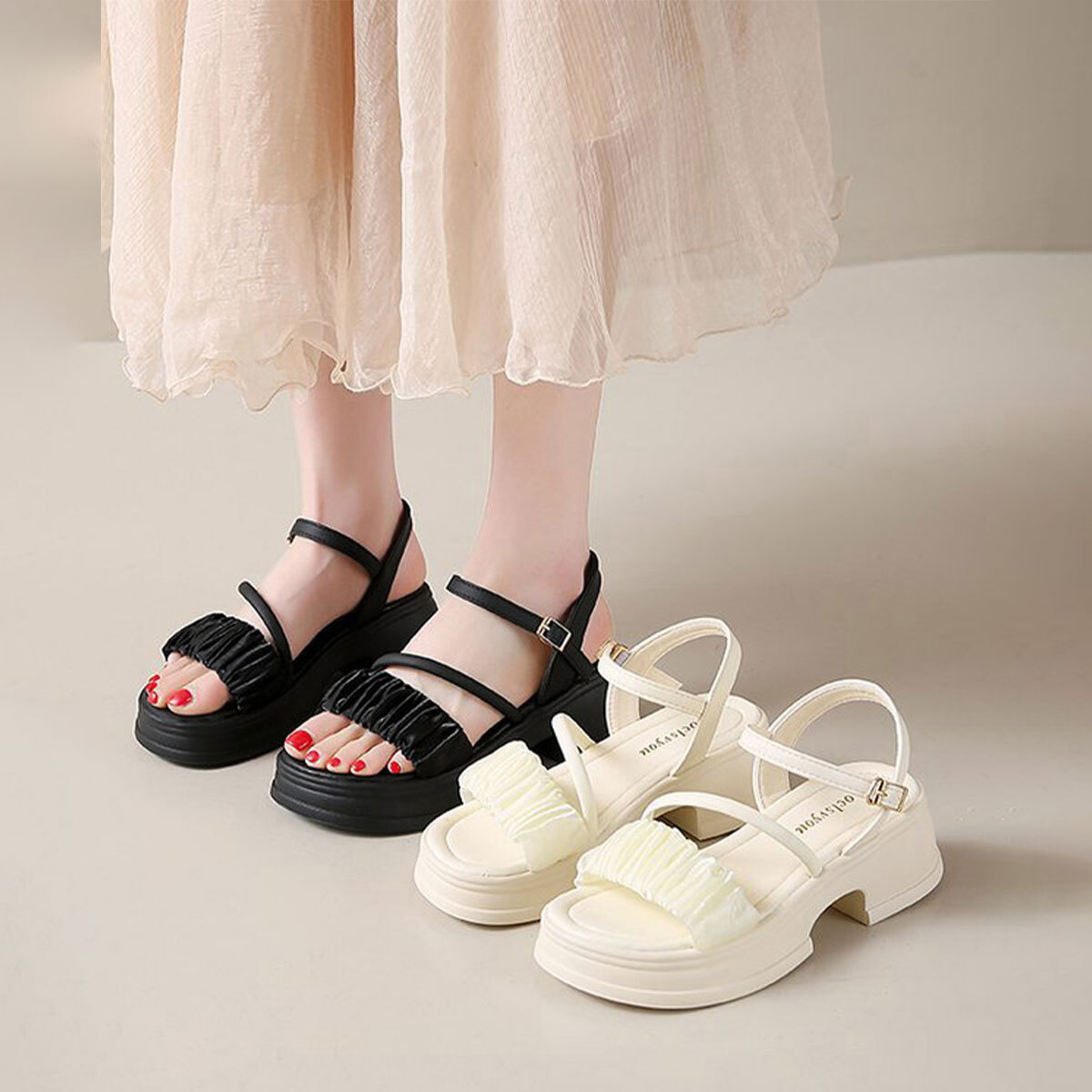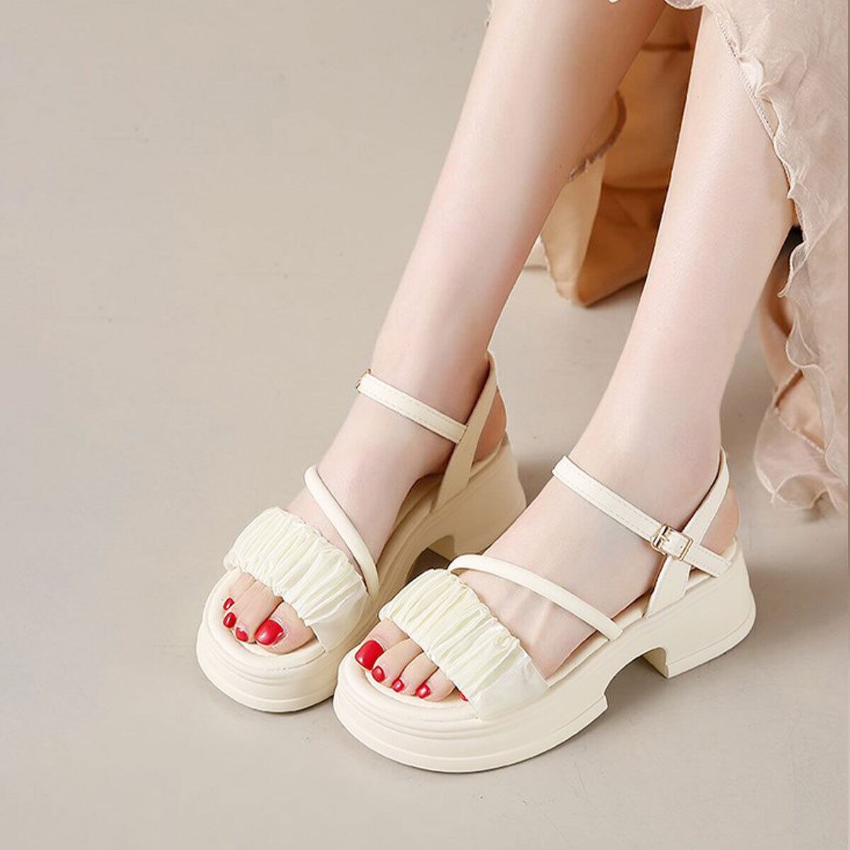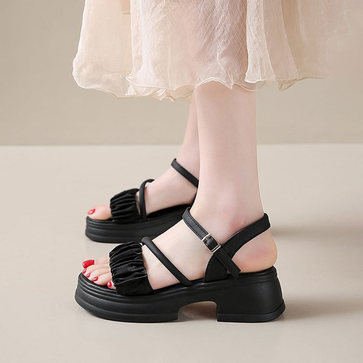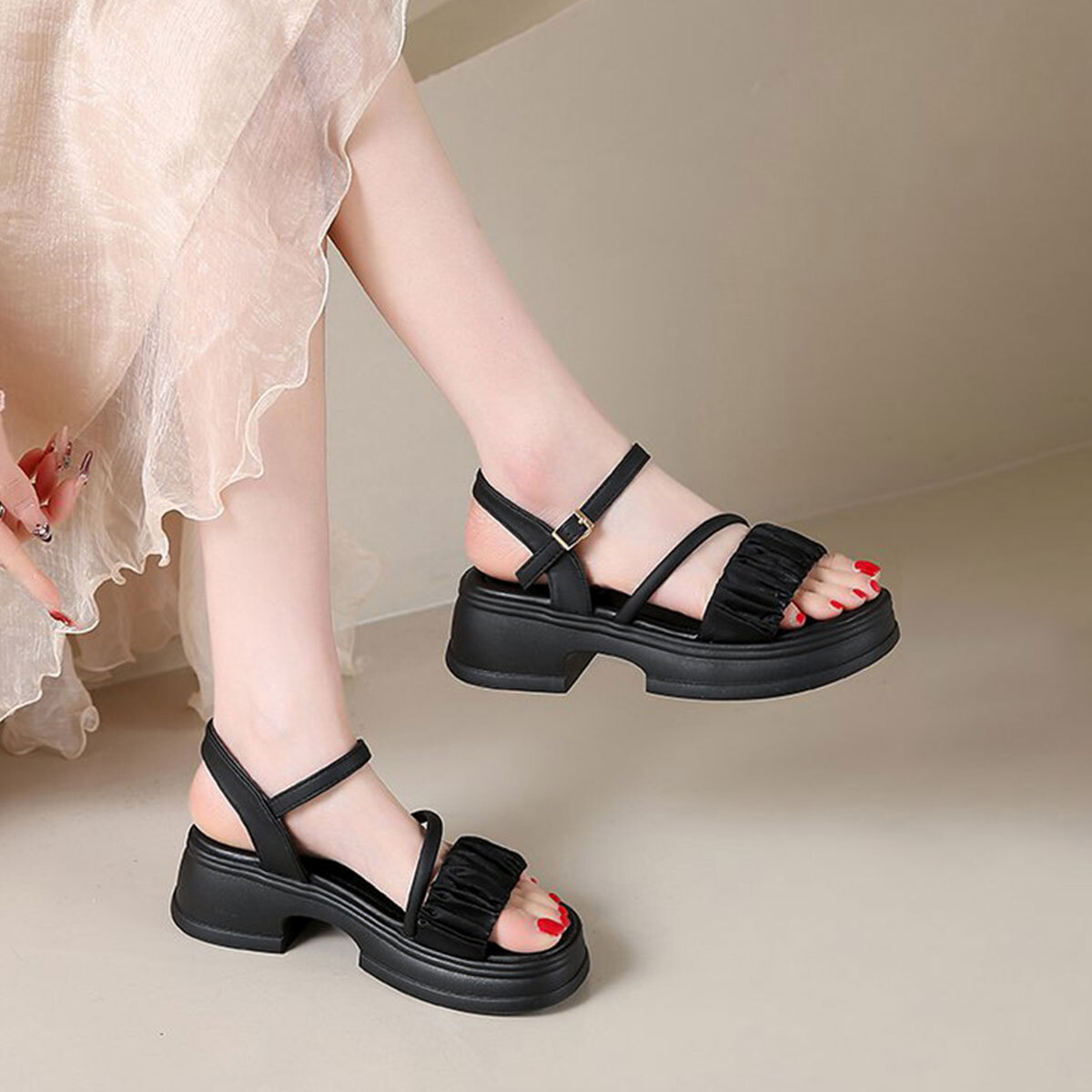 厚底 フリル サンダル チャンキーヒール レディース 春夏 韓国 おしゃれ 大人 かわいい きれいめ 歩きやすい 疲れにくい カジュアル ボリュームソール ビーチ フリルべルト 大人可愛い 大人女子