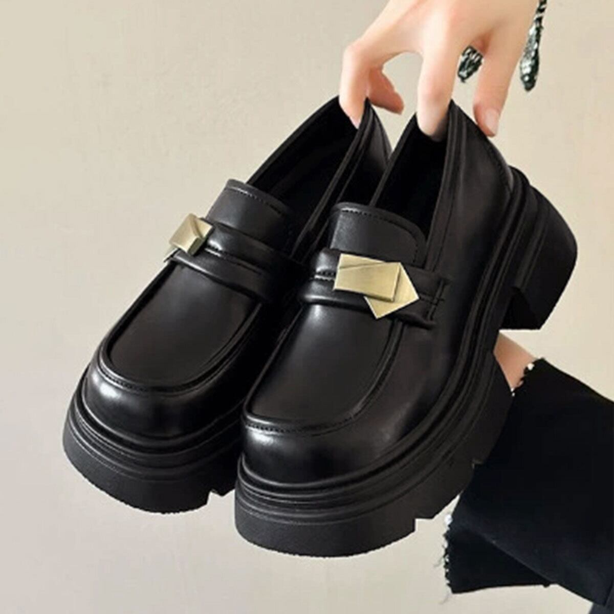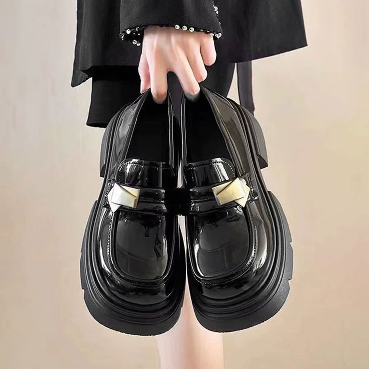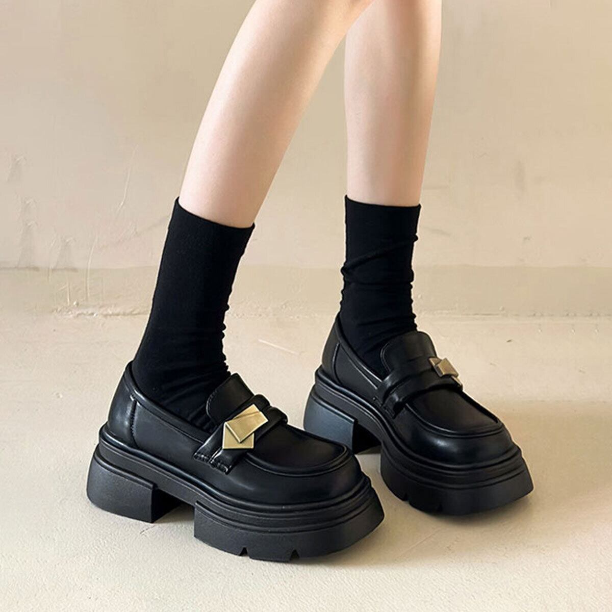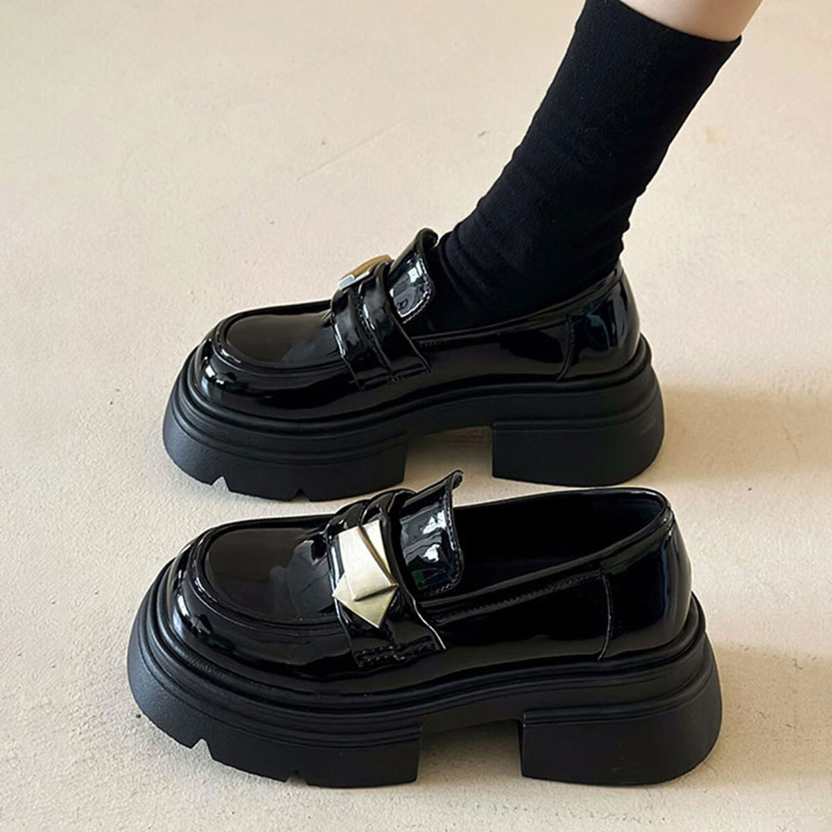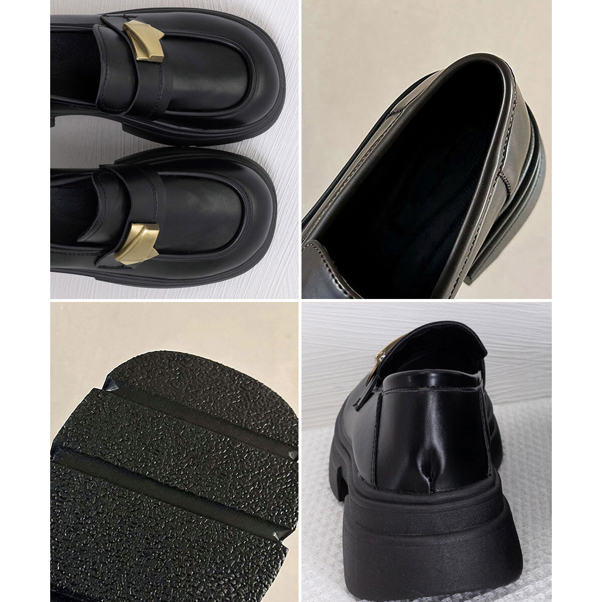 ボリュームたっぷりの厚底ソールと、メタルモチーフがお洒落に映える厚底ローファーです。