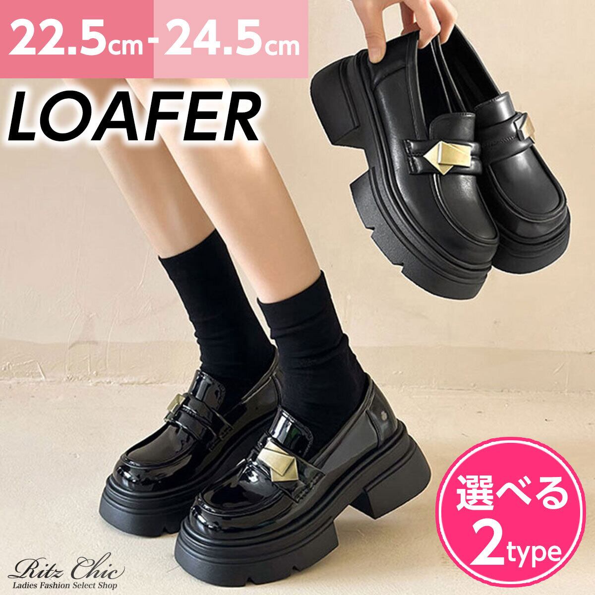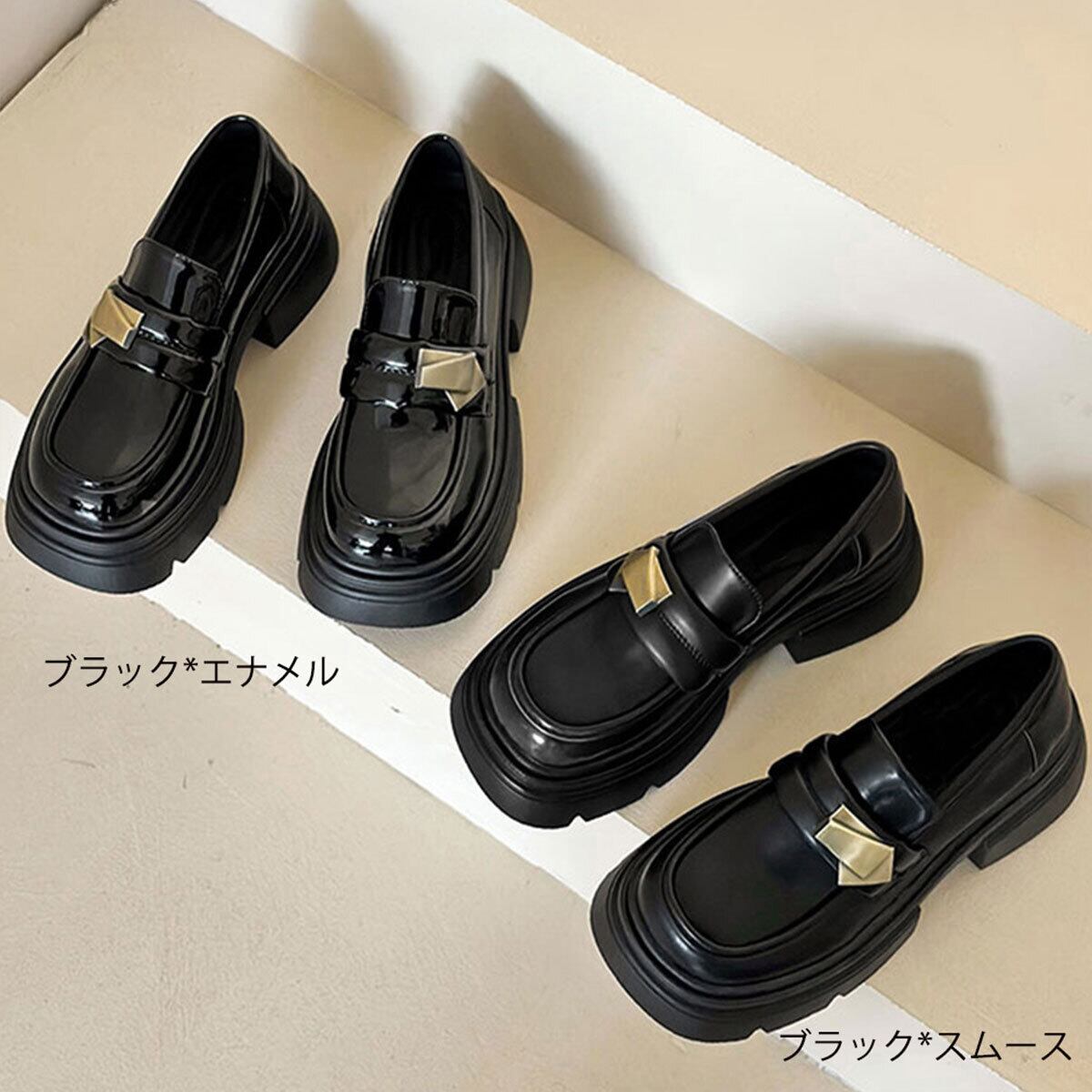 厚底 ローファー 選べる2タイプ エナメル スムース レディース 韓国 通勤 通学 学生 大人 シンプル レザー調 太ヒール 歩きやすい 疲れにくい 履きやすい 大人可愛い 大人女子