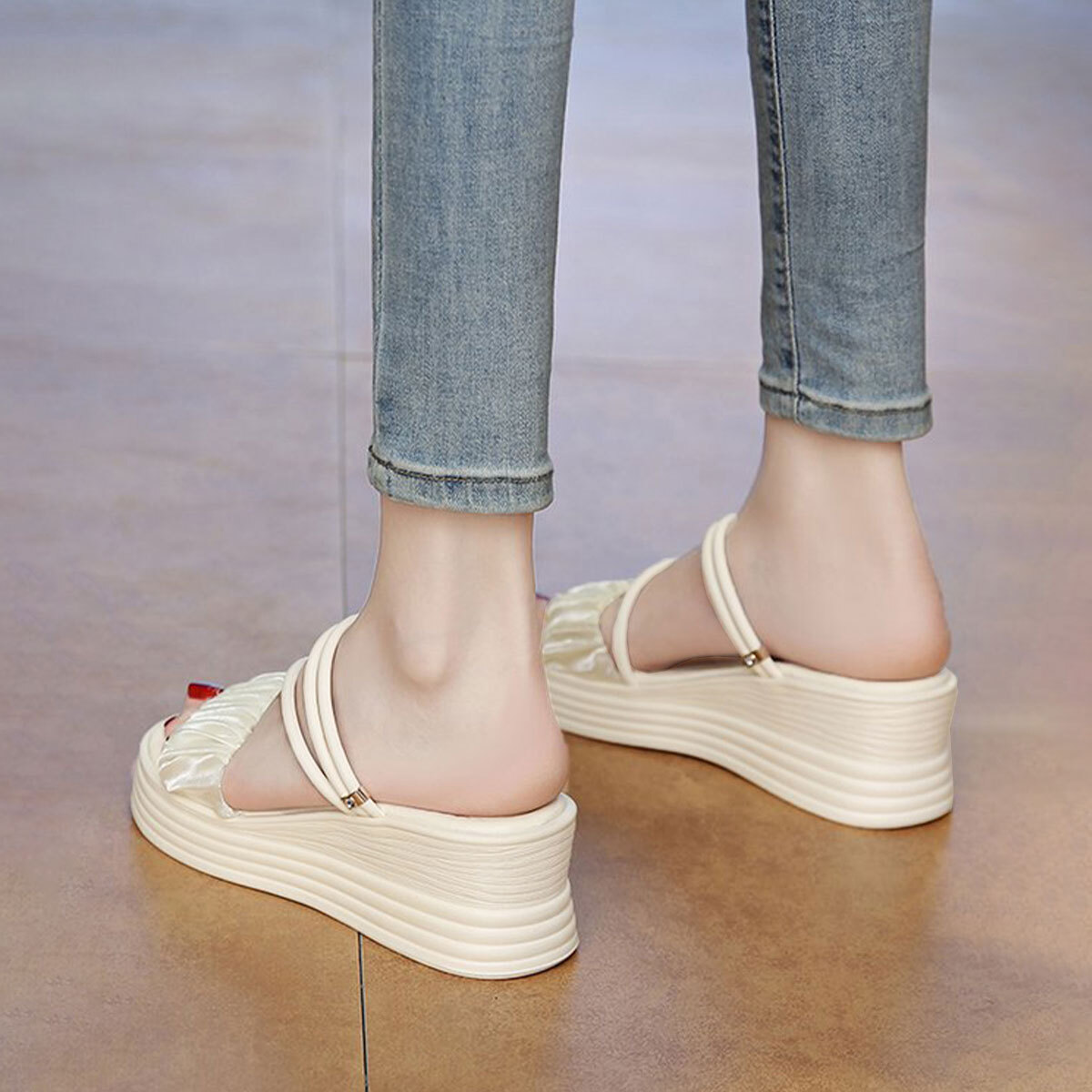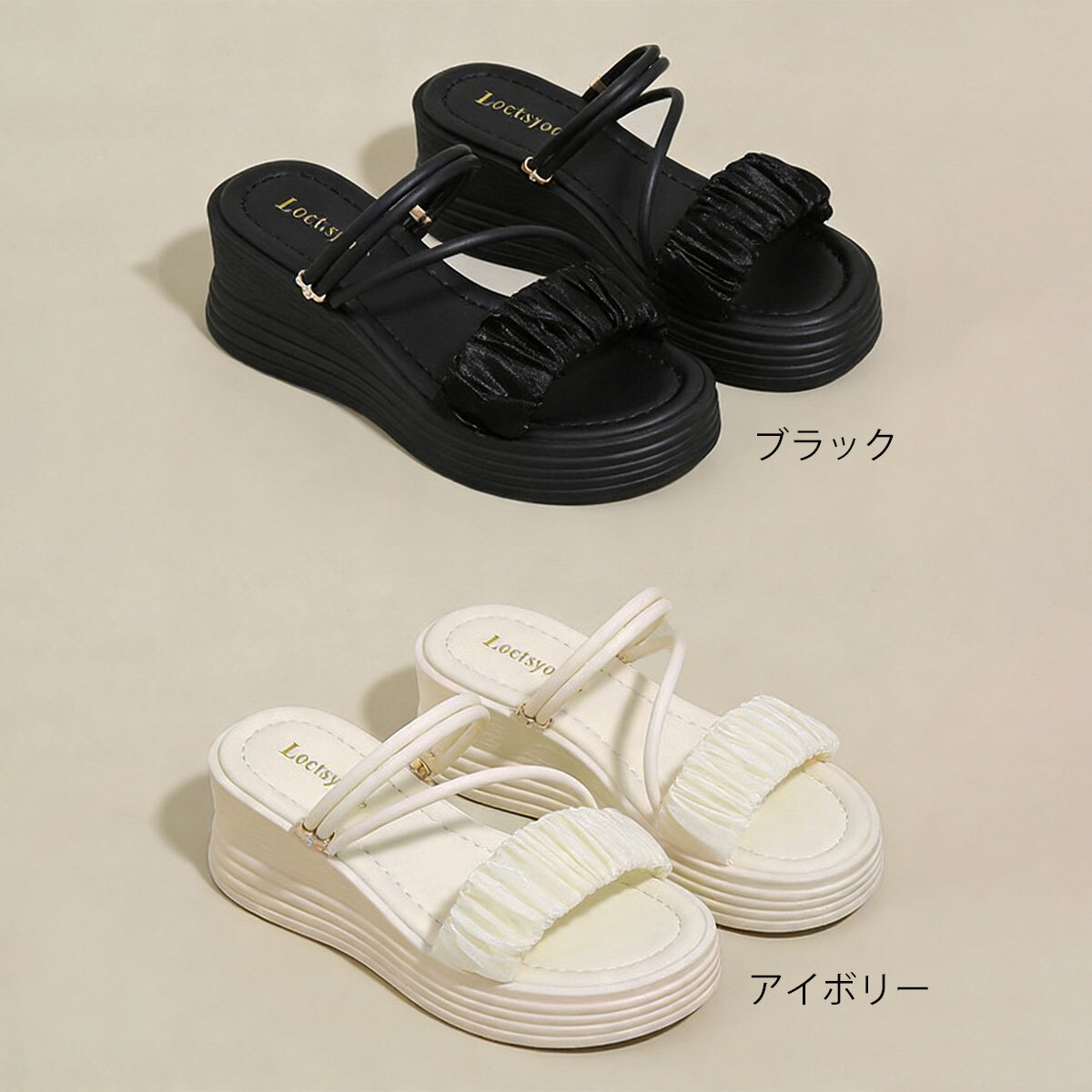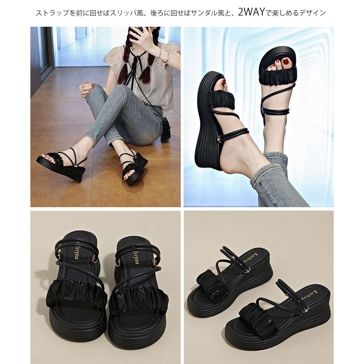 ストラップ サンダル 厚底 ウェッジソール レディース 春夏 韓国 ギャザー フリル きれいめ 大人 かわいい ミュールサンダル 歩きやすい 疲れにくい ビーチ プール アウトドア 大人可愛い 大人女子