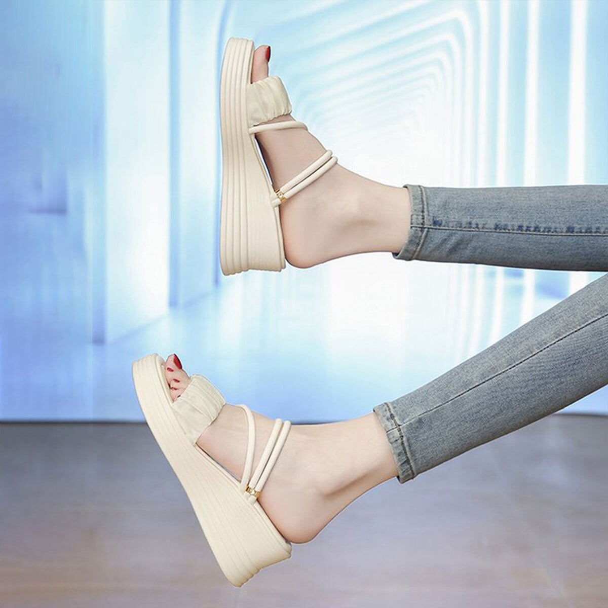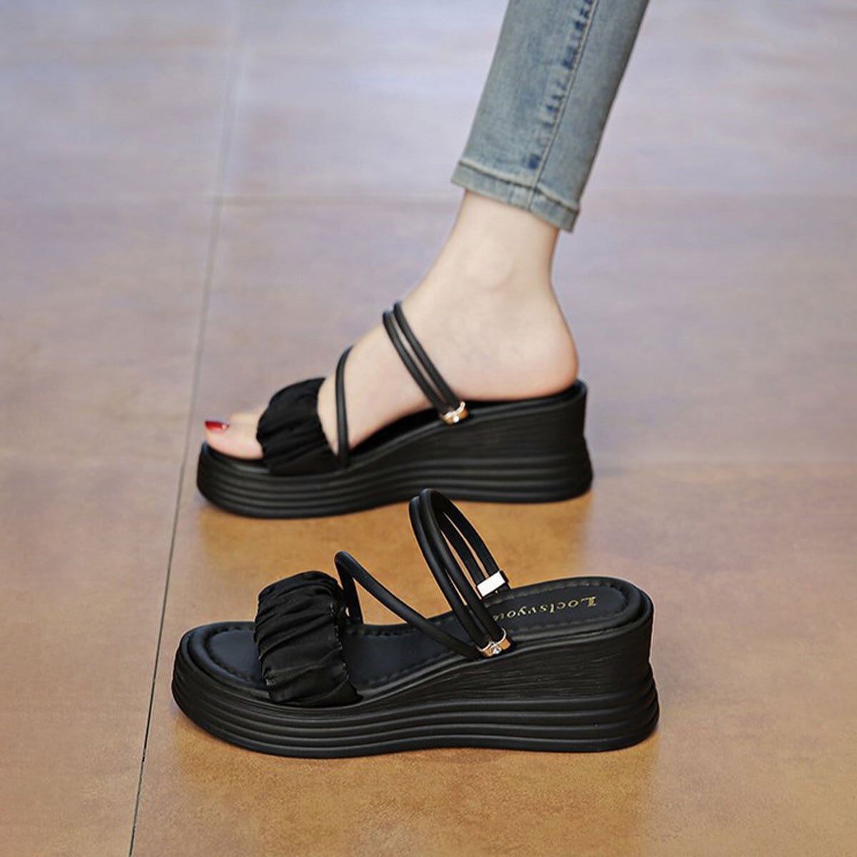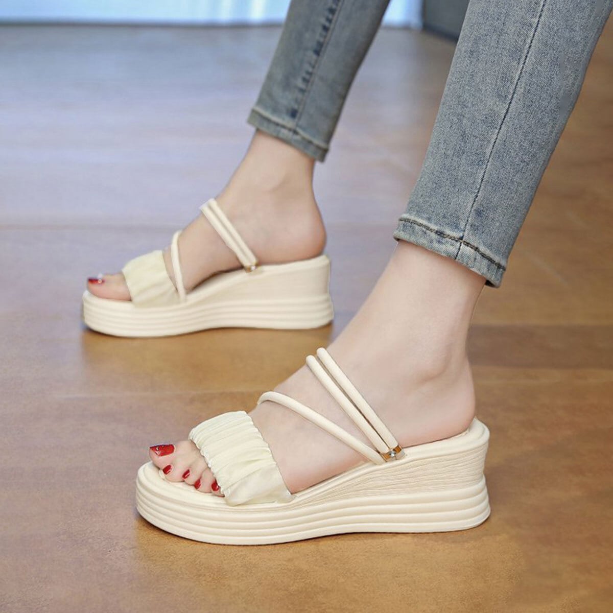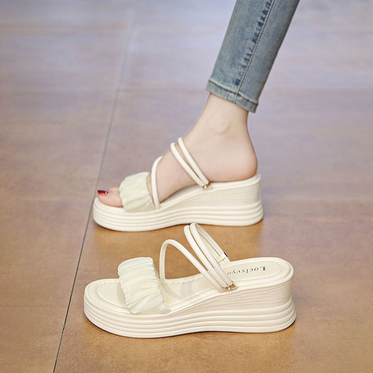 ストラップ サンダル 厚底 ウェッジソール レディース 春夏 韓国 ギャザー フリル きれいめ 大人 かわいい ミュールサンダル 歩きやすい 疲れにくい ビーチ プール アウトドア 大人可愛い 大人女子