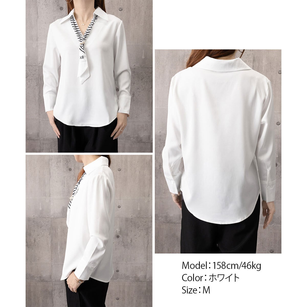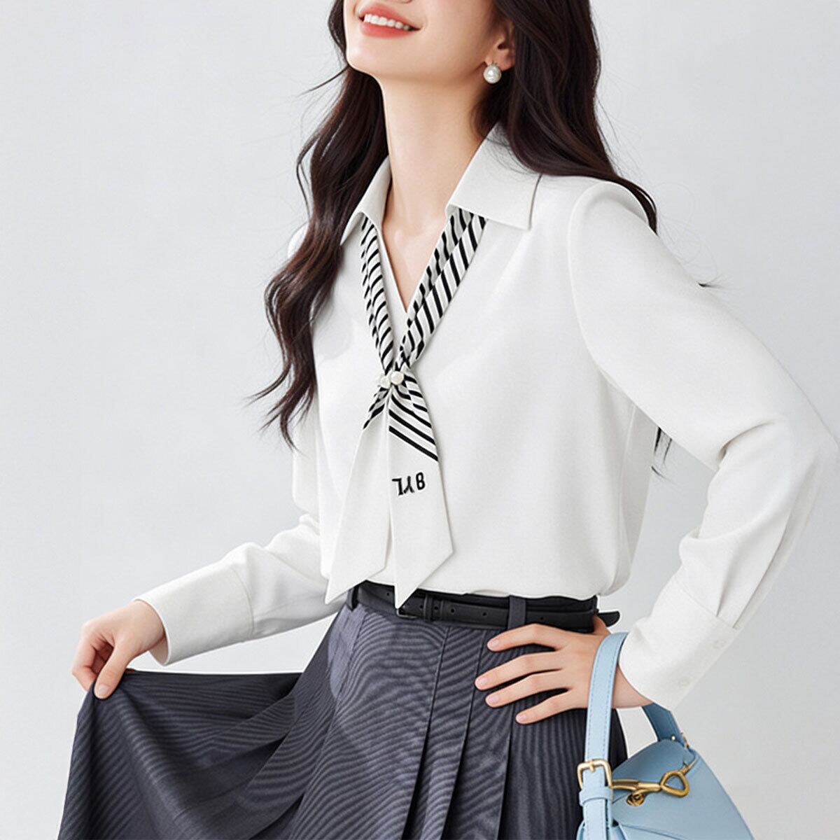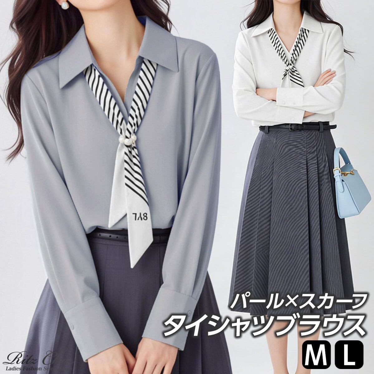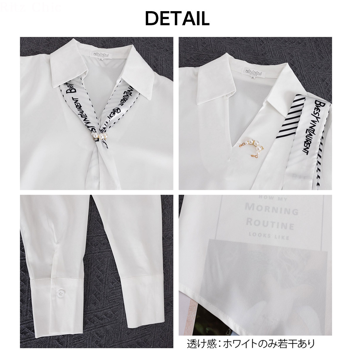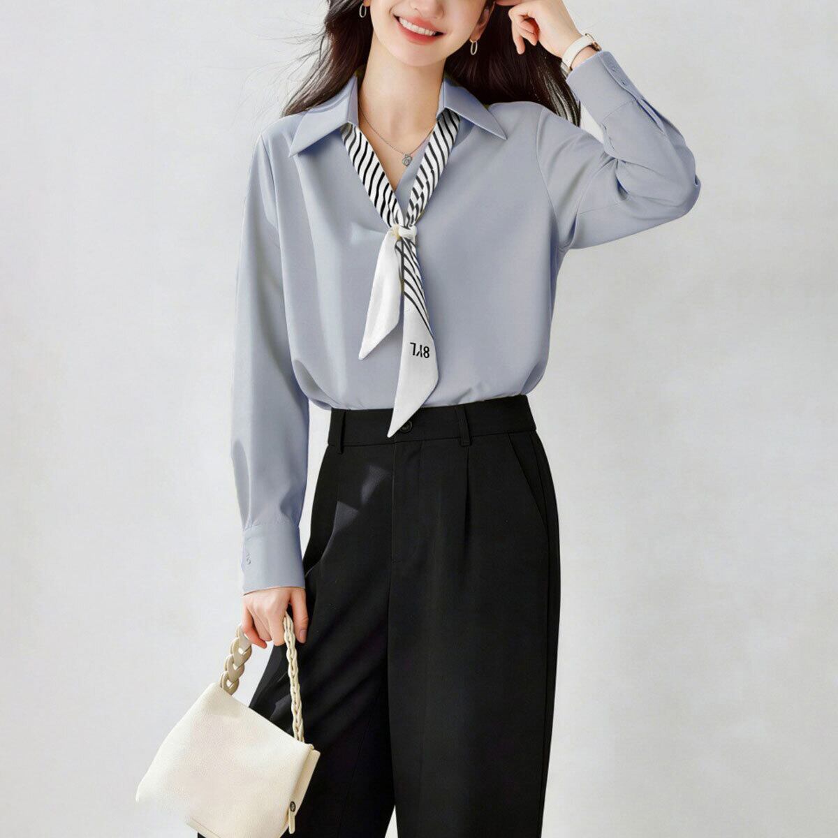 シャツブラウス 長袖 ブラウス パール付きスカーフ レディース 春秋 韓国 きれいめ 大人 上品 シンプル ビジネス オフィス フォーマル 入学式 入園式 卒業式 卒園式 参観日 通勤 大人可愛い 大人女子