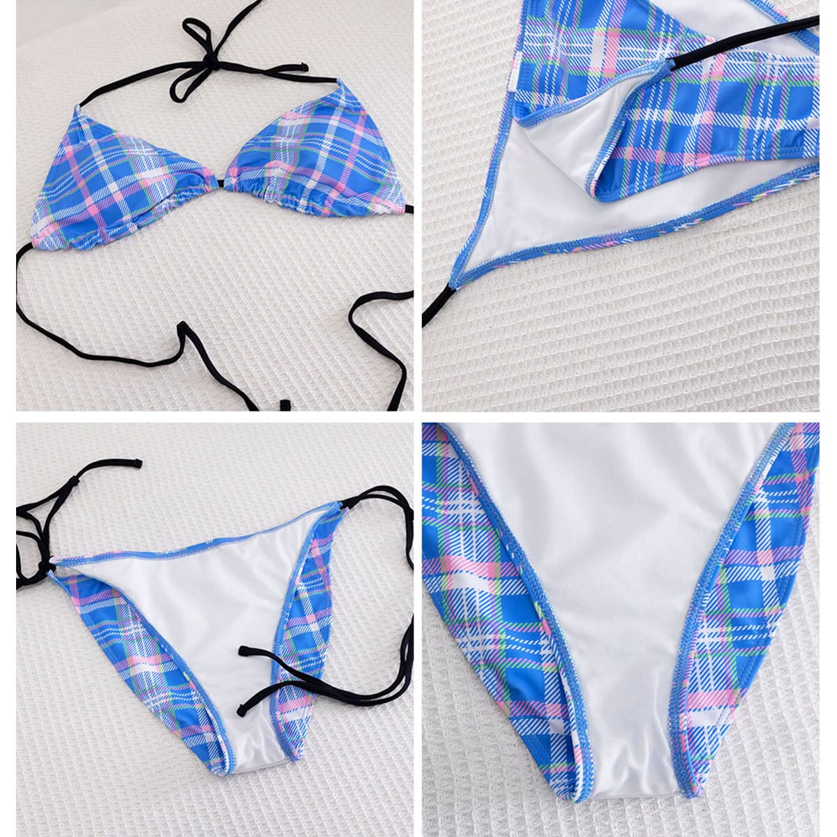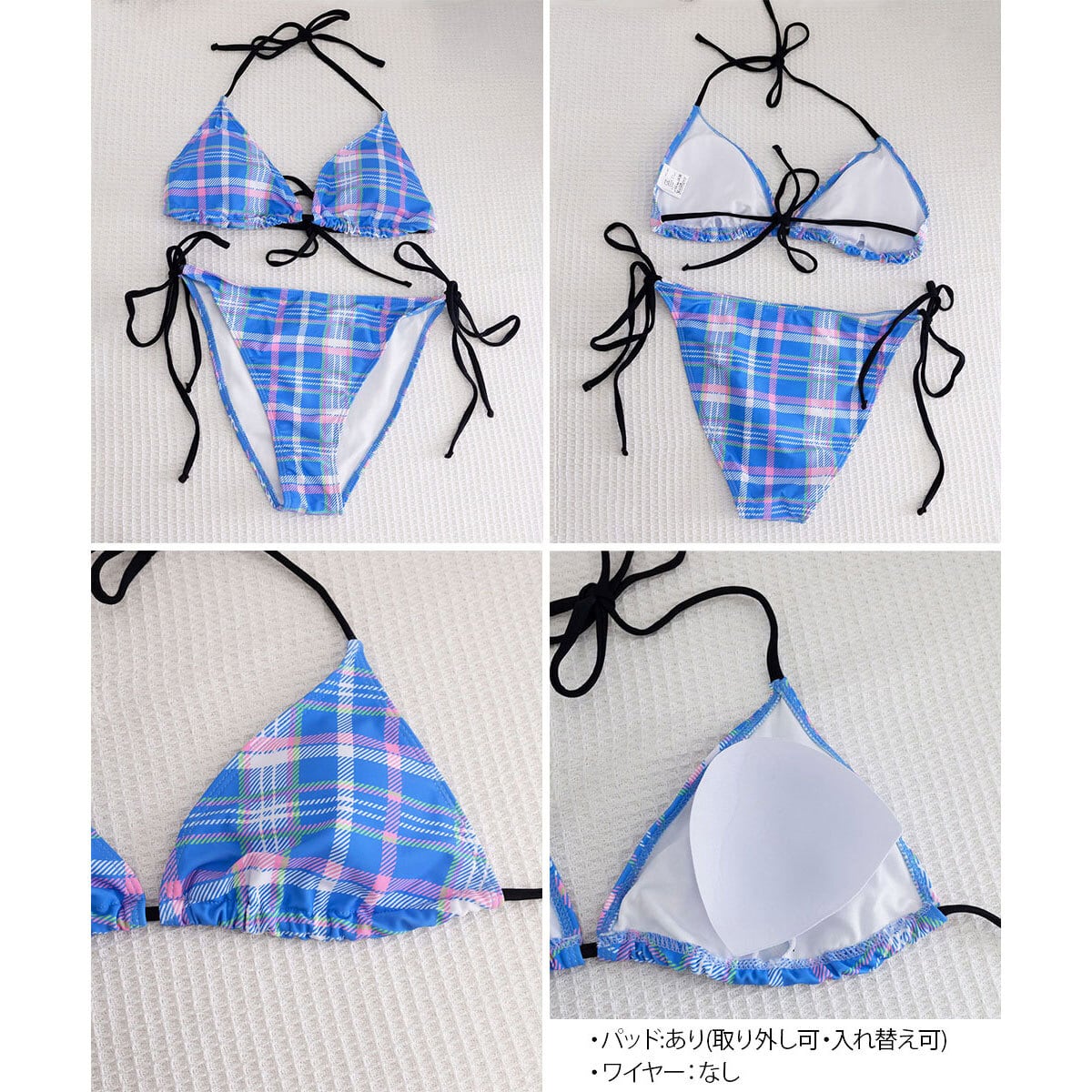 ◇チェック柄が目を惹くビキニ水着2点セット。