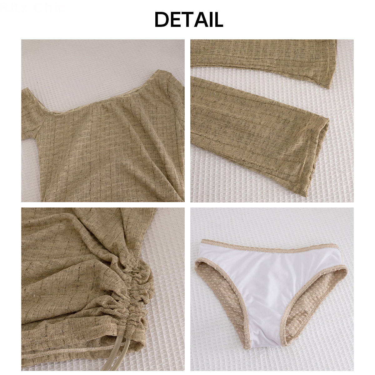 ビキニは凹凸のある立体素材で表情が出て、シンプルなのにお洒落に映えてくれます。