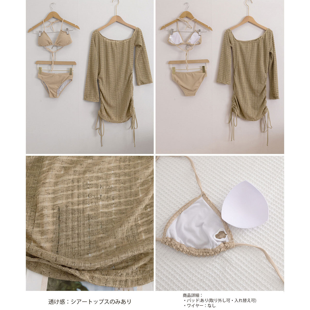 ◇シアートップス付きのビキニ水着3点セット。