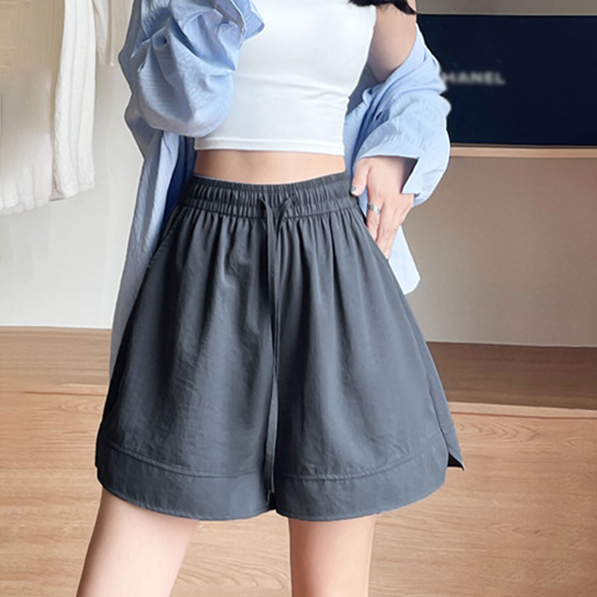 ショートパンツ ハイウエスト レディース 春夏 韓国 薄手 Aライン きれいめ 大人 カジュアル ゆったり 体型カバー ポケット付き ルームウェア 部屋着 ボトムス 大人可愛い 大人女子