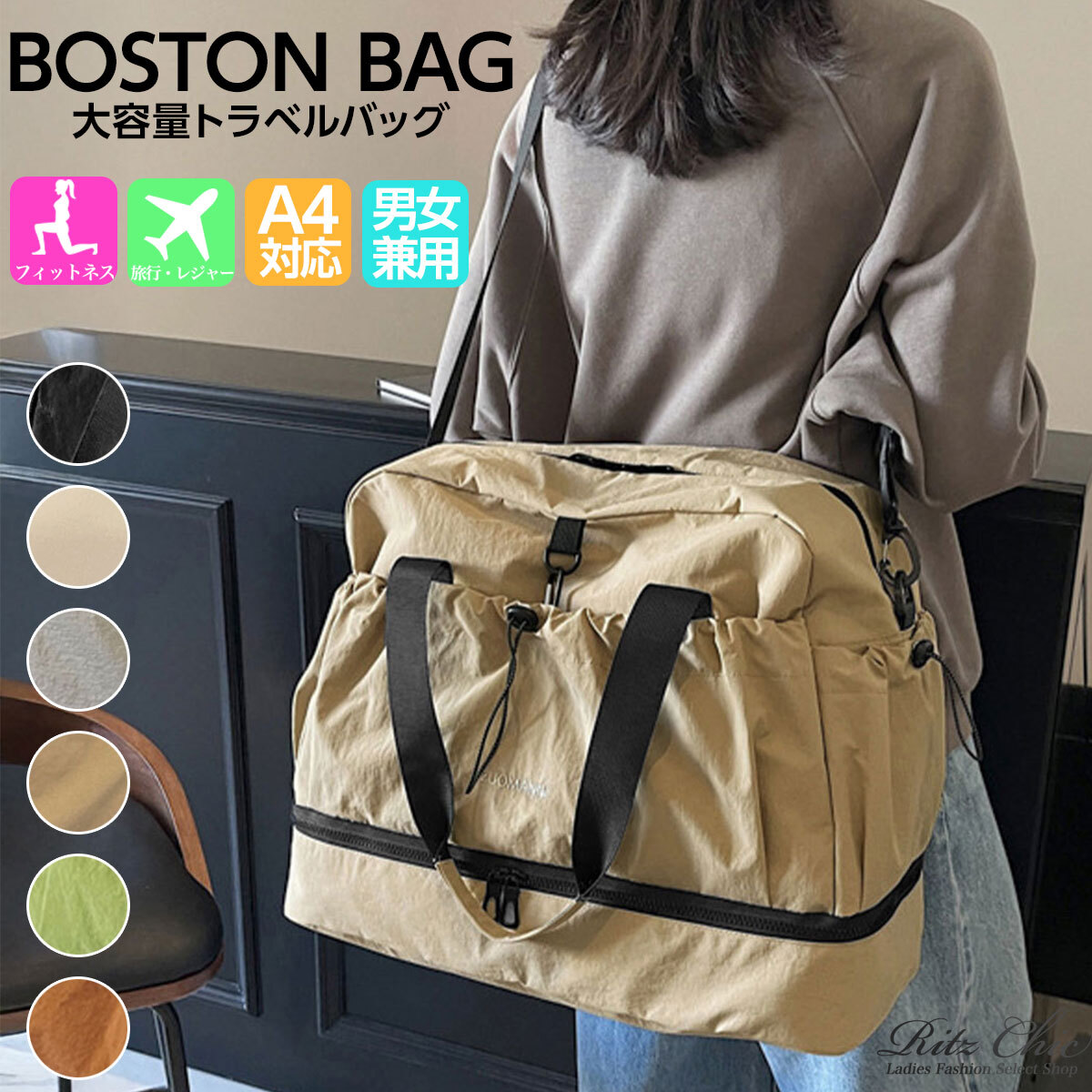 ボストンバッグ 大容量 トラベルバッグ レディース メンズ 韓国 シンプル 大人 カジュアル 旅行 出張 機内持ち込み 乾湿分離ポケット シューズ収納 大人可愛い 大人女子