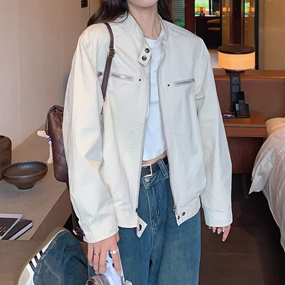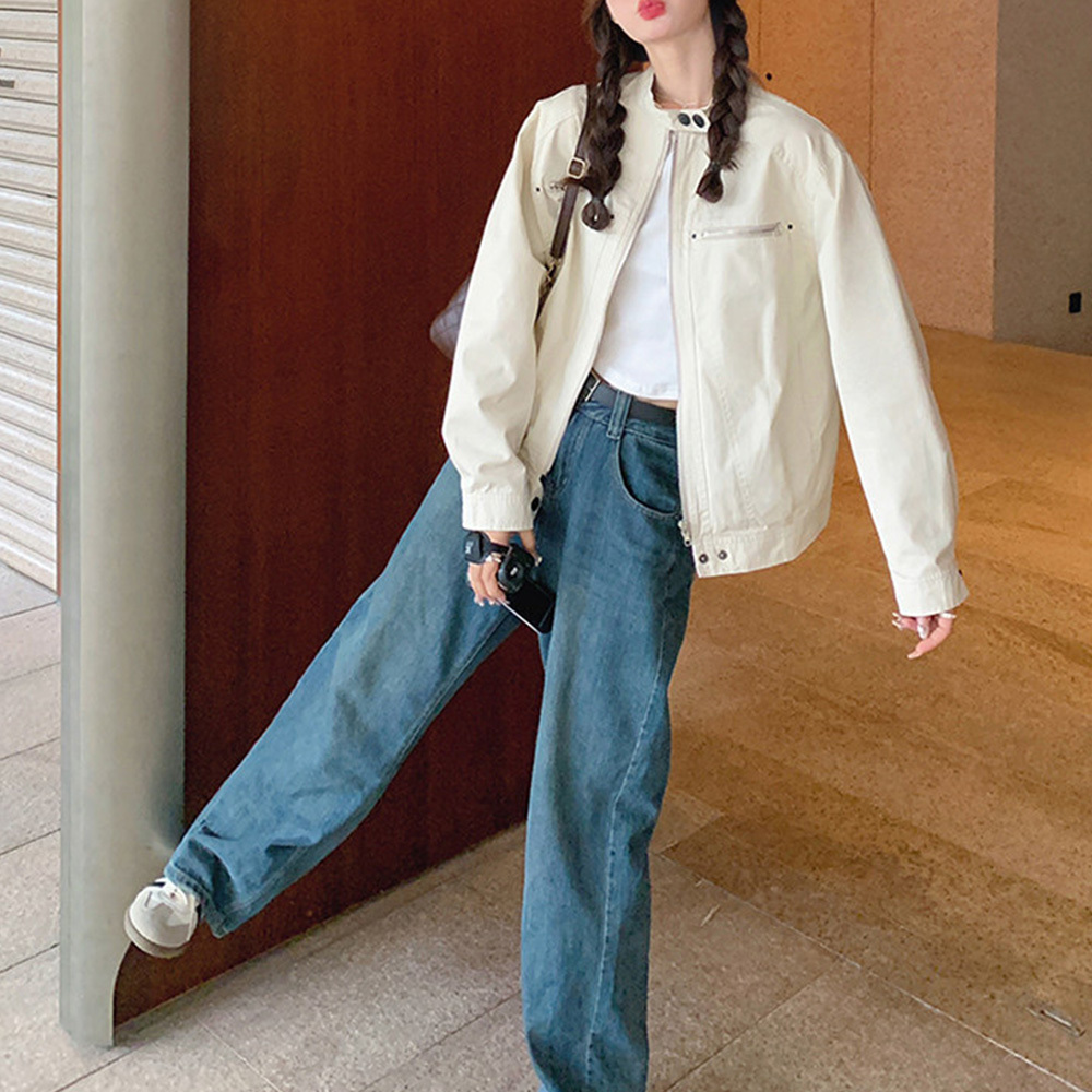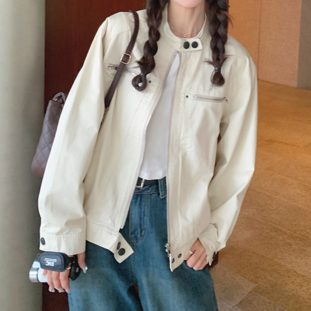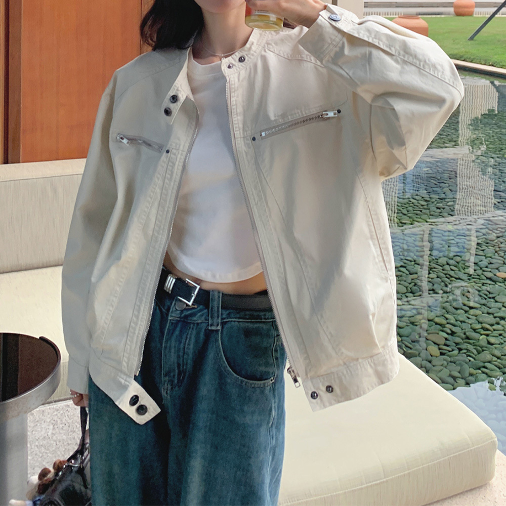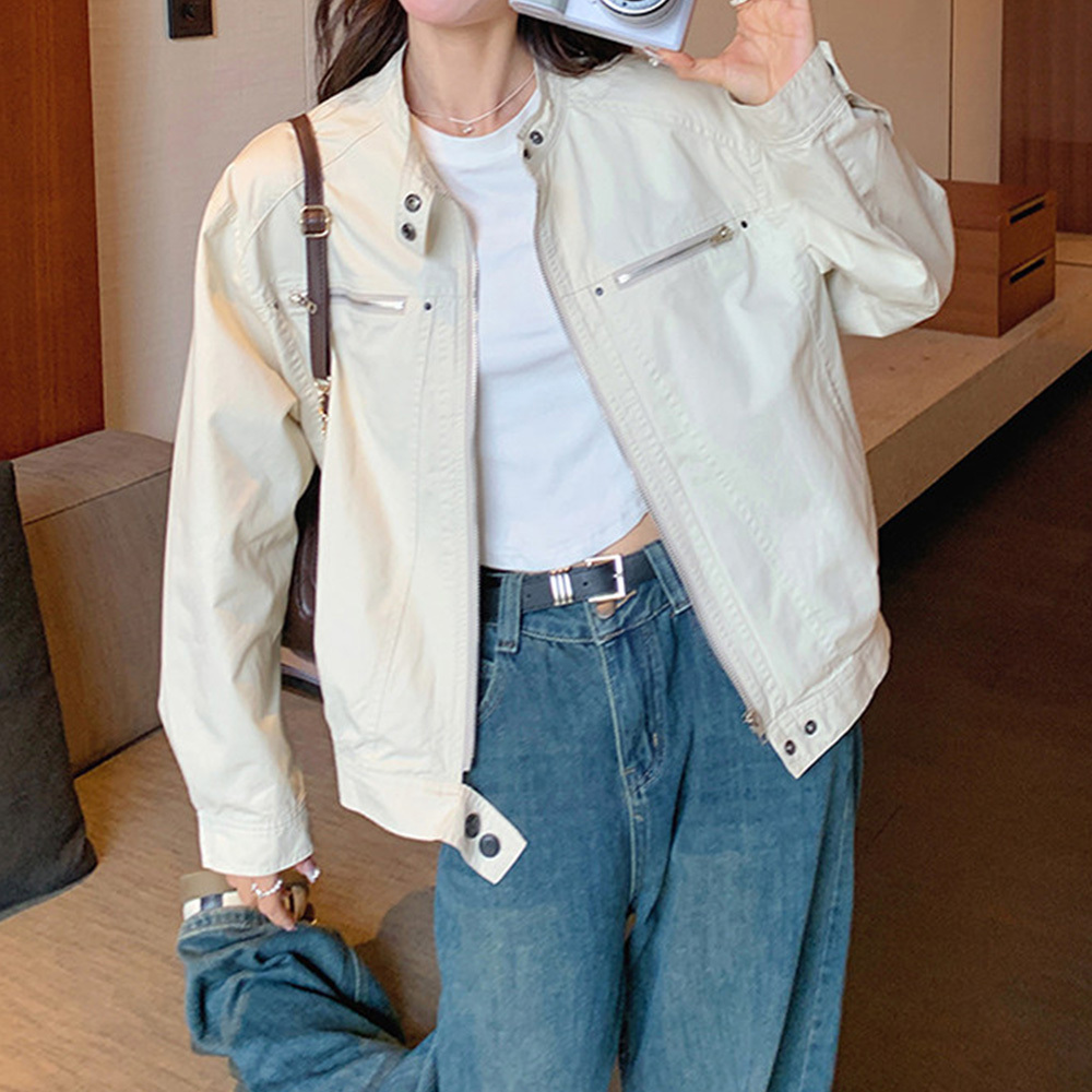 【送料無料】 ジャケット ブルゾン レディース 春秋 韓国 ライトアウター 大人 きれいめ シンプル カジュアル ライトアウター スタンドカラー ナチュラル ゆったり 体型カバー 大人可愛い 大人女子