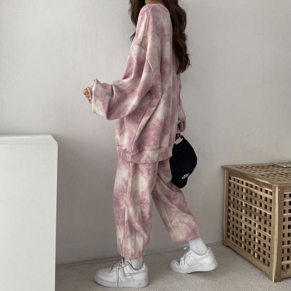 春秋のリラックスタイムにぴったりなタイダイ柄のルームウェアセットアップです。