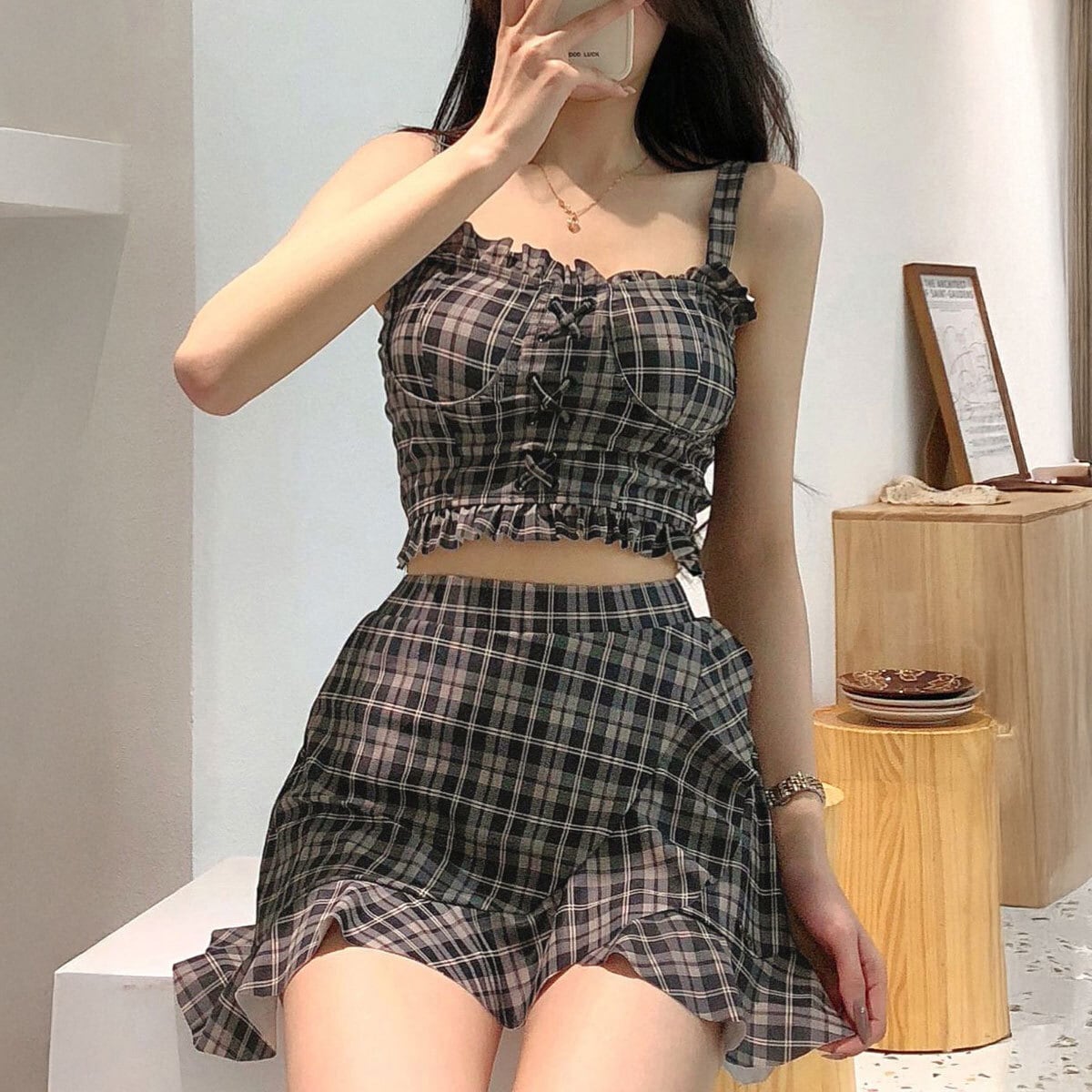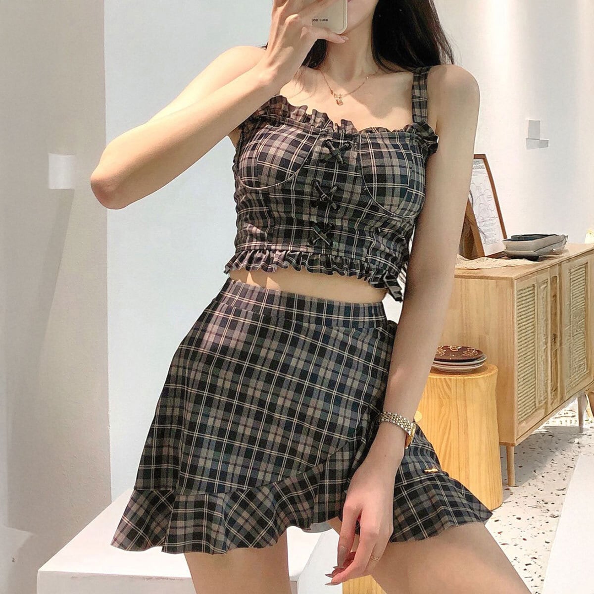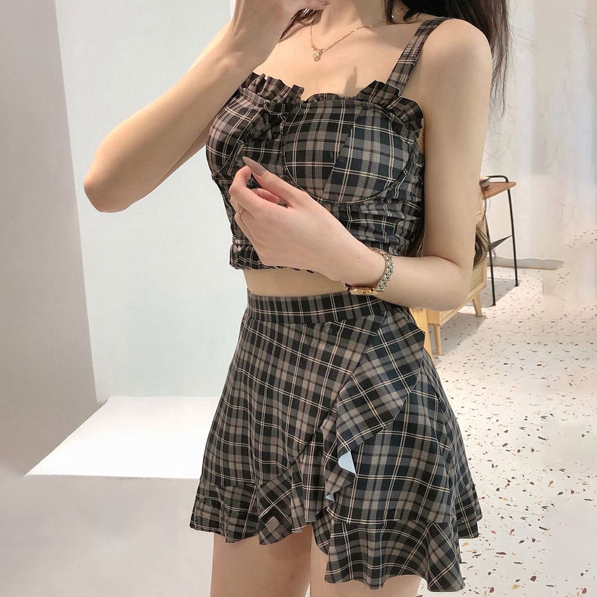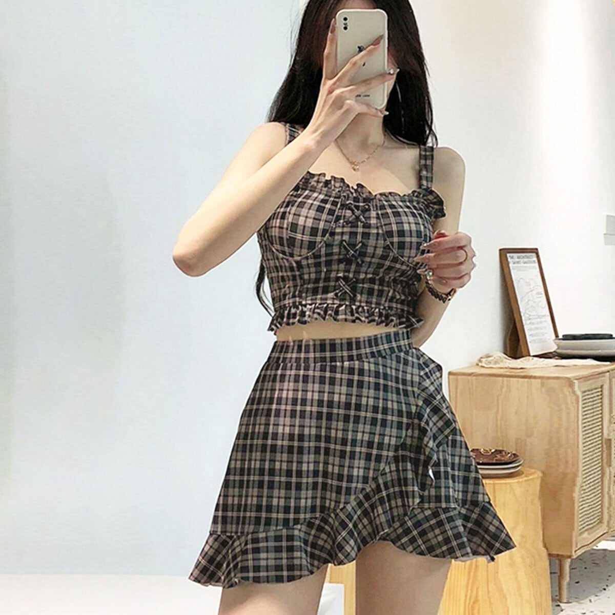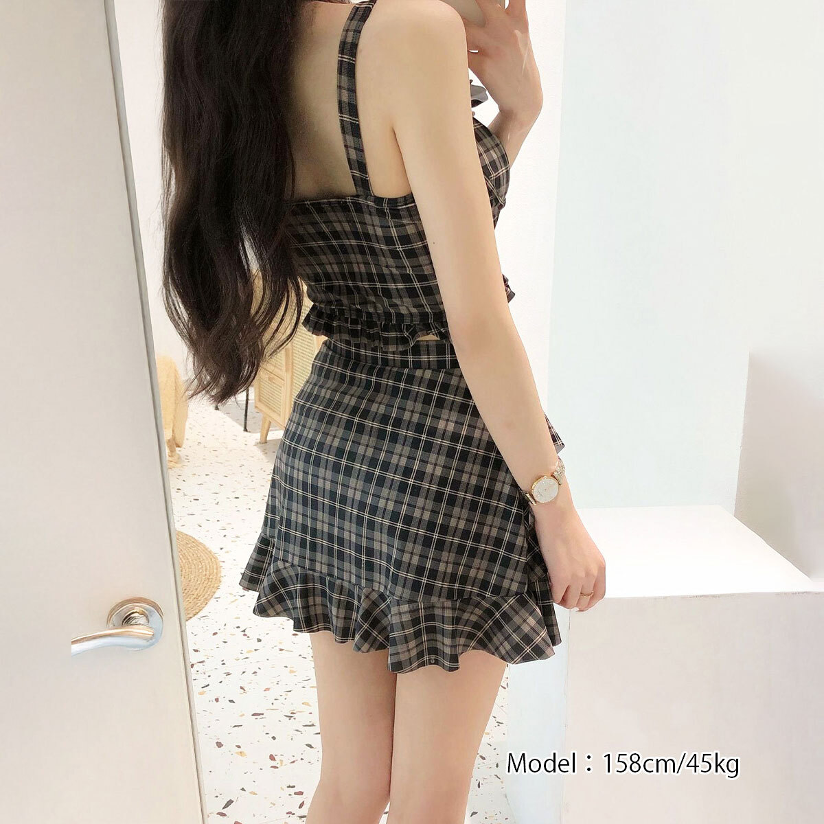 ギンガムチェック 水着 ビキニ 2点セット レディース 夏 韓国 おしゃれ 大人 かわいい きれいめ ビーチ プール レジャー リゾート フェミニン ガーリー アウトドア 露出控えめ 大人可愛い 大人女子