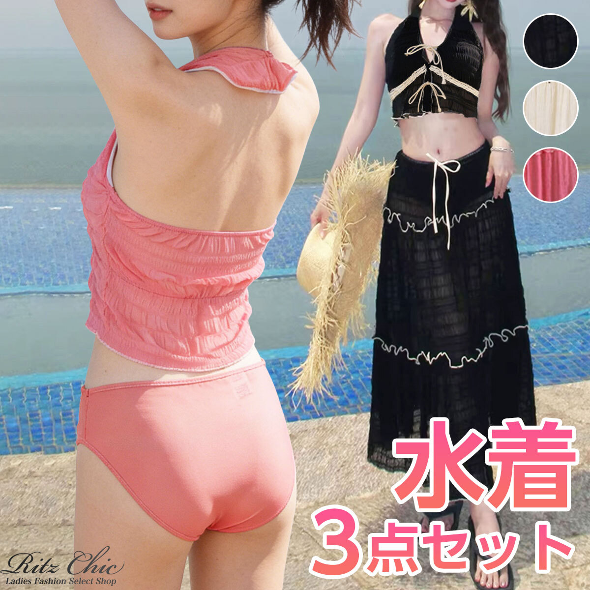 ホルターネック ビキニ 水着 3点セット スカート付き レディース 夏 韓国 きれいめ 大人 フェミニン かわいい おしゃれ 海 海水浴 プール レジャー リゾート ビーチ 露出控えめ 大人可愛い 大人女子