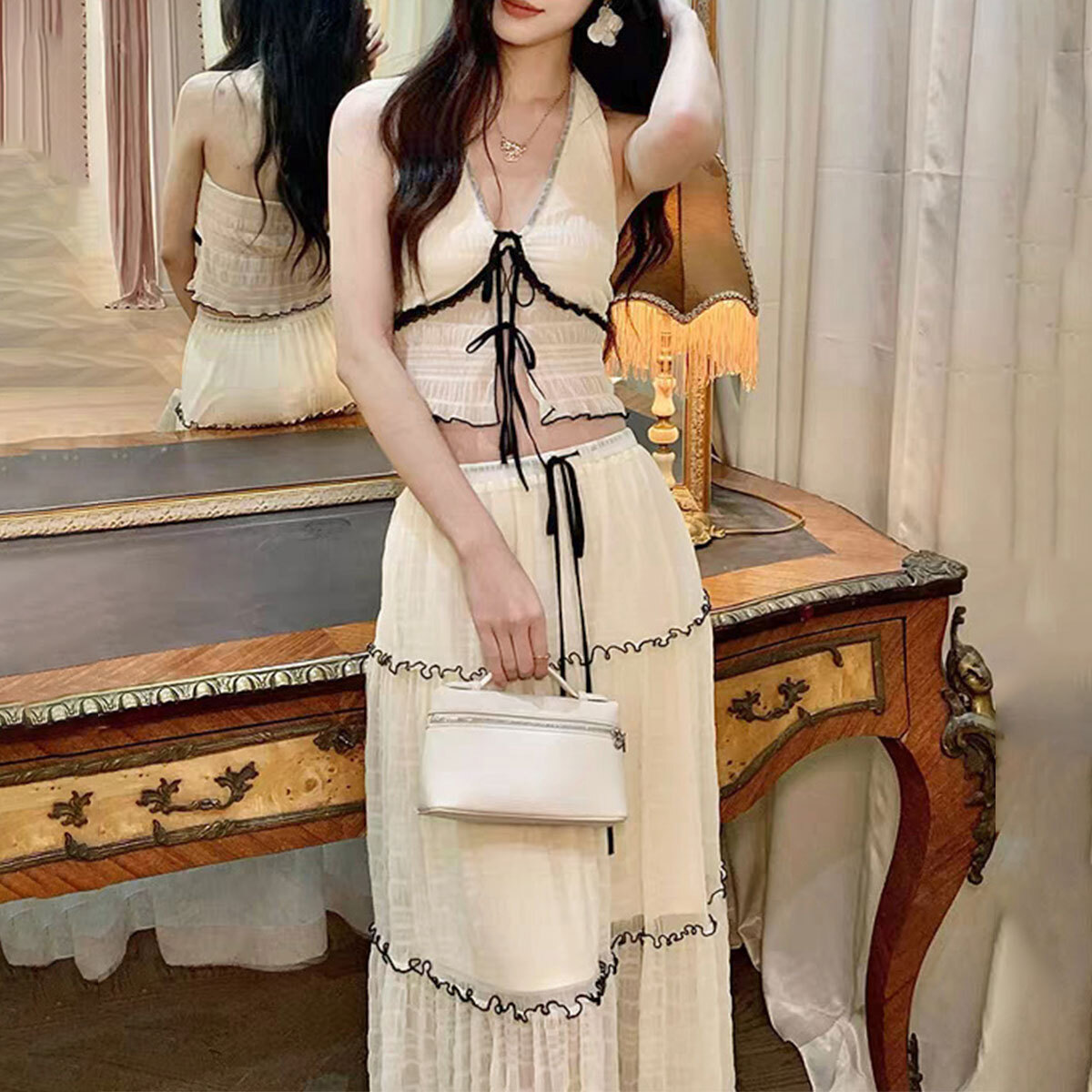 ホルターネックスタイルで背中の美しさも引き立て、フェミニンな印象を与えながら、韓国風のトレンドを取り入れ大人可愛いお洒落を楽しめます。