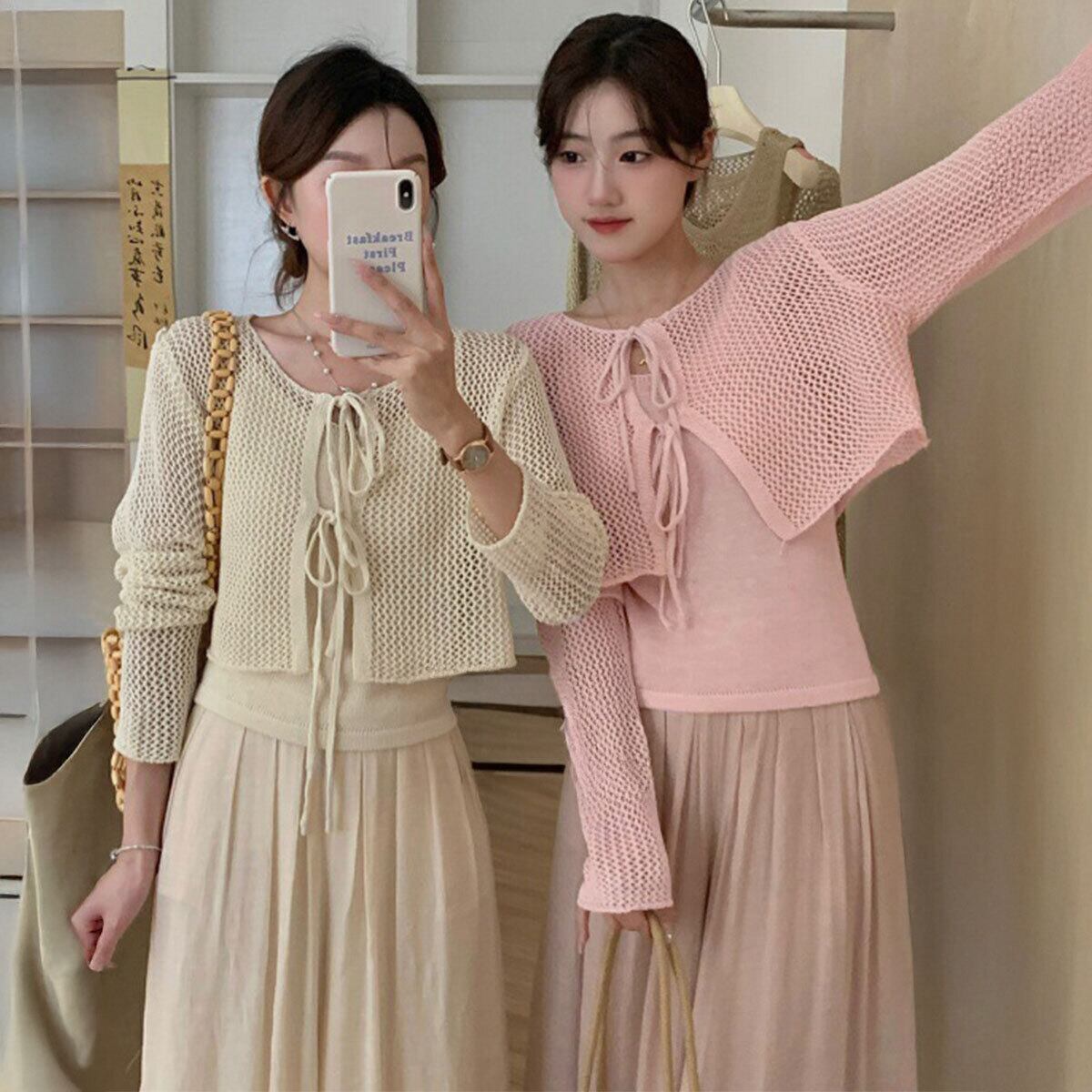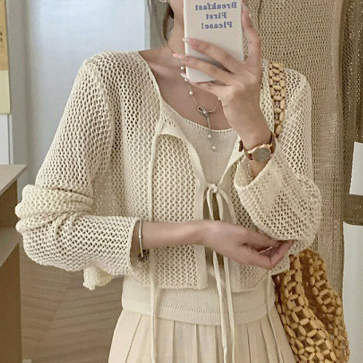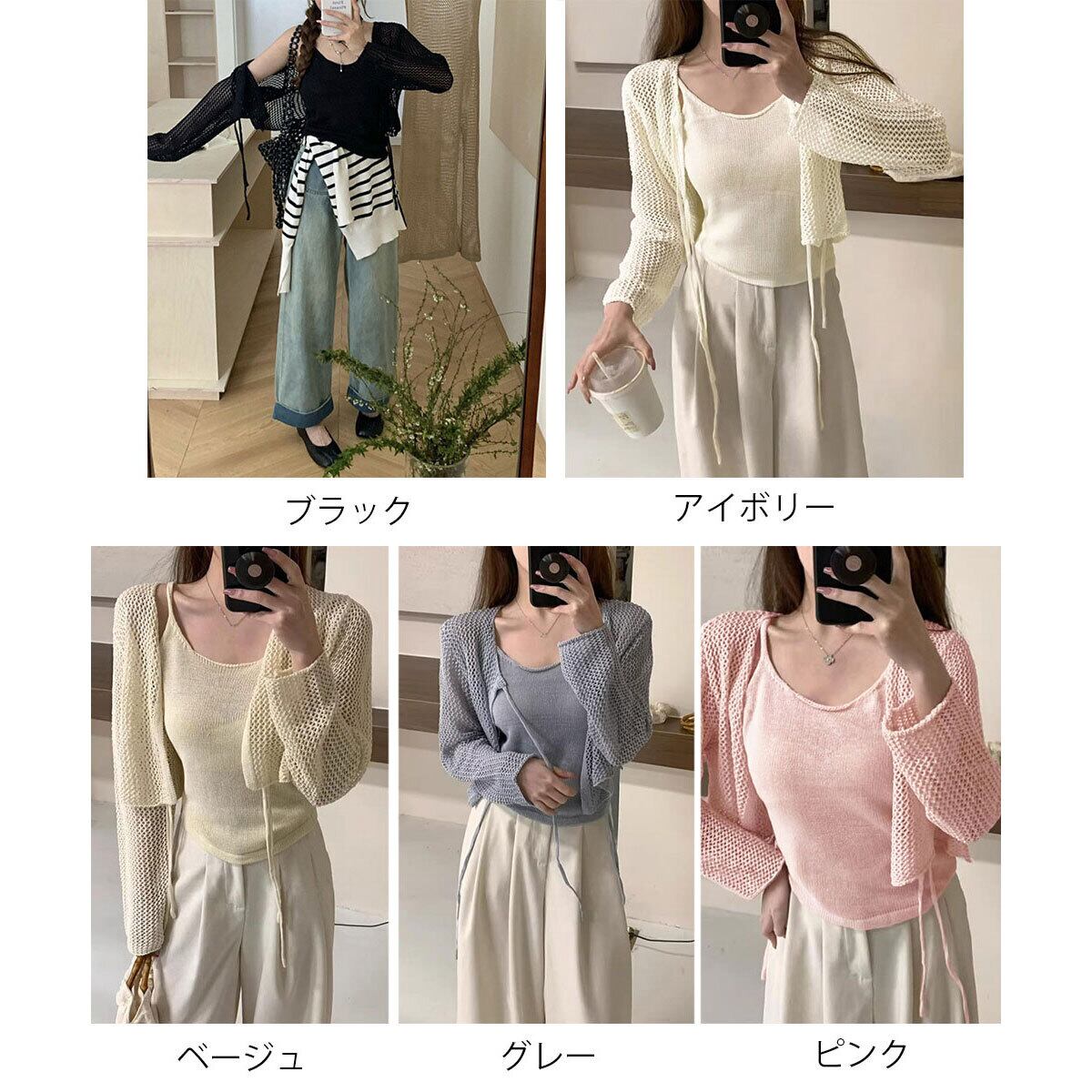 メッシュ カーディガン キャミソール レディース トップス 2点セット 春秋 韓国 きれいめ おしゃれ 大人 かわいい 薄手 ニット アンサンブル ショート丈 羽織り 大人可愛い 大人女子