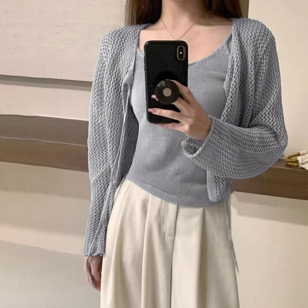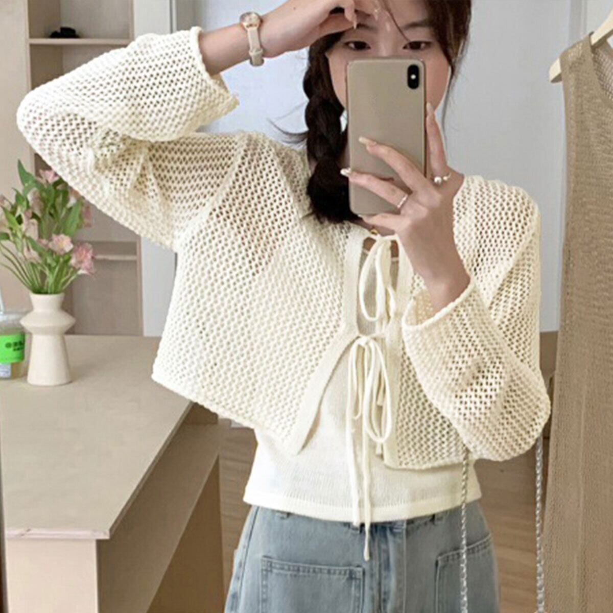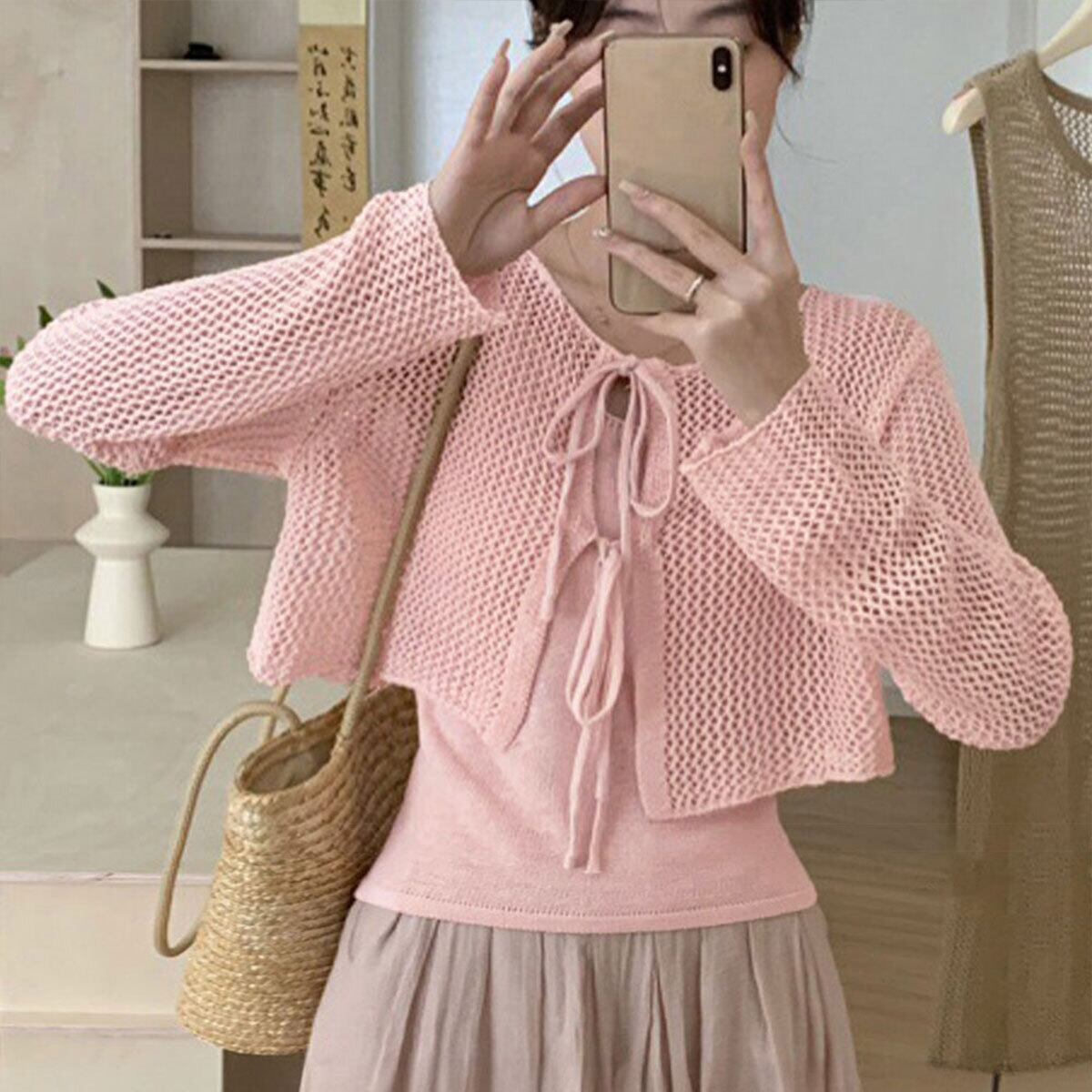 メッシュ カーディガン キャミソール レディース トップス 2点セット 春秋 韓国 きれいめ おしゃれ 大人 かわいい 薄手 ニット アンサンブル ショート丈 羽織り 大人可愛い 大人女子